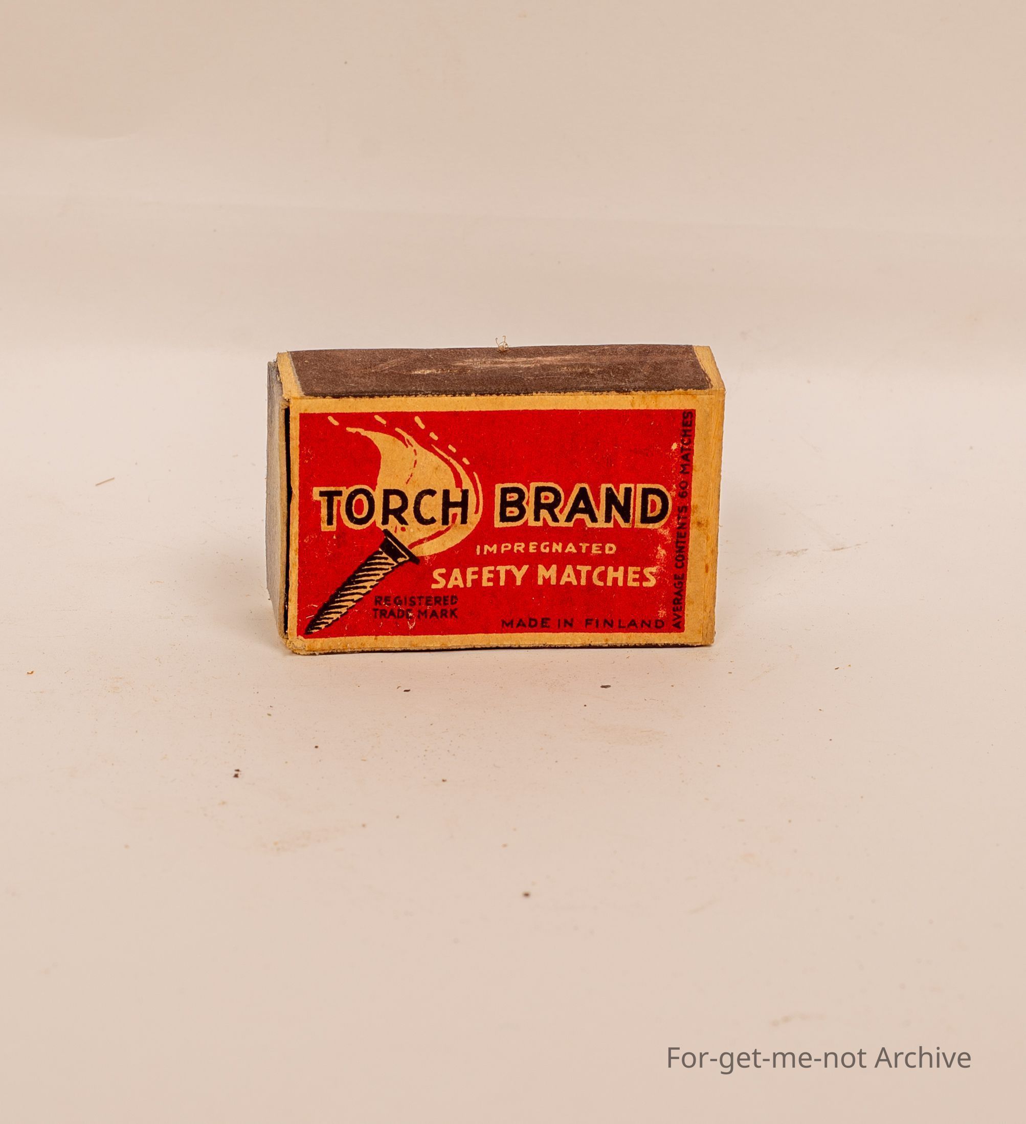 Wooden Framed Matchbox Torch Brand Impregnated safety matches made in Finland.