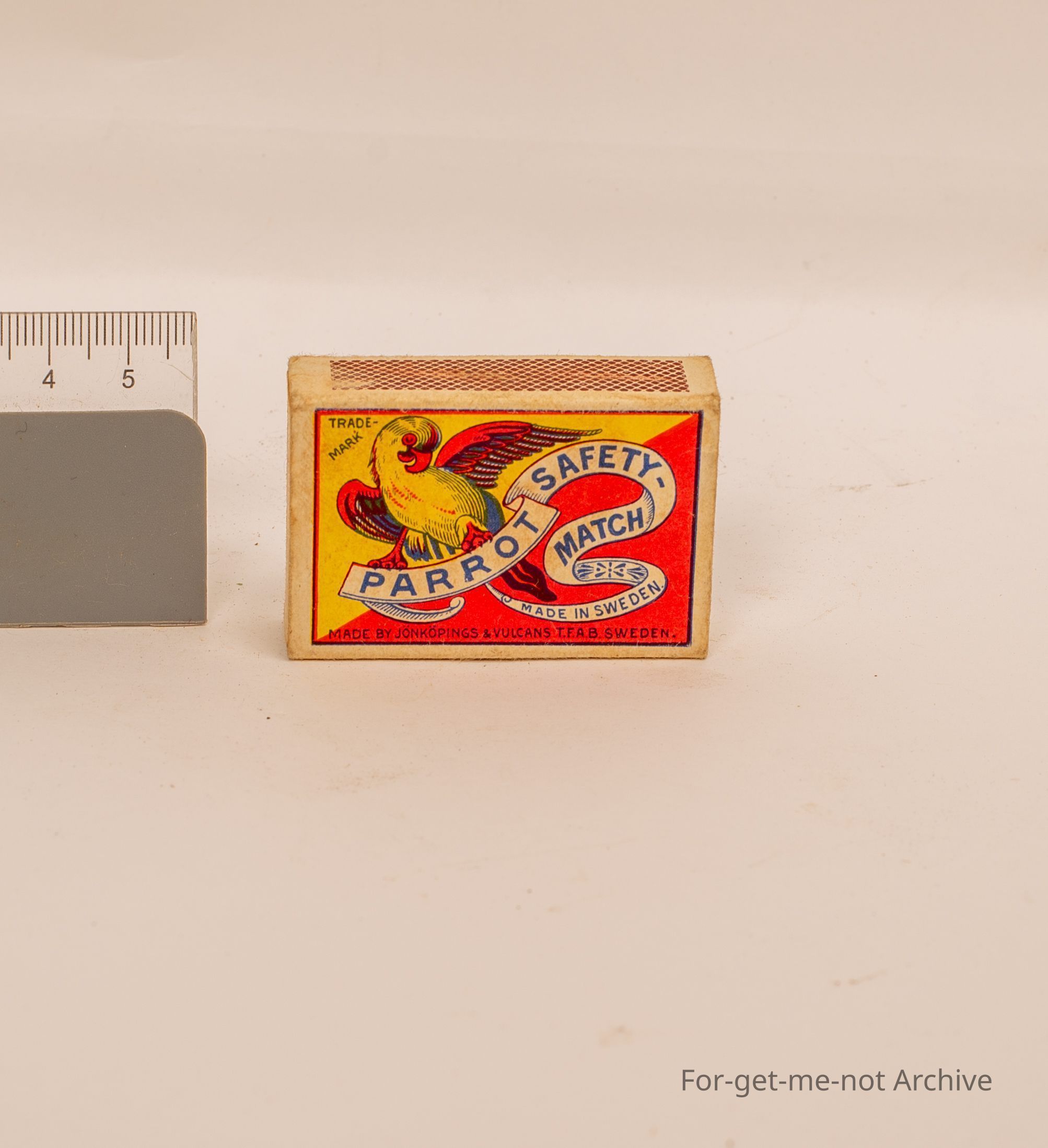 Paper matchbox, "Parrot safety match made in Sweden". Image of parrot