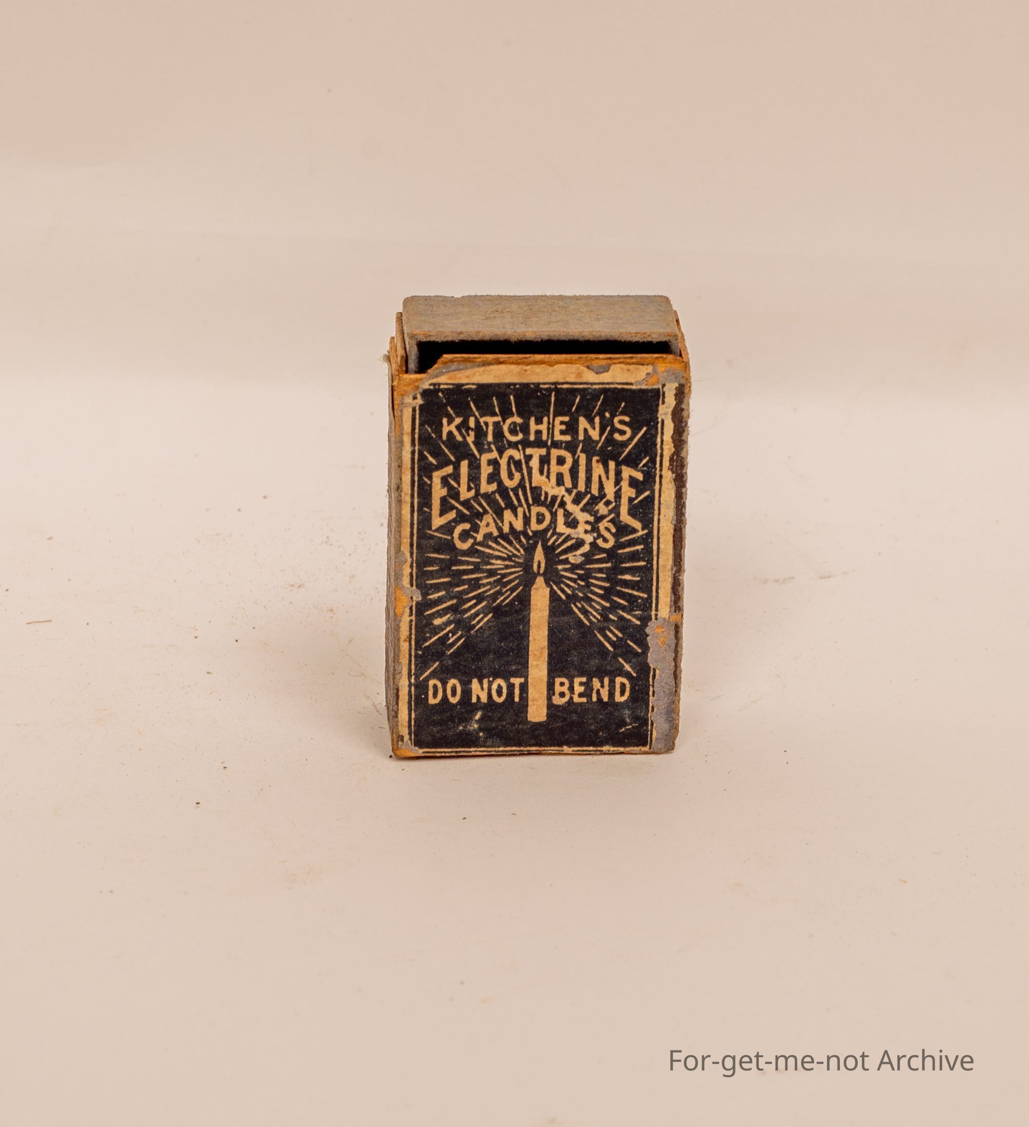 wooden frame matchbox advertising " Kitchens, electrine candles, do not bend."