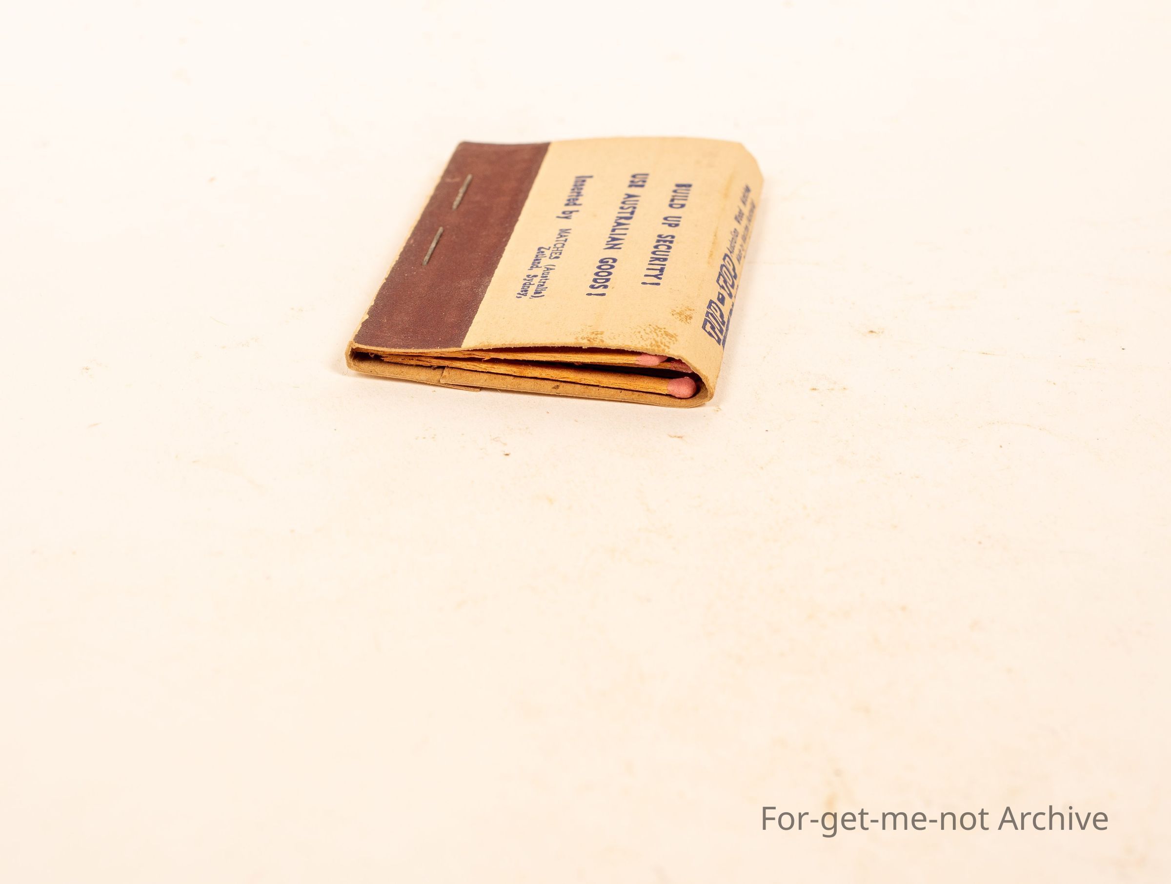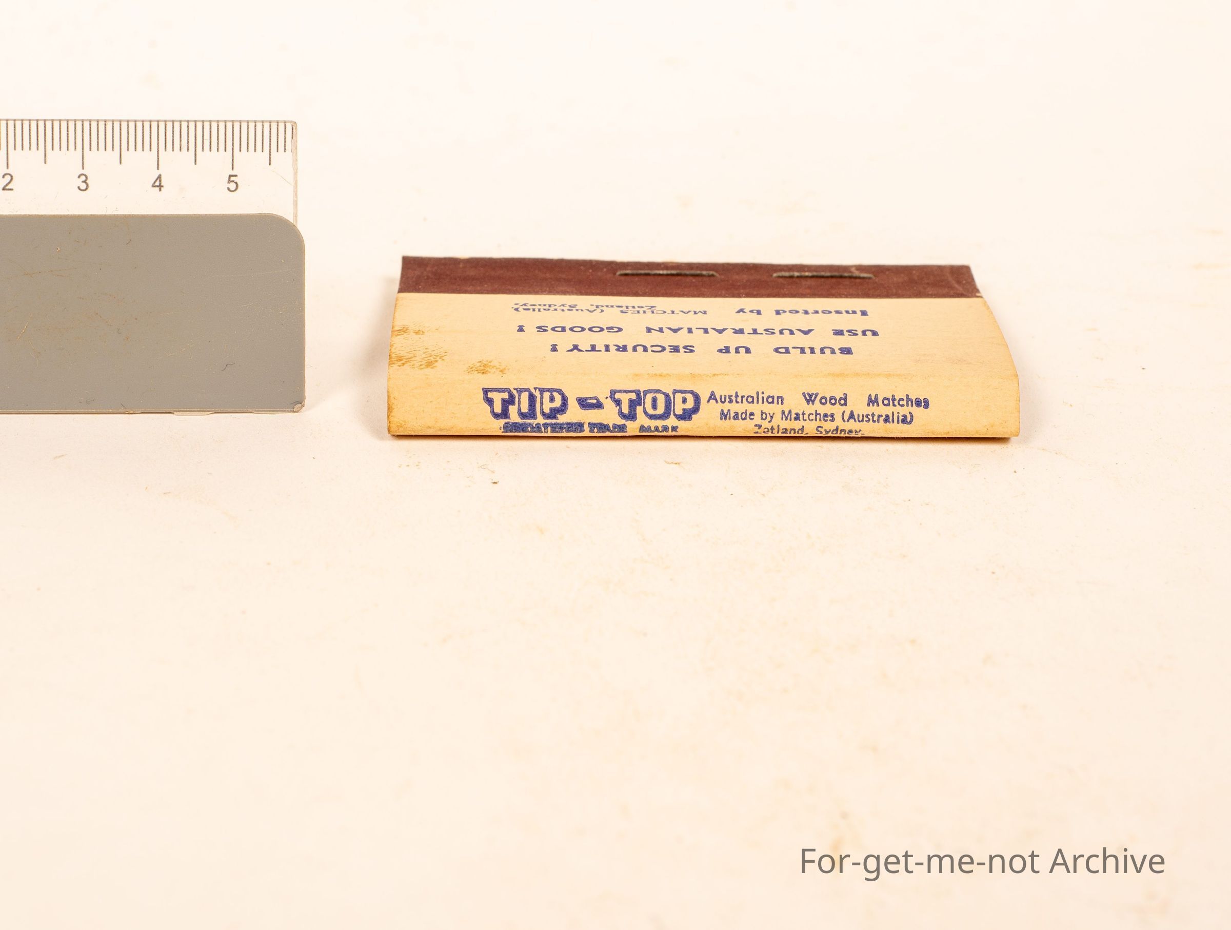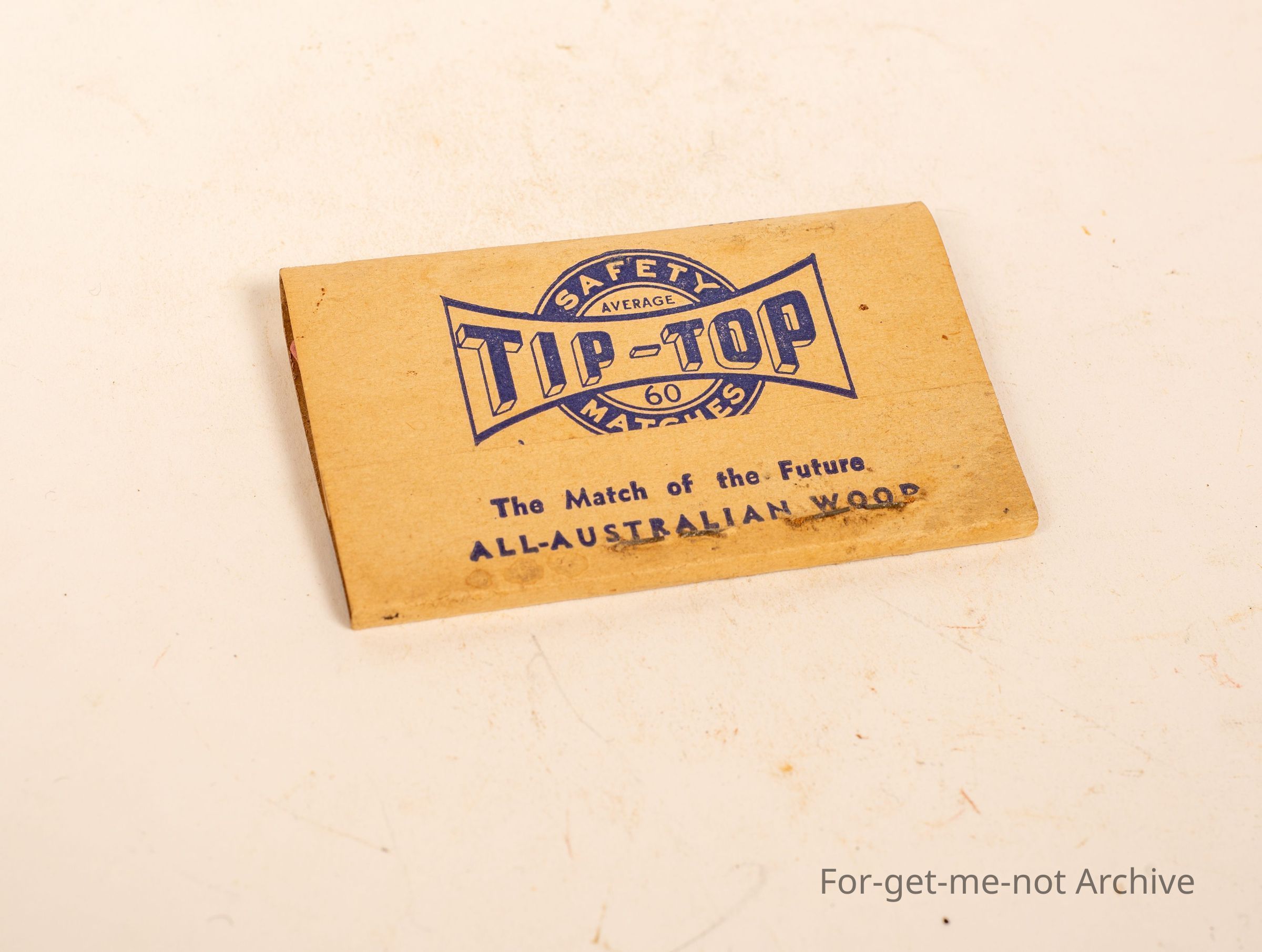 Is a packet of tip top safety matches, 60 to the package, all Australian wood. The match of the future.