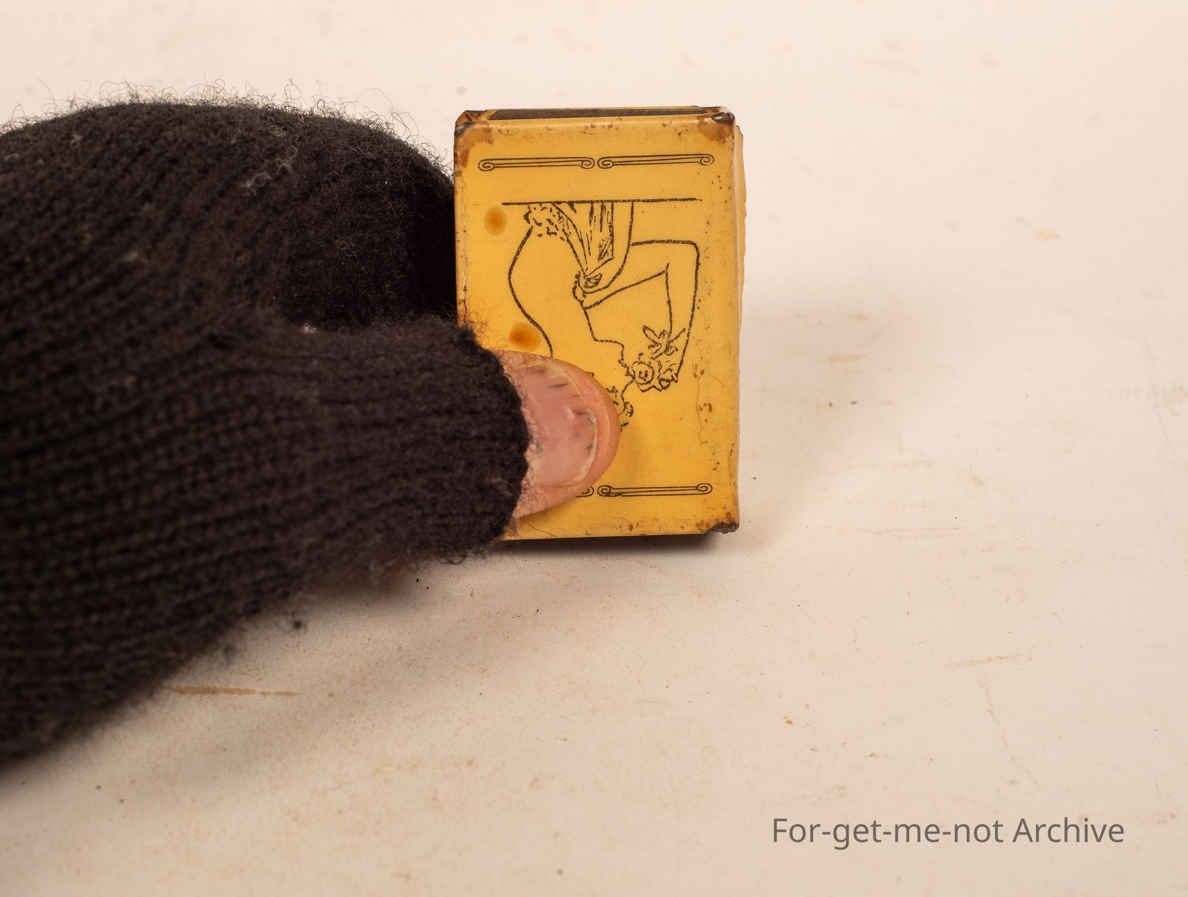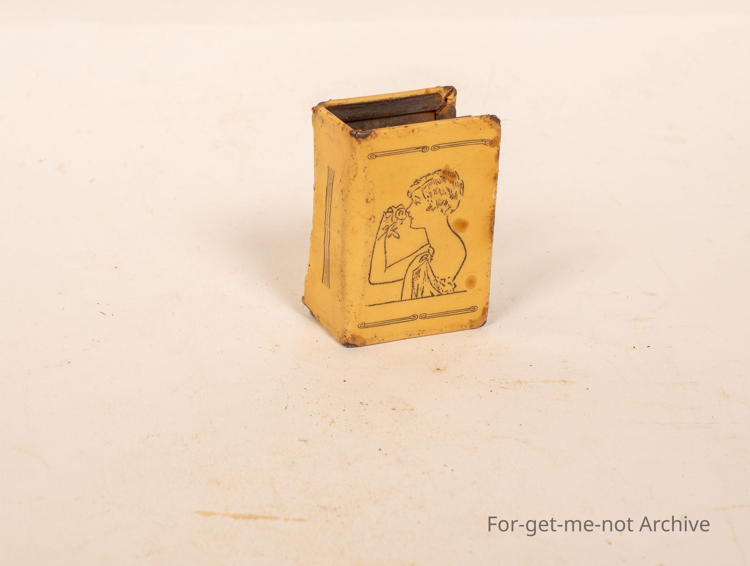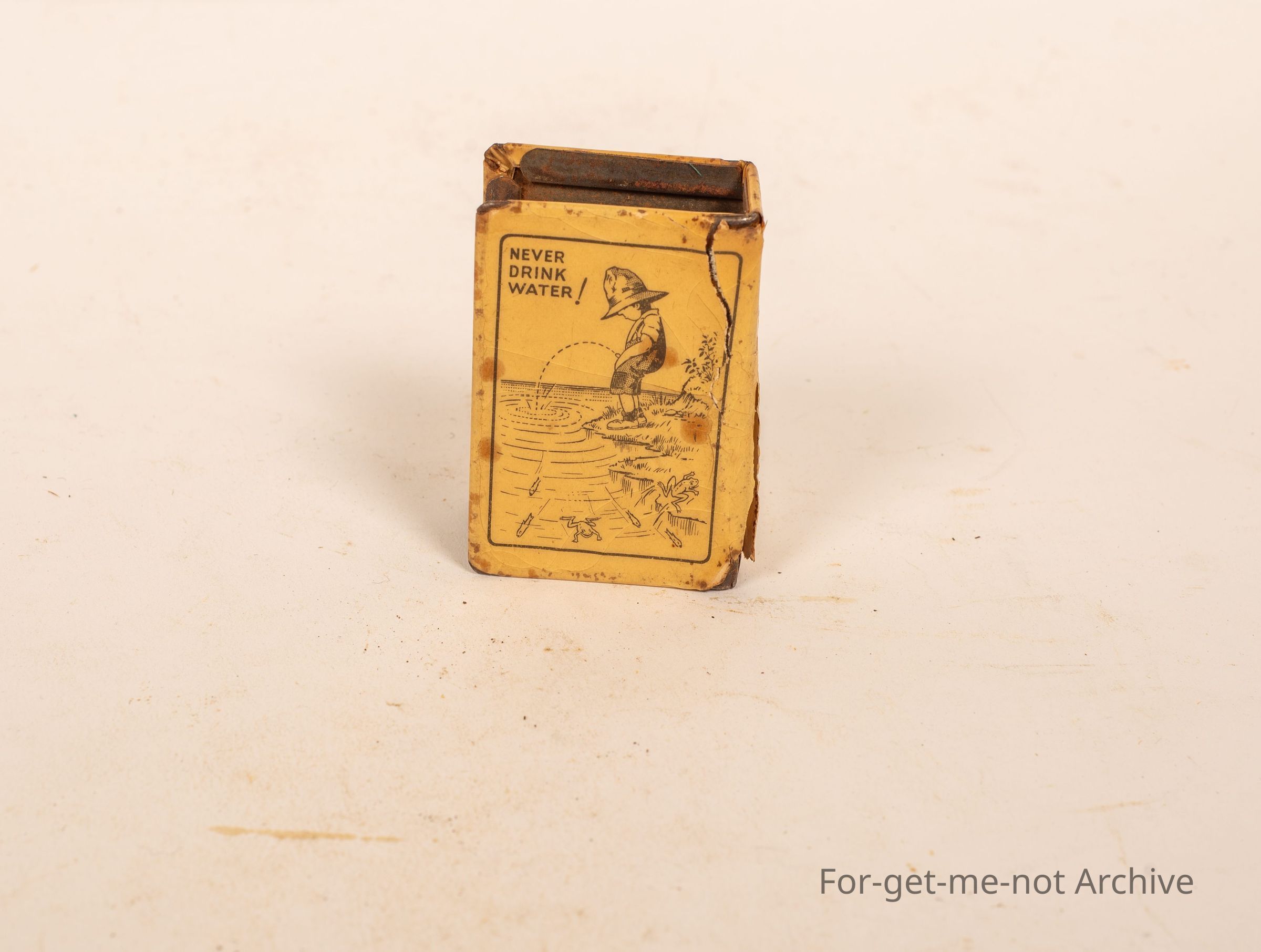 A match box cover. A novelty type thing with a kid having a piddle in water with the quote, never drink water. The fish and frogs all getting out. See the fish and the frog getting out of the water. And can you see the other side?Collection