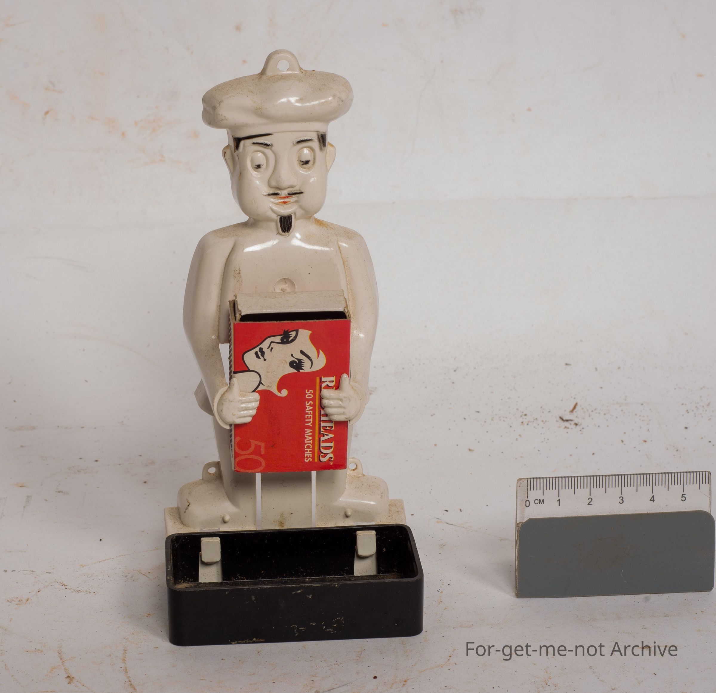 This is another Chefware item of, a matchbox holder with a tray for empty matches at the base. This is in perfect condition once again. Very rare