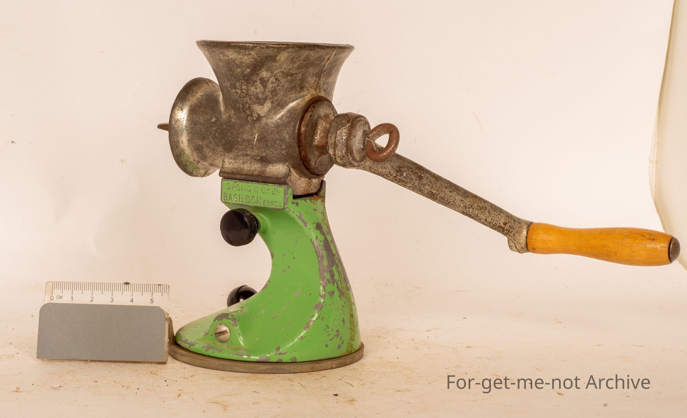 Spong and Co. Basildon Essex has a little base, handle on the side. Hand turned. English Origin