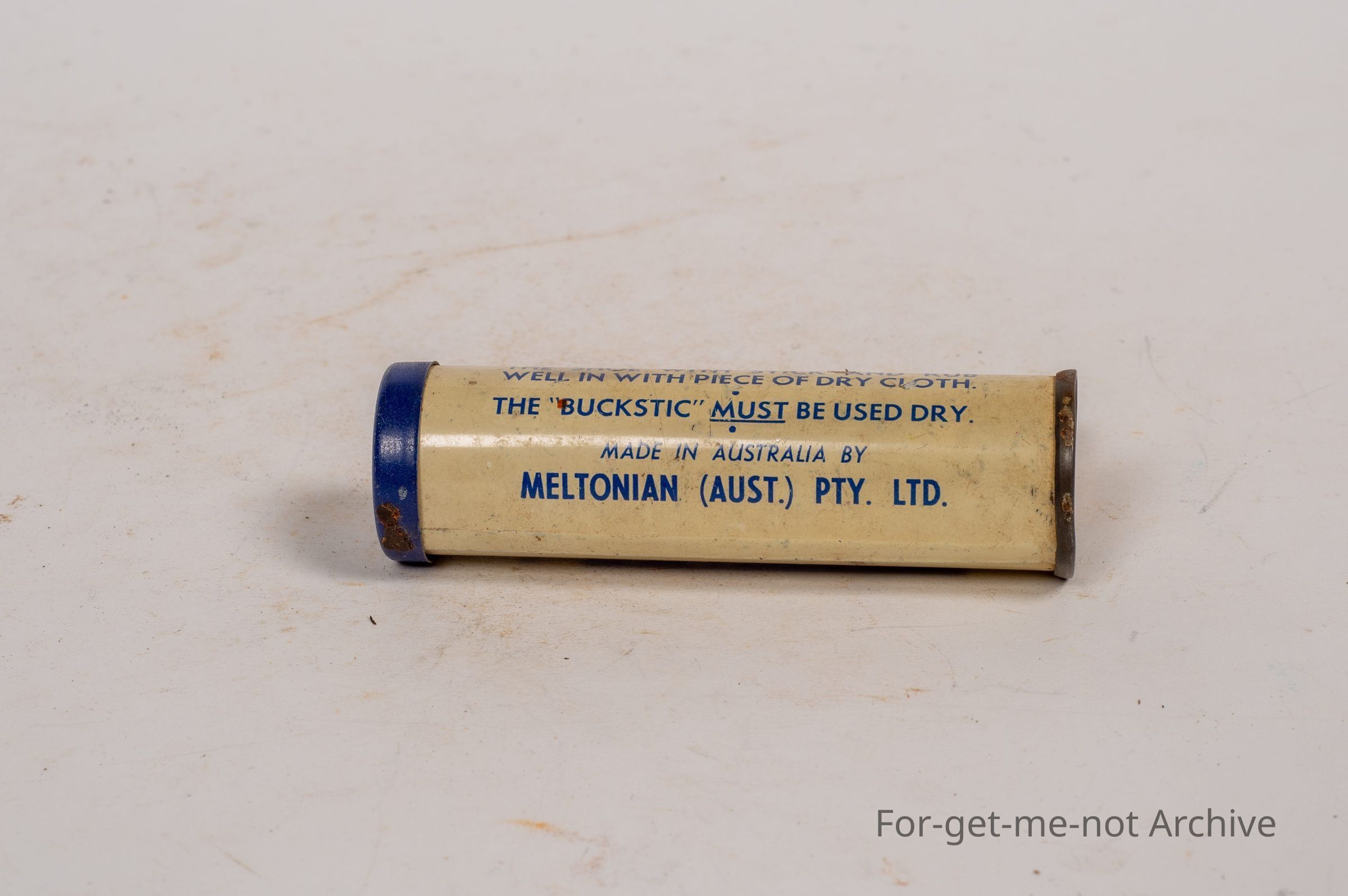 Small tin for cleaning leather. Meltonian white buck stick, Australian product, remove all dust and dirt.