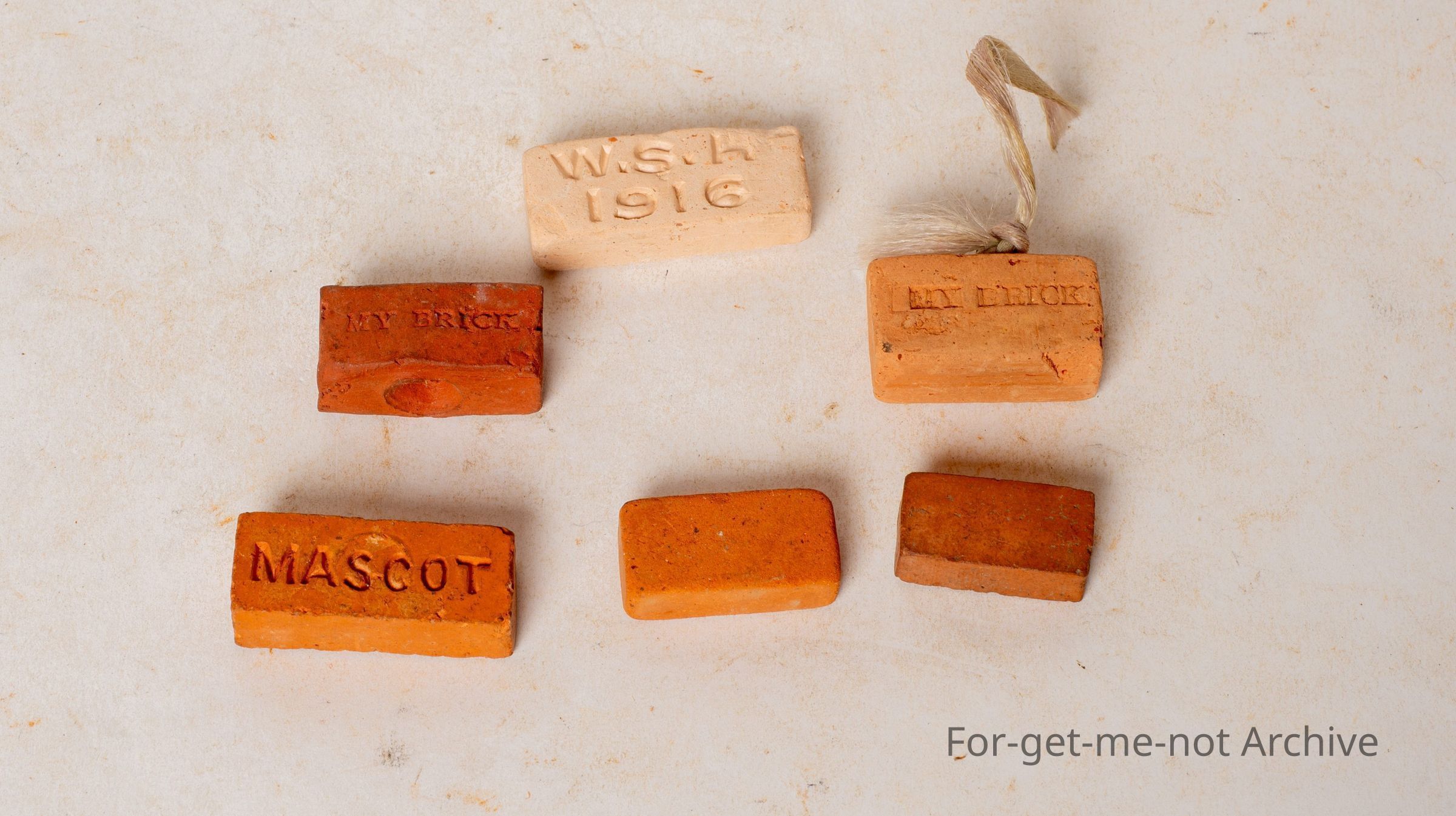 This little group of bricks, tiny as they are, were how the money was raised to build public buildings before government assistance after the 2nd World War. Each one has the name, like the Eye and Ear Hospital, WSH 1916, WSH Mascot. All of them had a purpose, including the Arch of Victory Ballarat. They were built by the same fundraising methodCollection