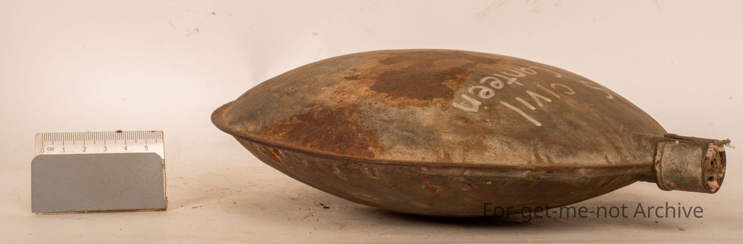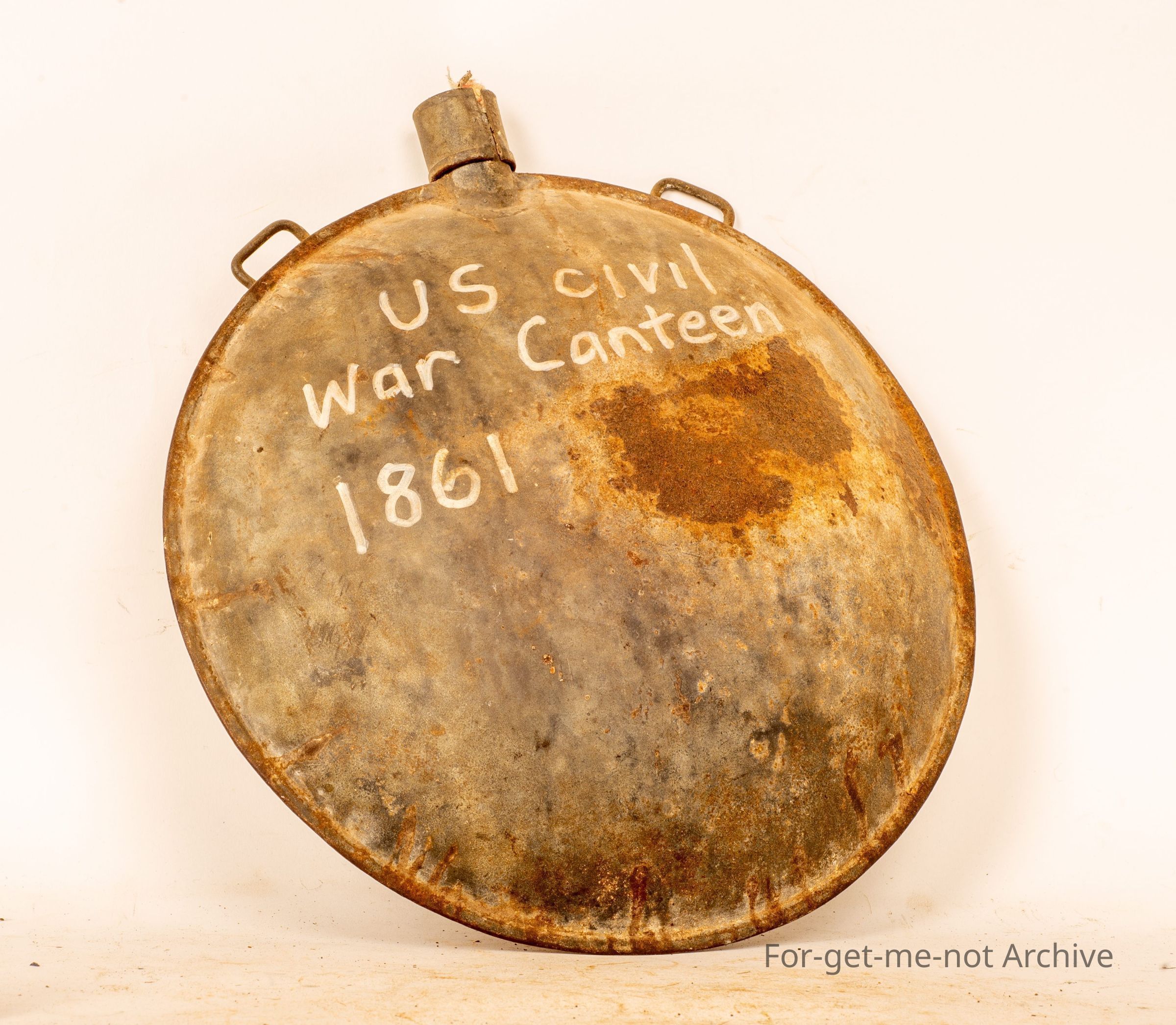 Heavily galvanized, has provision for straps and a stopper in the top of cork. Very rare here, US Civil war 1861