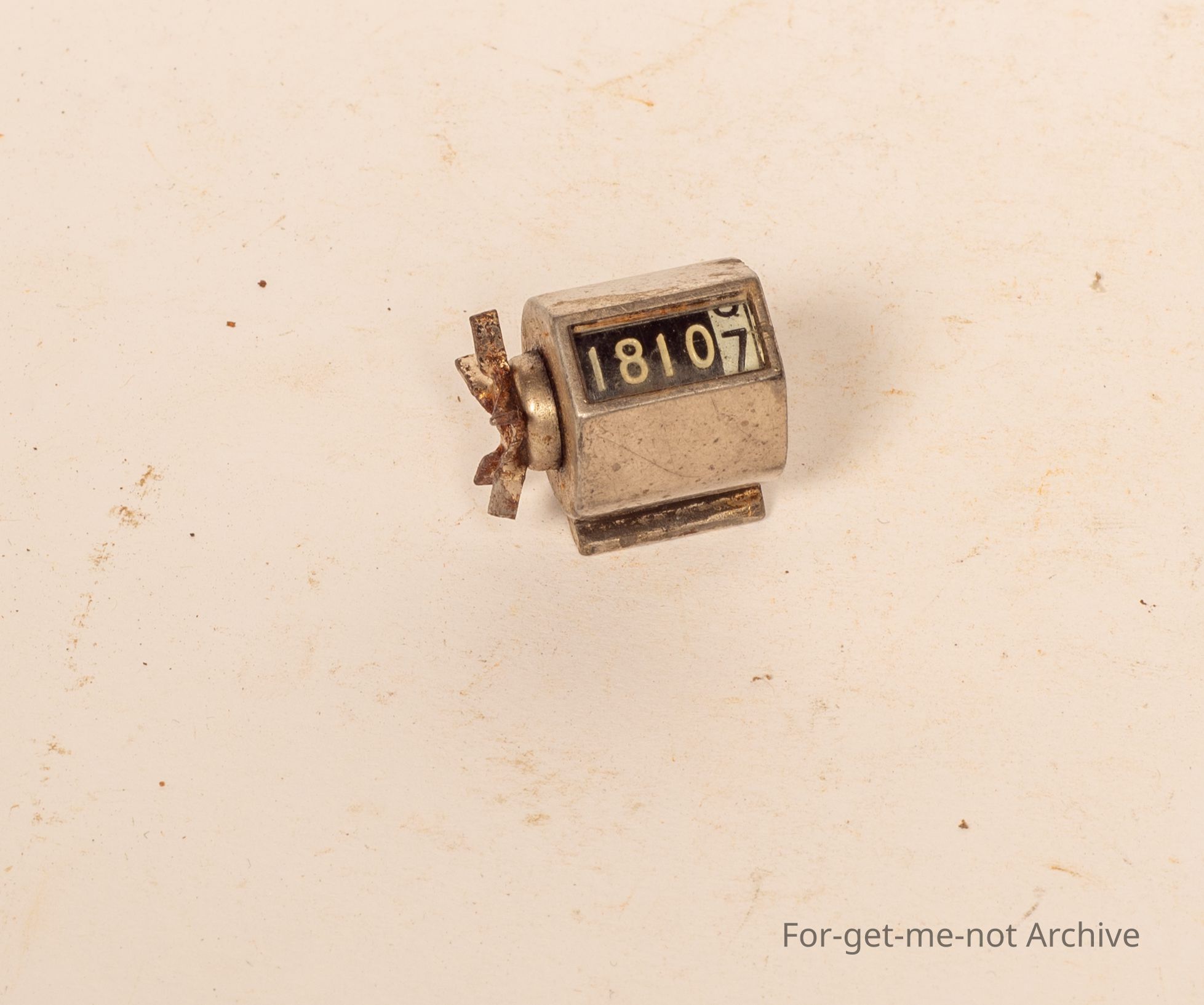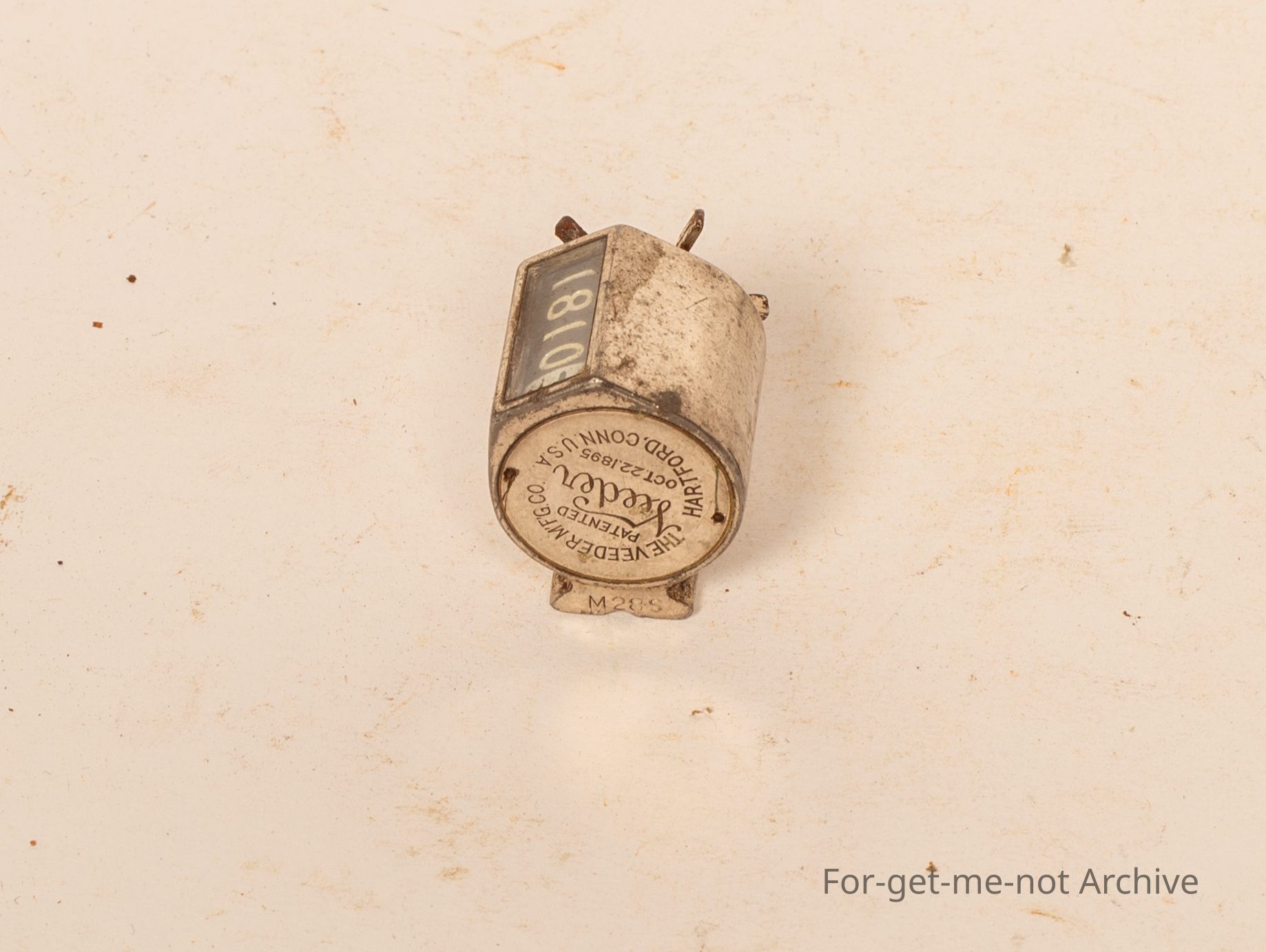 Is a small mileage meter for a push bike. this is triggered by running around and hitting the spokes of the front wheel. Manufactured in Connecticut, USA by the Vern Wieder company. A nice little piece in miles not kilometres.Collection