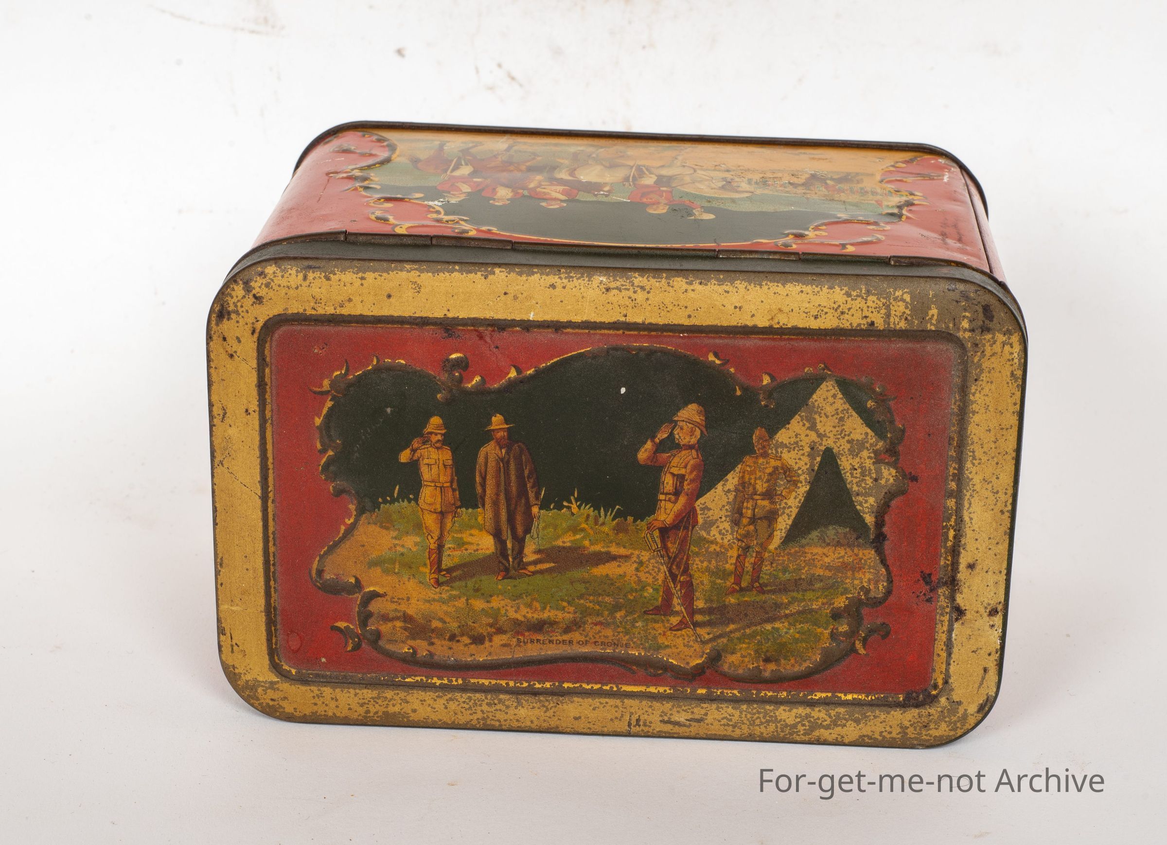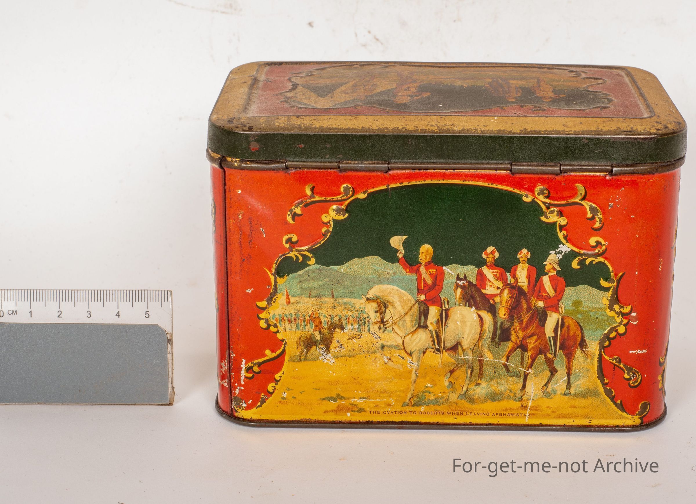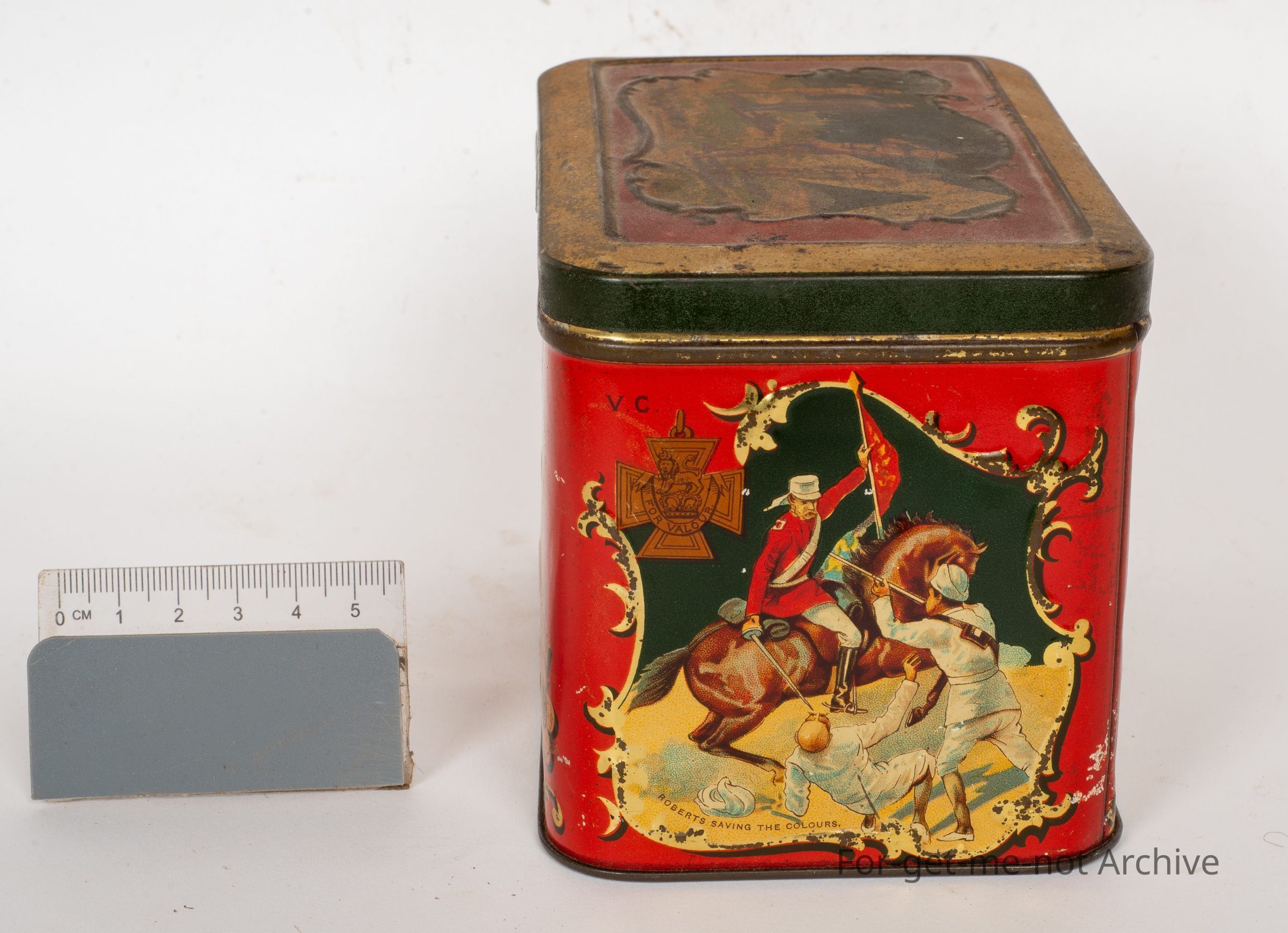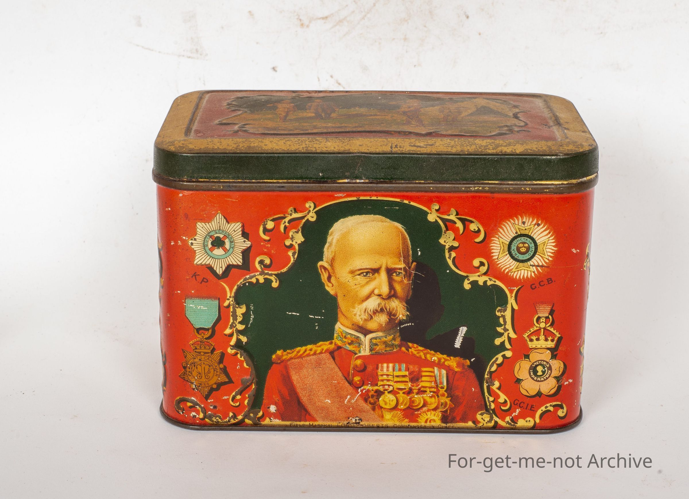 This is from the Boer War era. Just celebrating. Celebrating the efforts of Col Roberts, who was a, a famous military person. Rare tin. Pretty good condition. The military tin celebrating Roberts was, in fact, Swallow and Ariel's Biscuit Manufacturers Port Melbourne, stamped inside the lid, which adds a bit of significance to itCollection