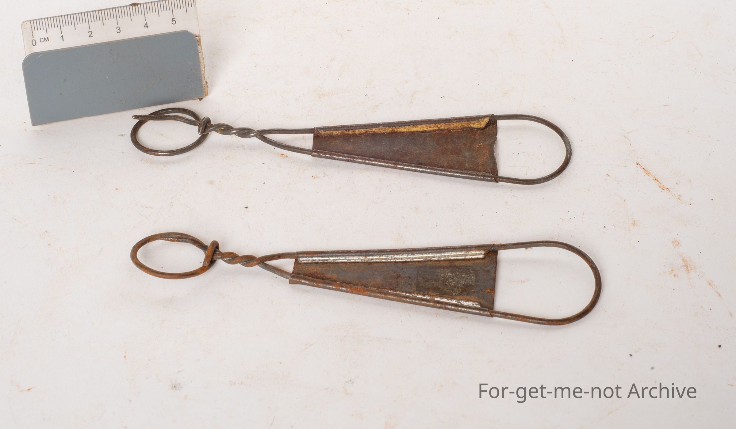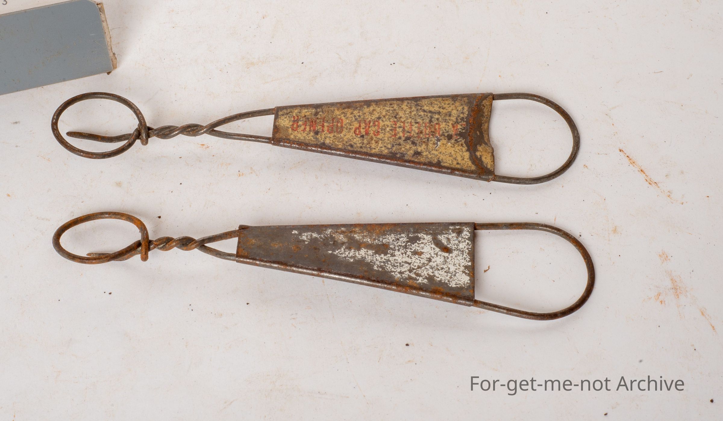 These are two milk bottle openers, used to remove the cardboard top that fitted into the top of old milk bottles. One of these, you can still read the little bit of advertising, which says bottle cap opener. The second one, that is all gone. These are hard to find.Collection