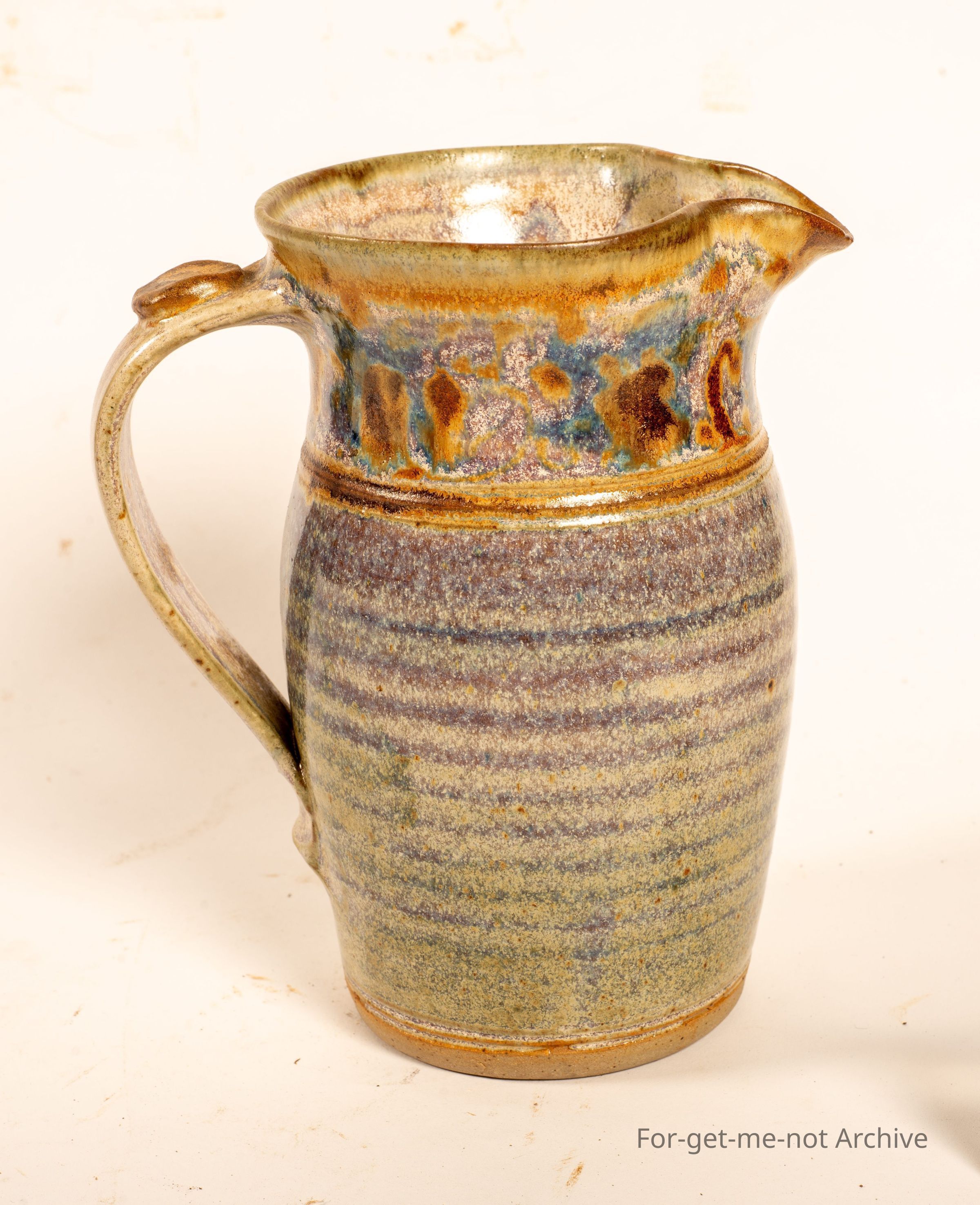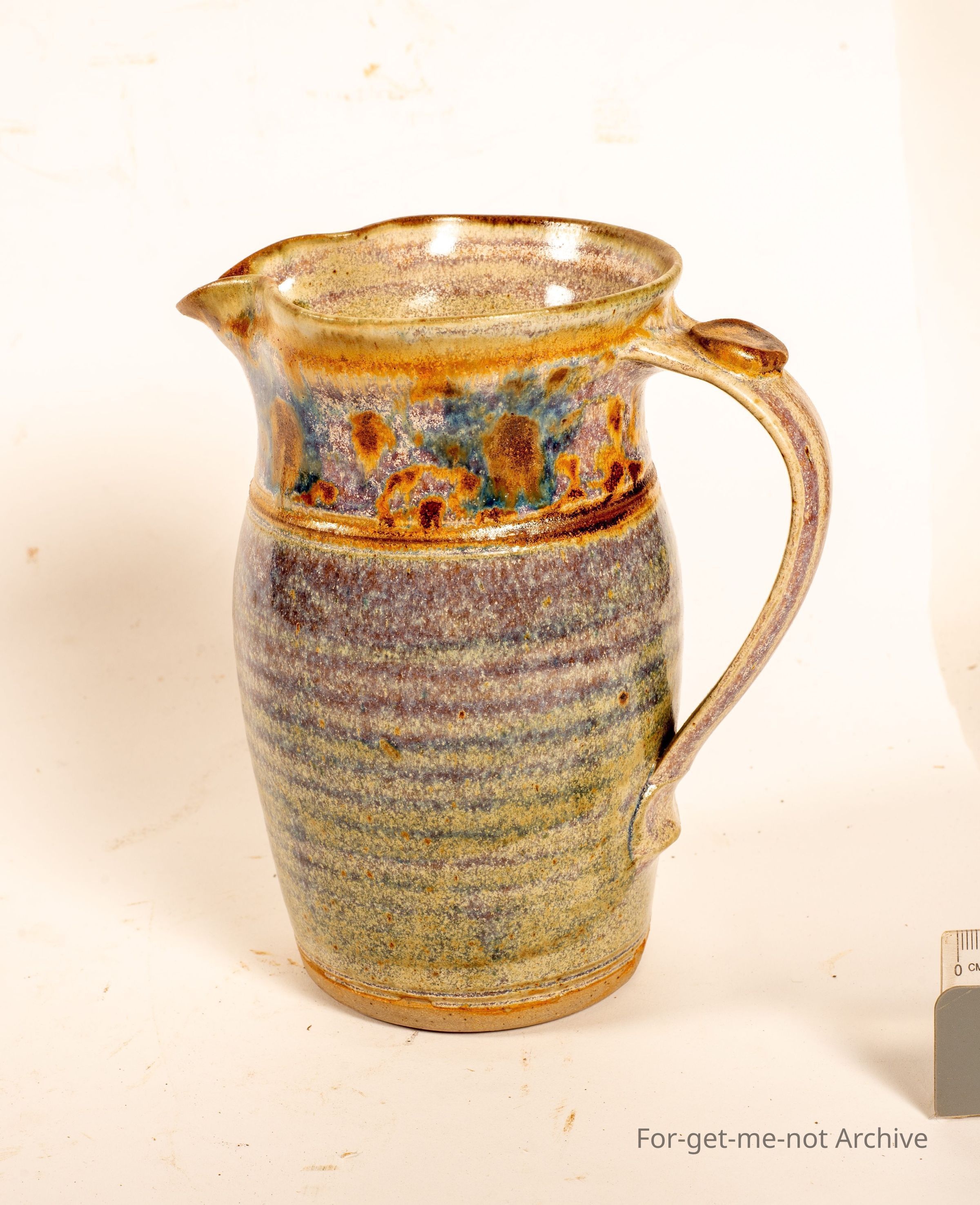 This is another milk jug. Quite a decorative piece. Very colourful purply glaze.