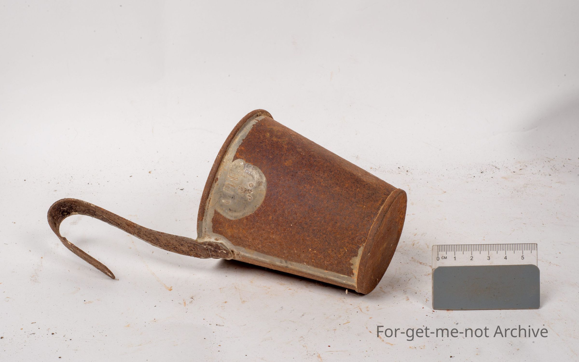 Is a one point milk measure. This is all tinned with a handle for scooping milk up to measure. Soldering top quality. This has a stamp, in solder of 1 pint with the weights and measure crown, possibly with the date on it as well. It's so it's an official measure for milk.Collection