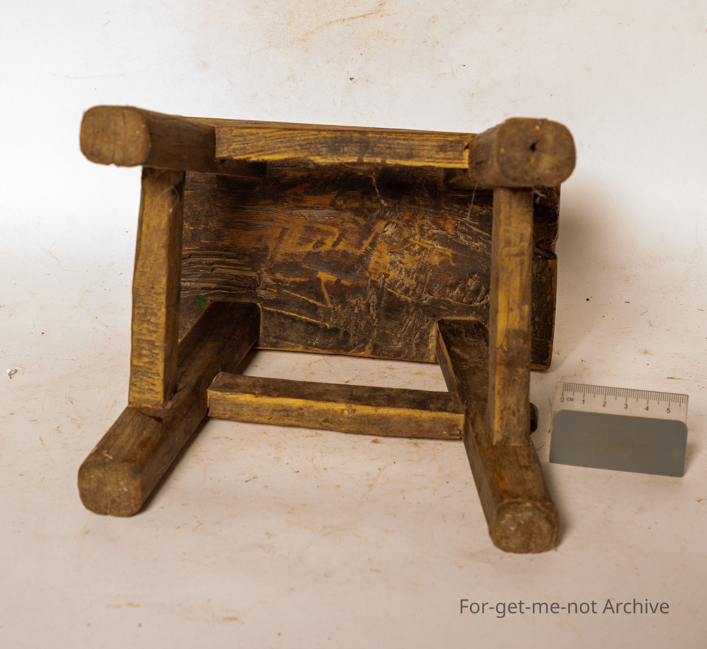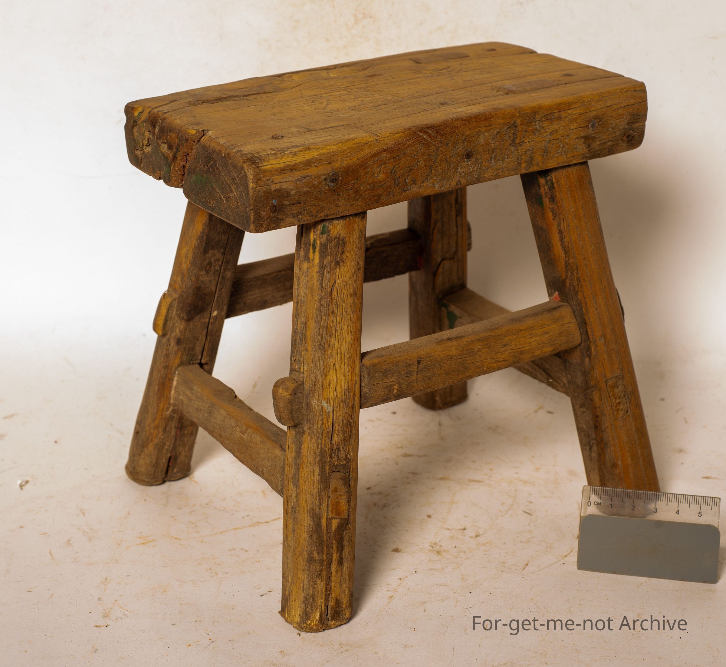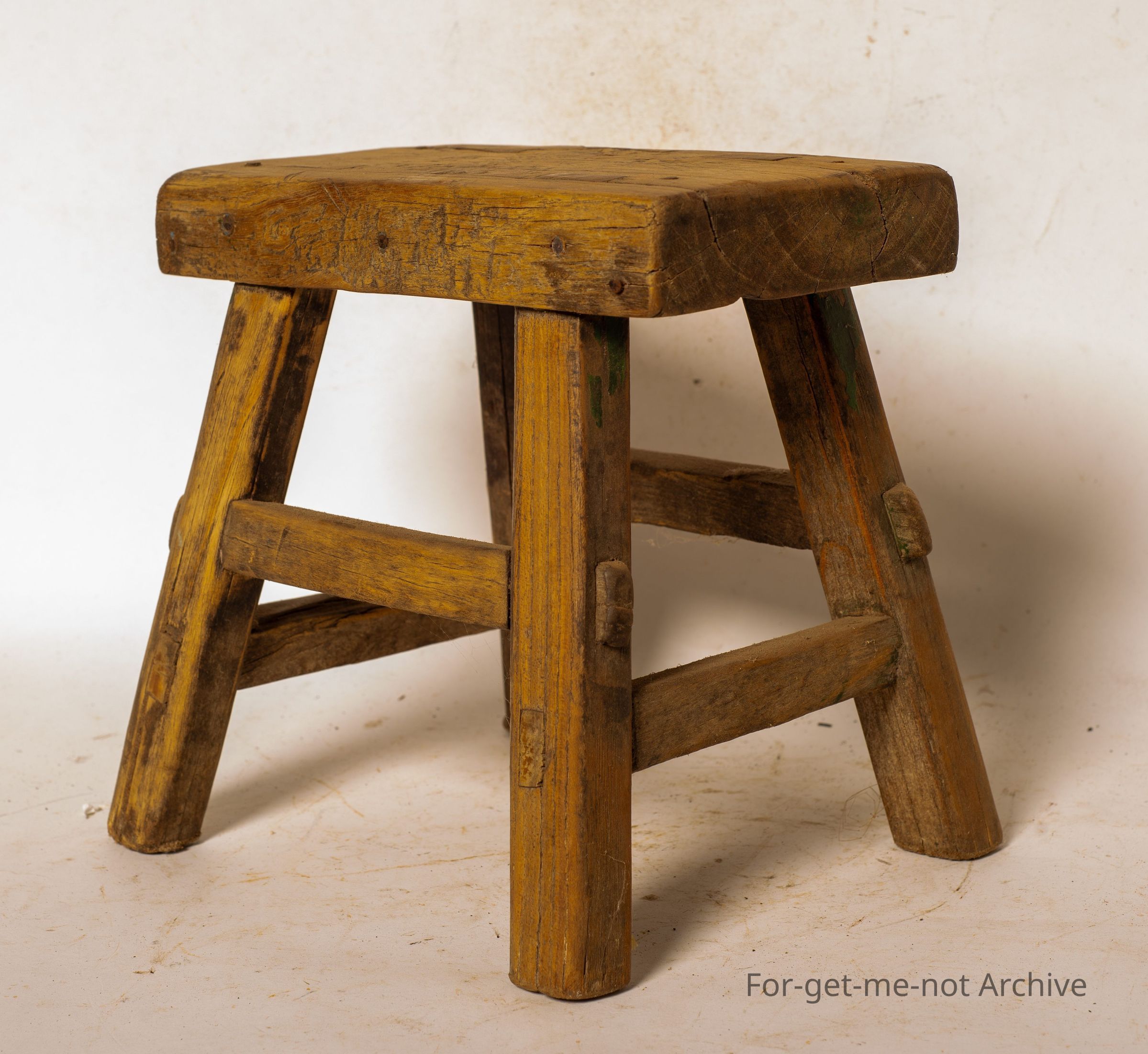 Chinese collection. This is a small wooden milking stool. Mortise and tenant. Construction, beautiful little piece. These were bought into Australia, just as interest pieces, but they were used in China for milking a goat, to sit on while milking a goat.Collection