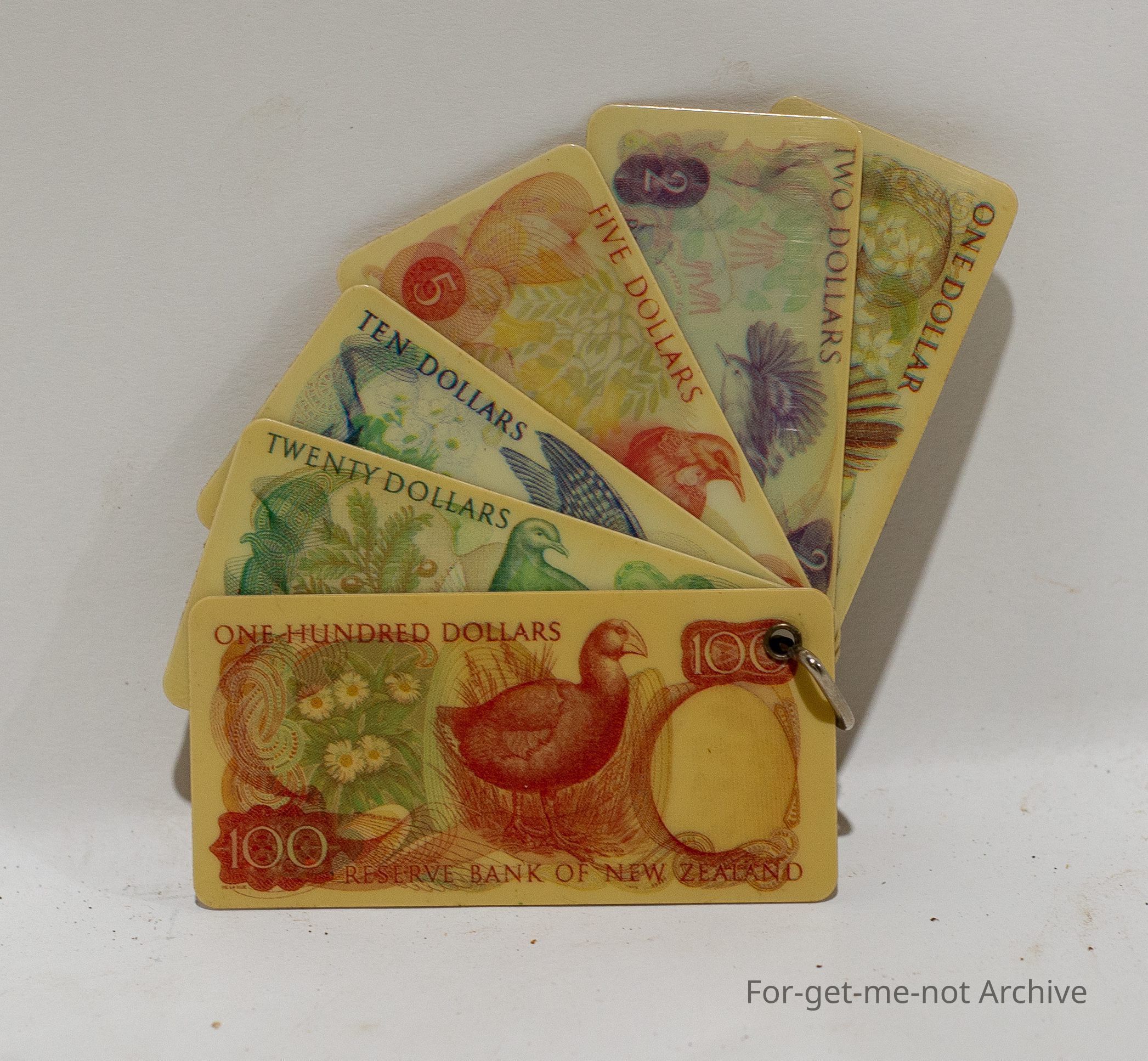 Plastic notes , samples, of newzealand dolars . NZD notes introduced in 1985. perhaps a educational piece for when the new notes were introduced into the communityCollection
