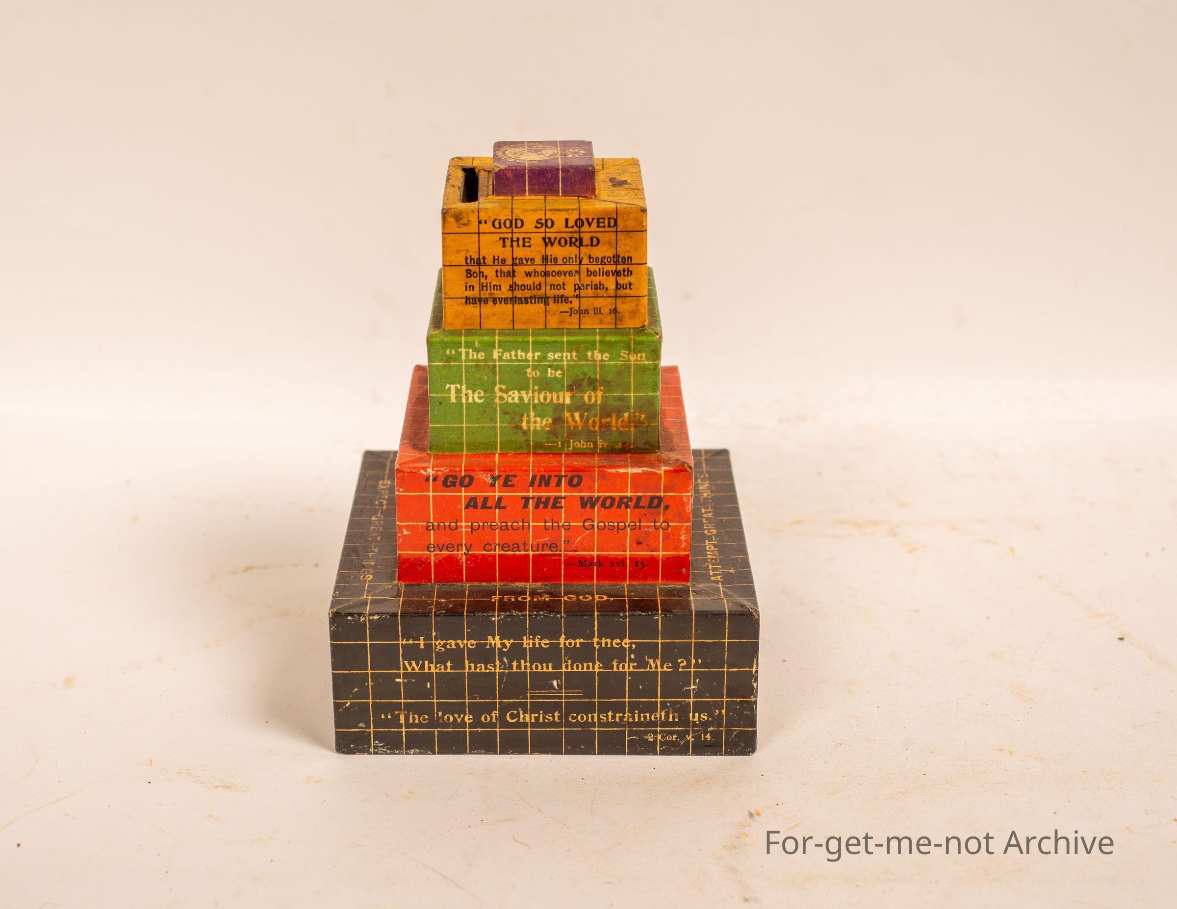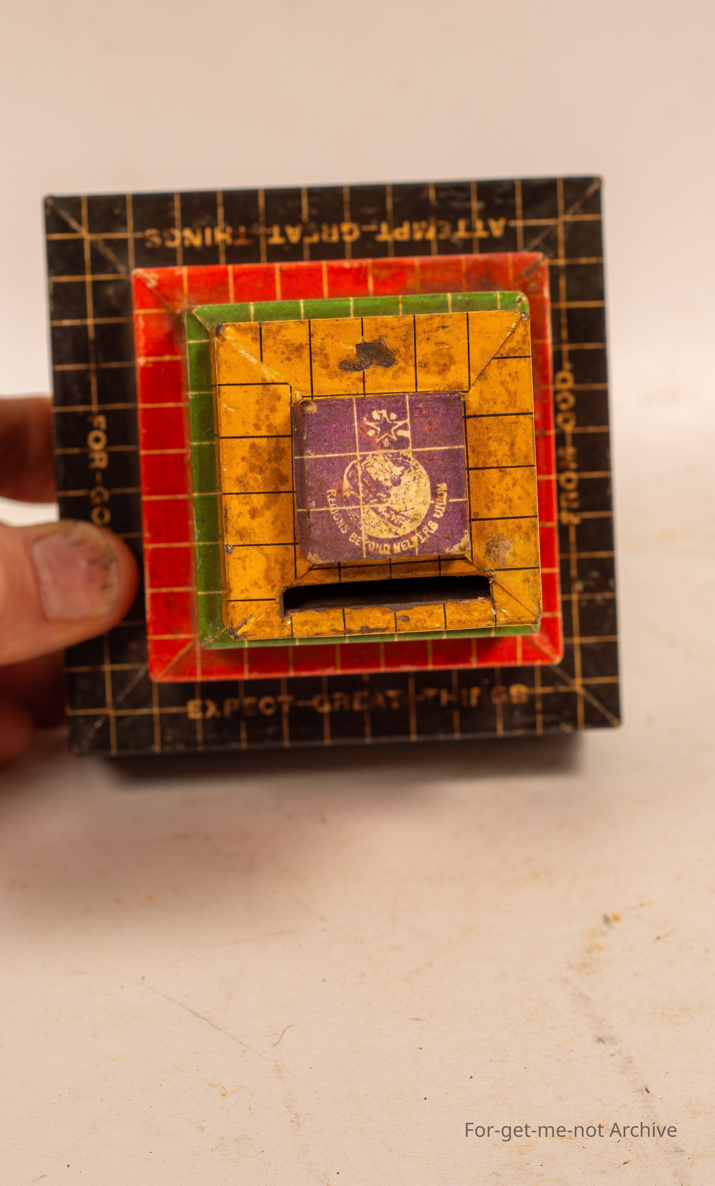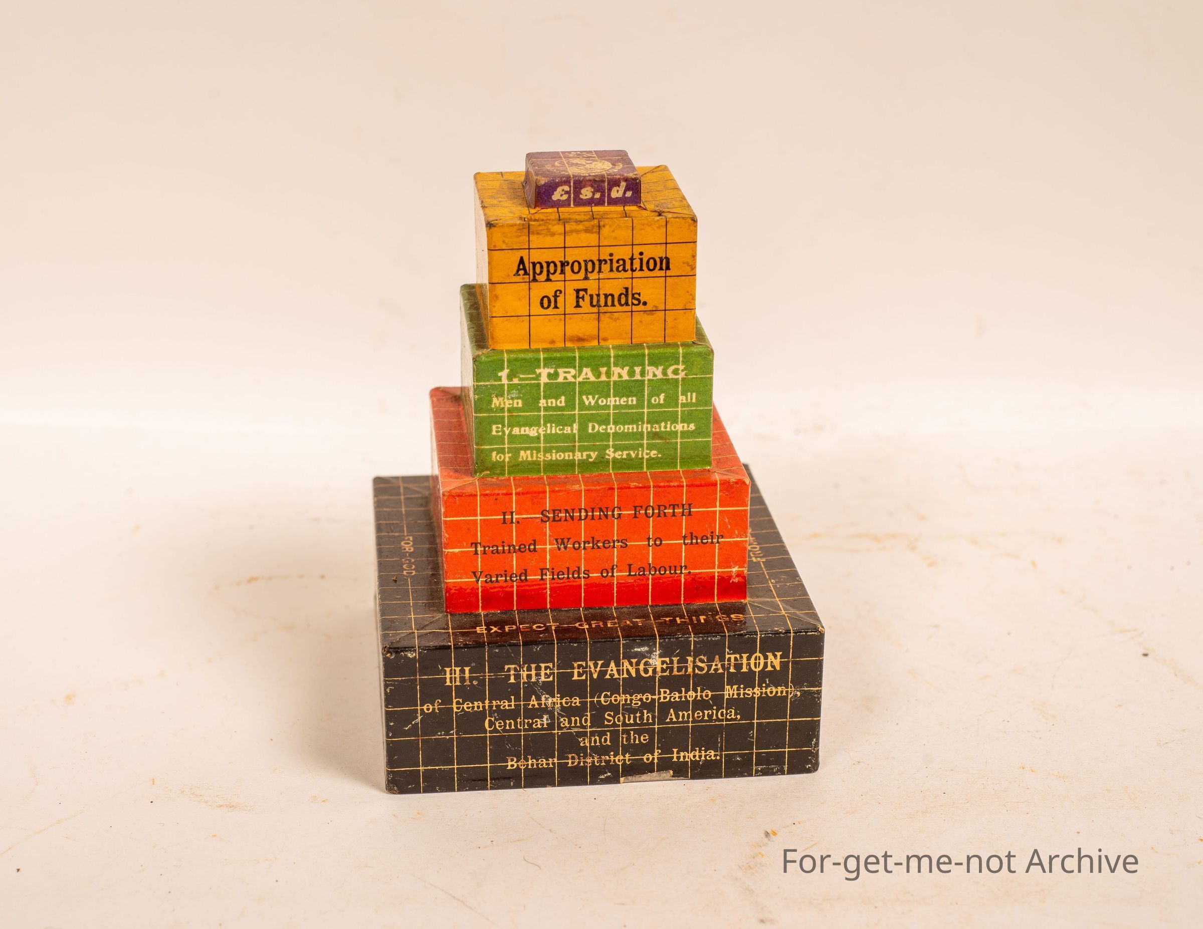 This is a piece called Appropriation of Funds, Training Men and Women of all Evangelical Denominations for missionary service. Trained workers to their varied fields of labour. The Evangelists of Central Africa, Central and South America and Bihar District of India. Oh. This is a Fundraising Money Box for that purposeCollection