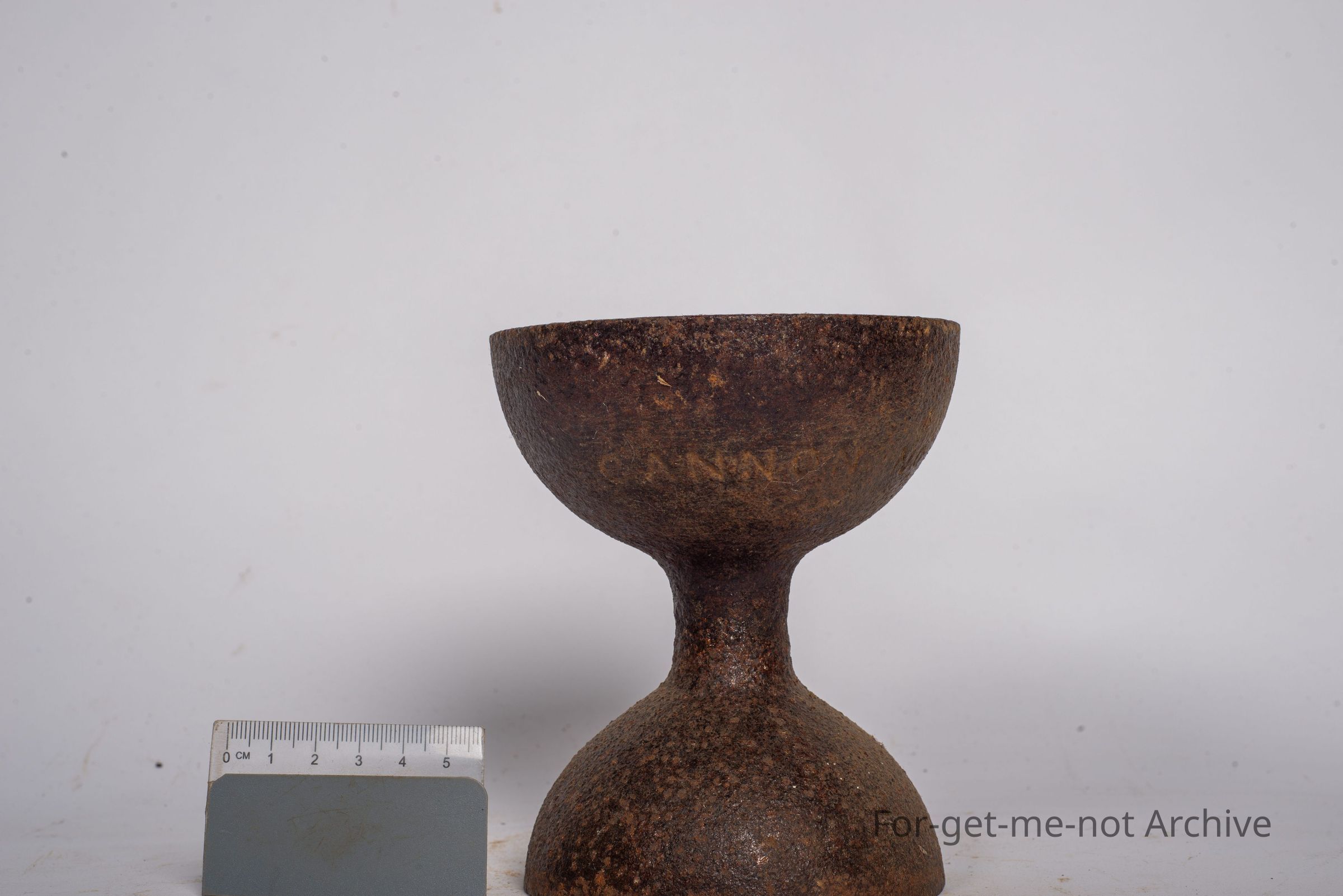 This is a mortar stamped cannon from Scotland. This can be used as with the big end as a base and the small end to use or swap the other way. A well thought out piece