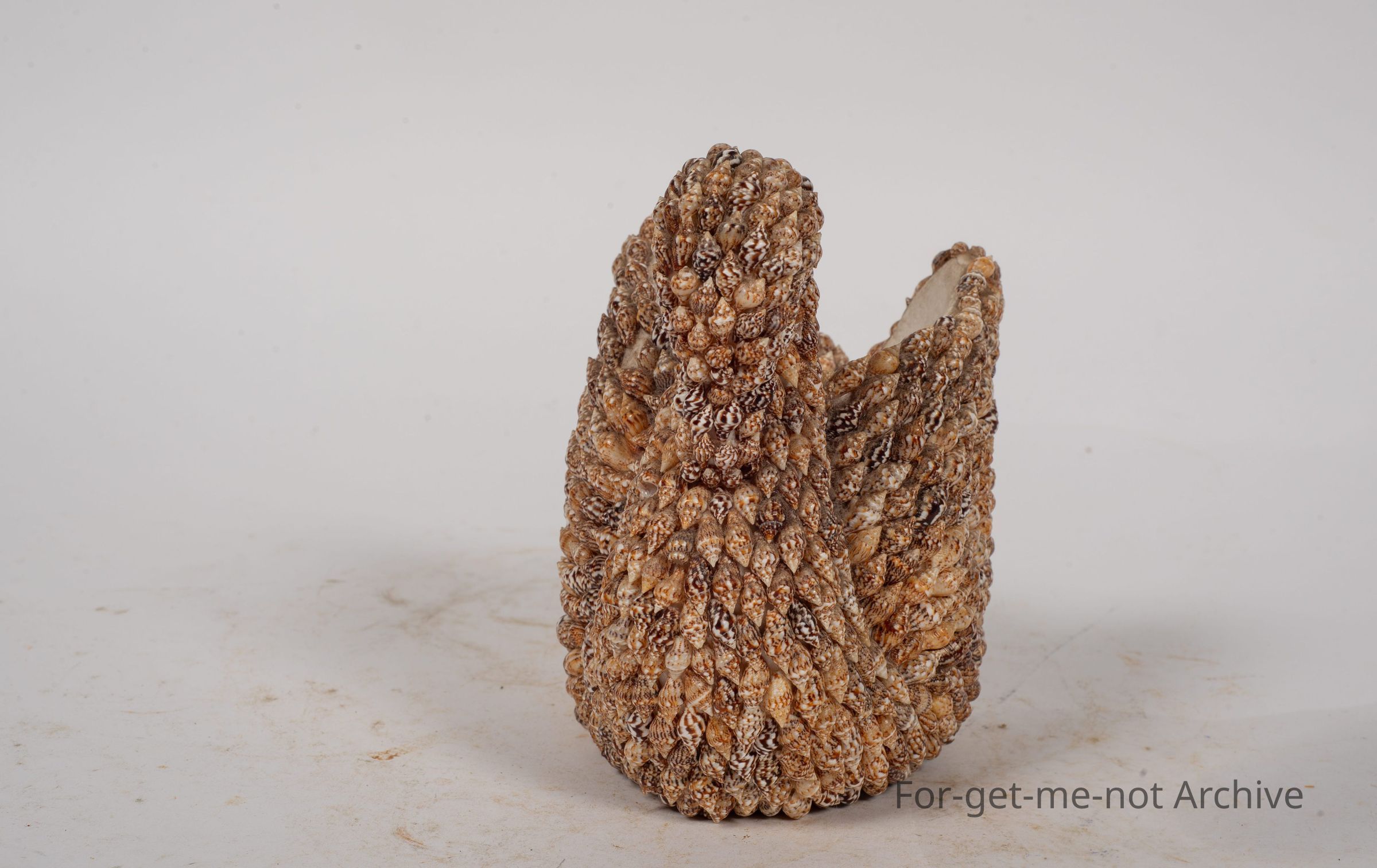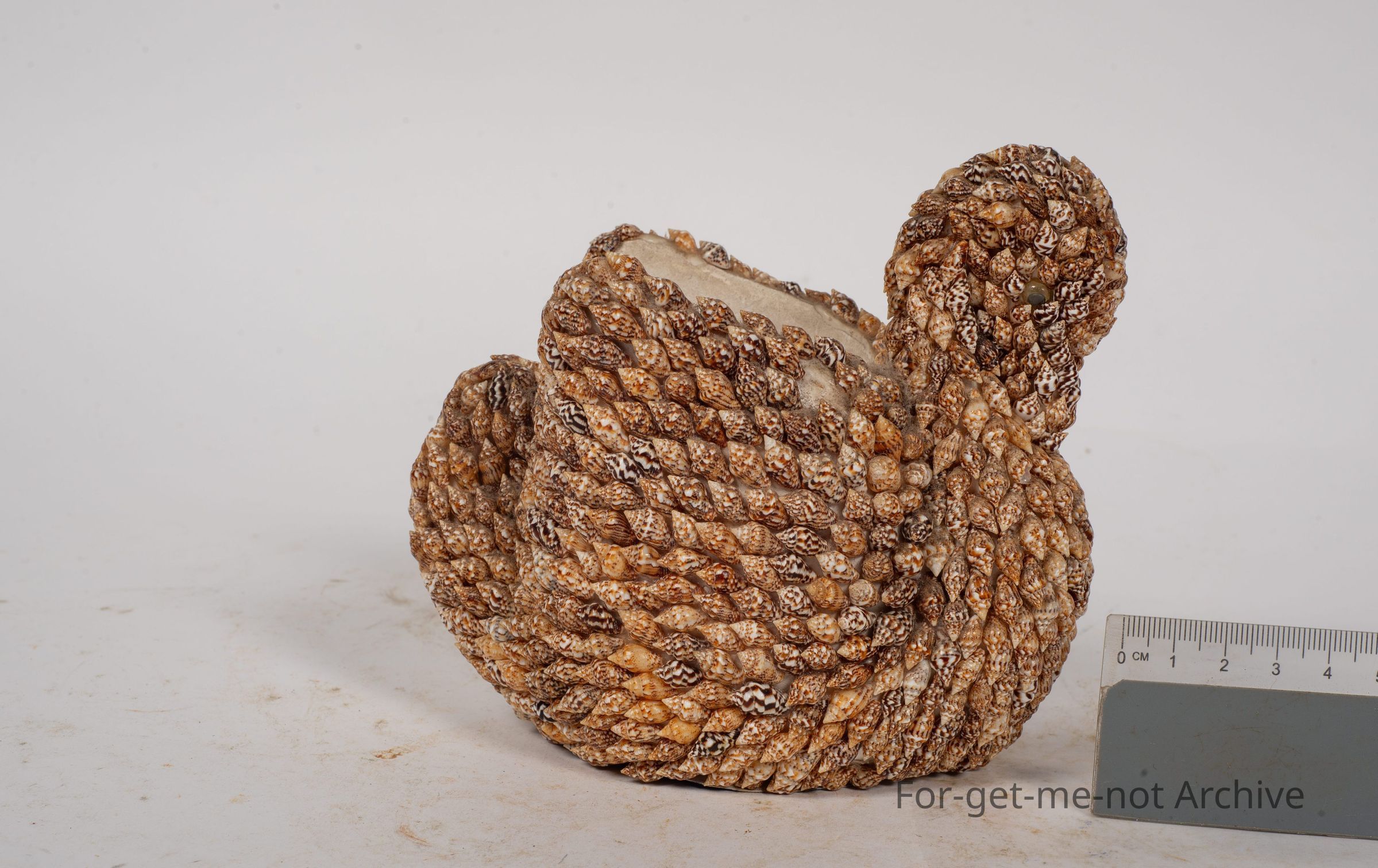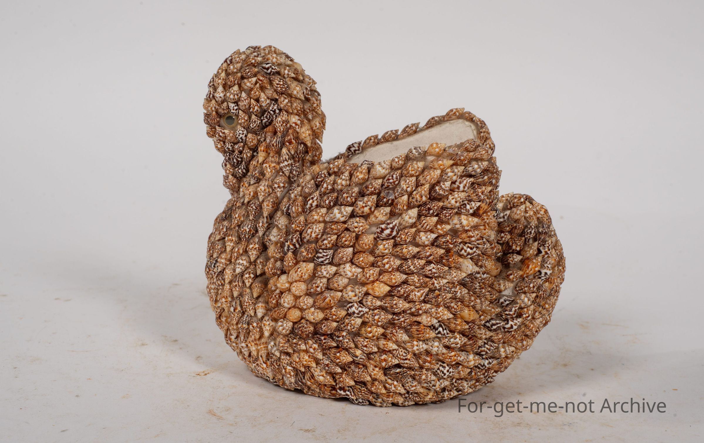 Once again, a craft item of a mosaic over the shape of a swan. It's a plaster cast underneath that's been covered. All the shells are of the one variety, an immense amount of work for someone.Collection
