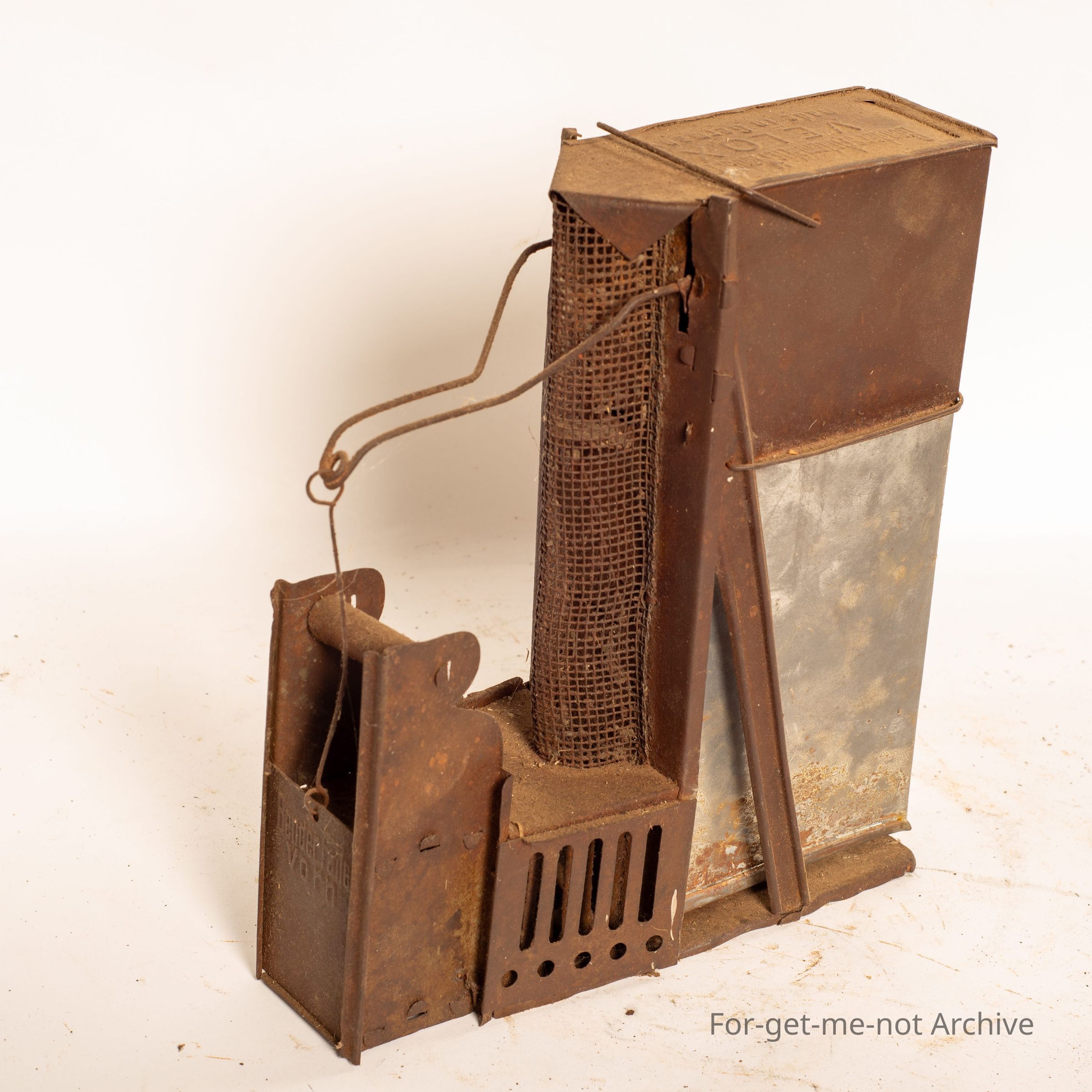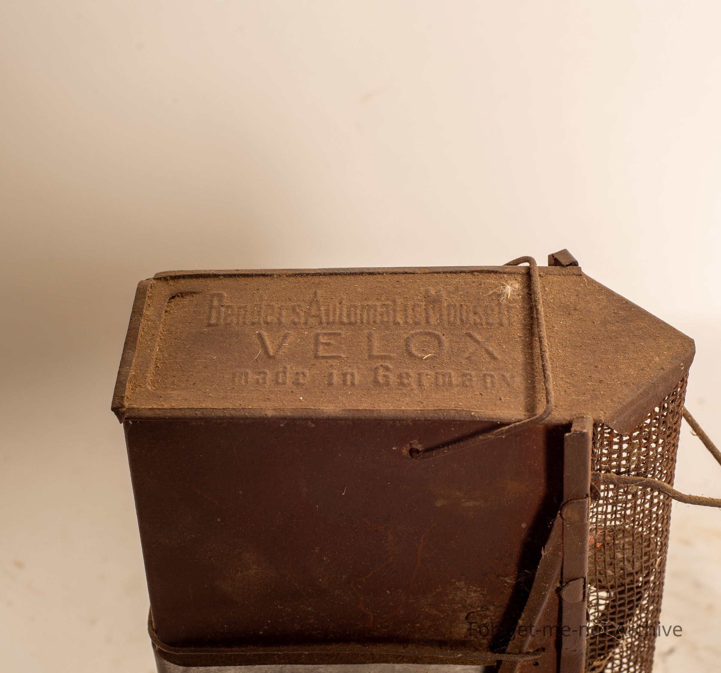 This is an engineered tin automatically setting trap. The mouse walks in one open door. The door shuts after him. He climbs up a ladder. Another trap door there. When that releases, he falls into the tin canister to drown, which reopens the first door. This is called the Velox trap made in Germany. Beautiful bit of engineering, very hard to find value.Collection