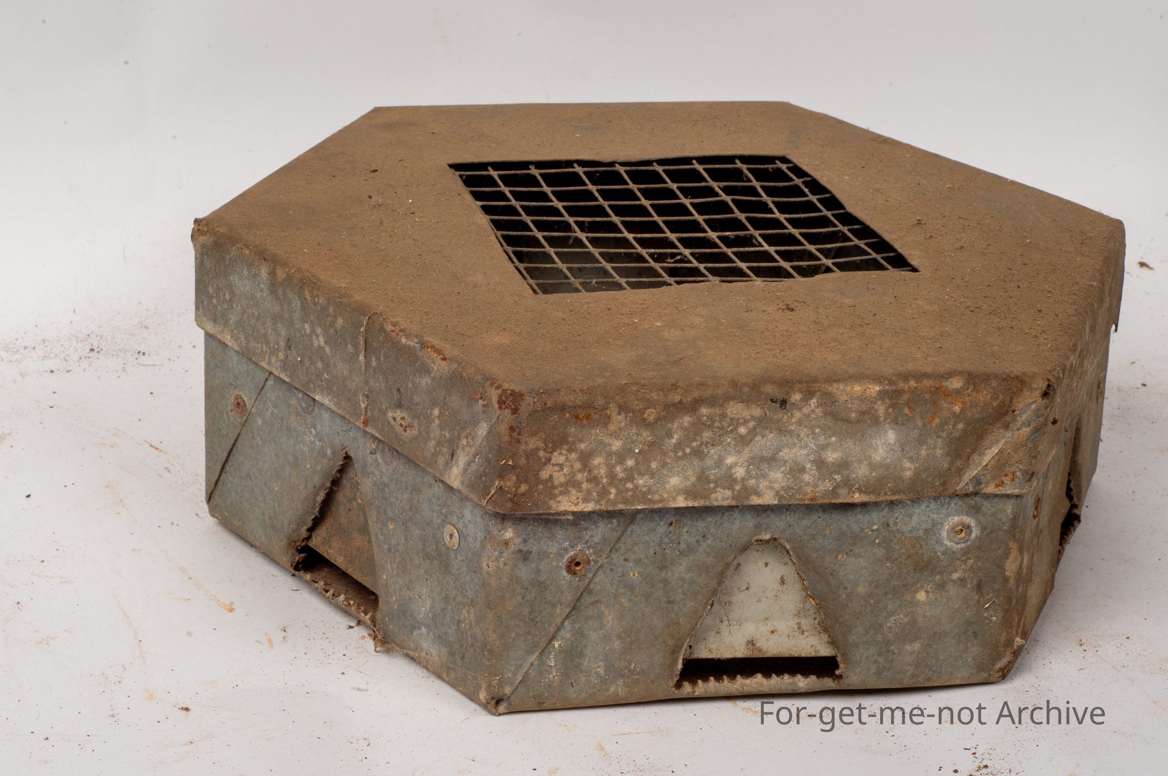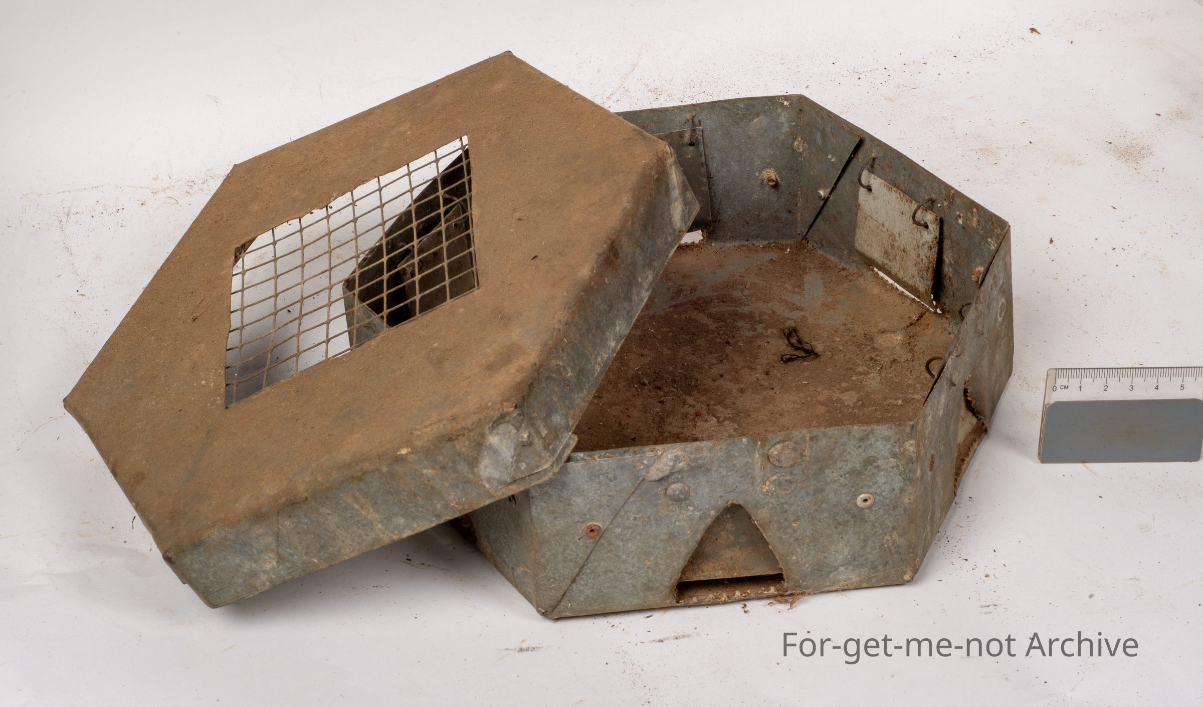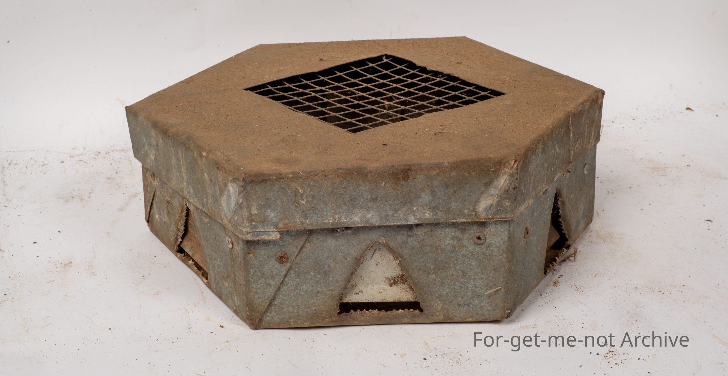 This is a mouse trap, quite cleverly made. It has 3 6 entrances, so it's in a an octagon shape. These are all got a flap on them so that when the mouse pushes through, it can't get out. All homemade. Quite a nice piece.Collection