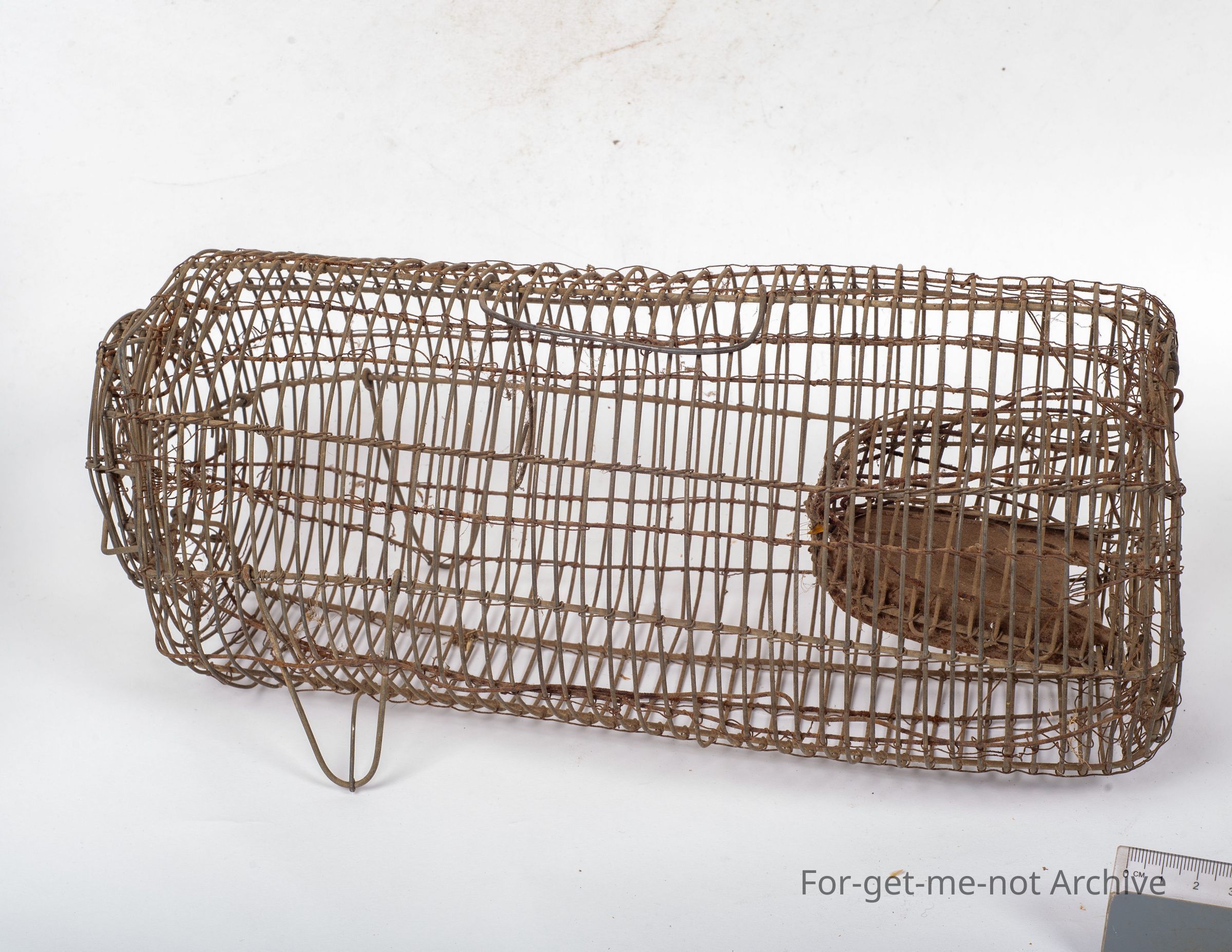 Another wire work piece this time. A beautifully made little mouse trap, in the shape of a cylinder with 4 legs and a trip door that when they work on it to get the bait, they fall in.Collection