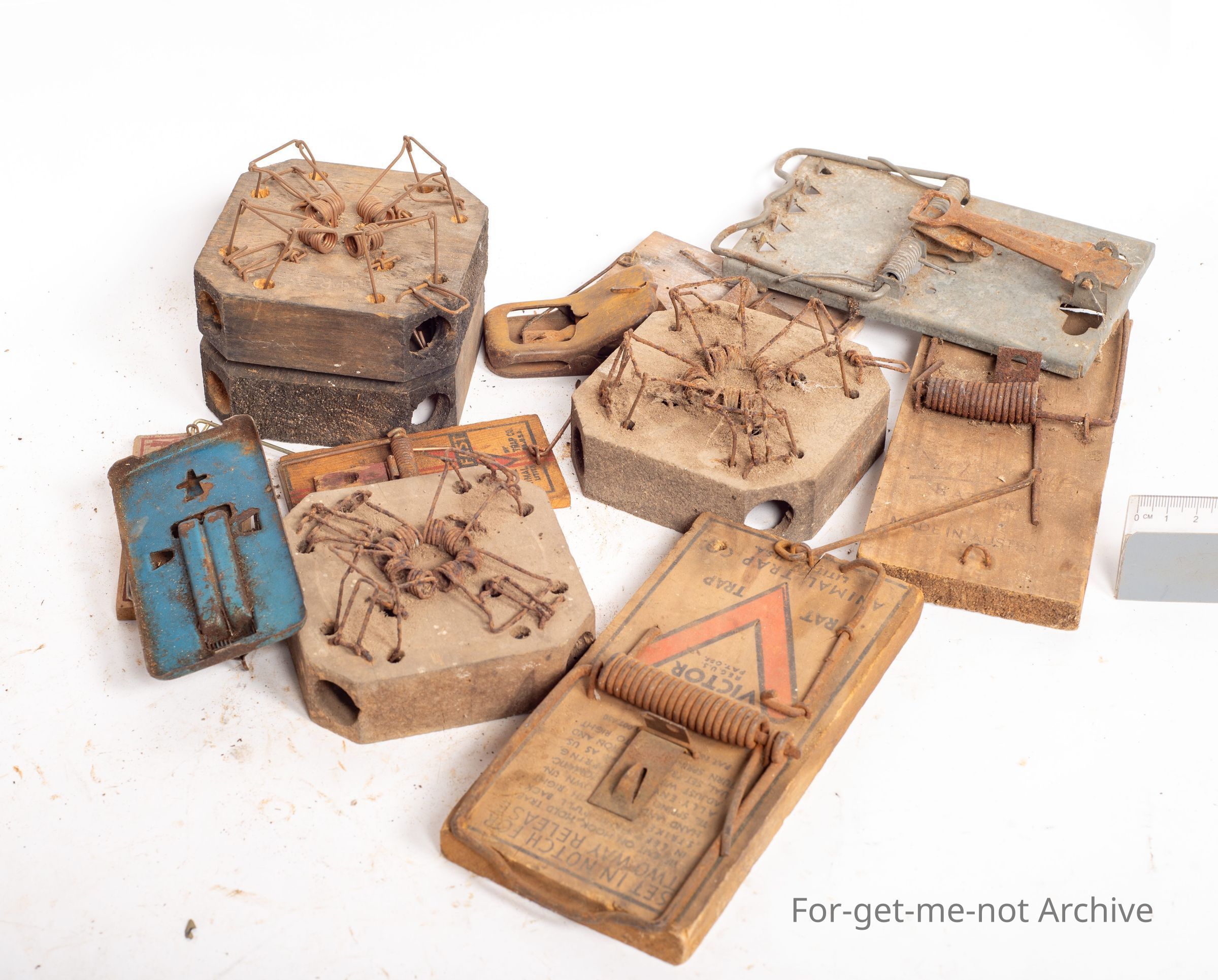 This is a cargo box of excess mouse traps to our display. All sorts, wood, metal, large, small.