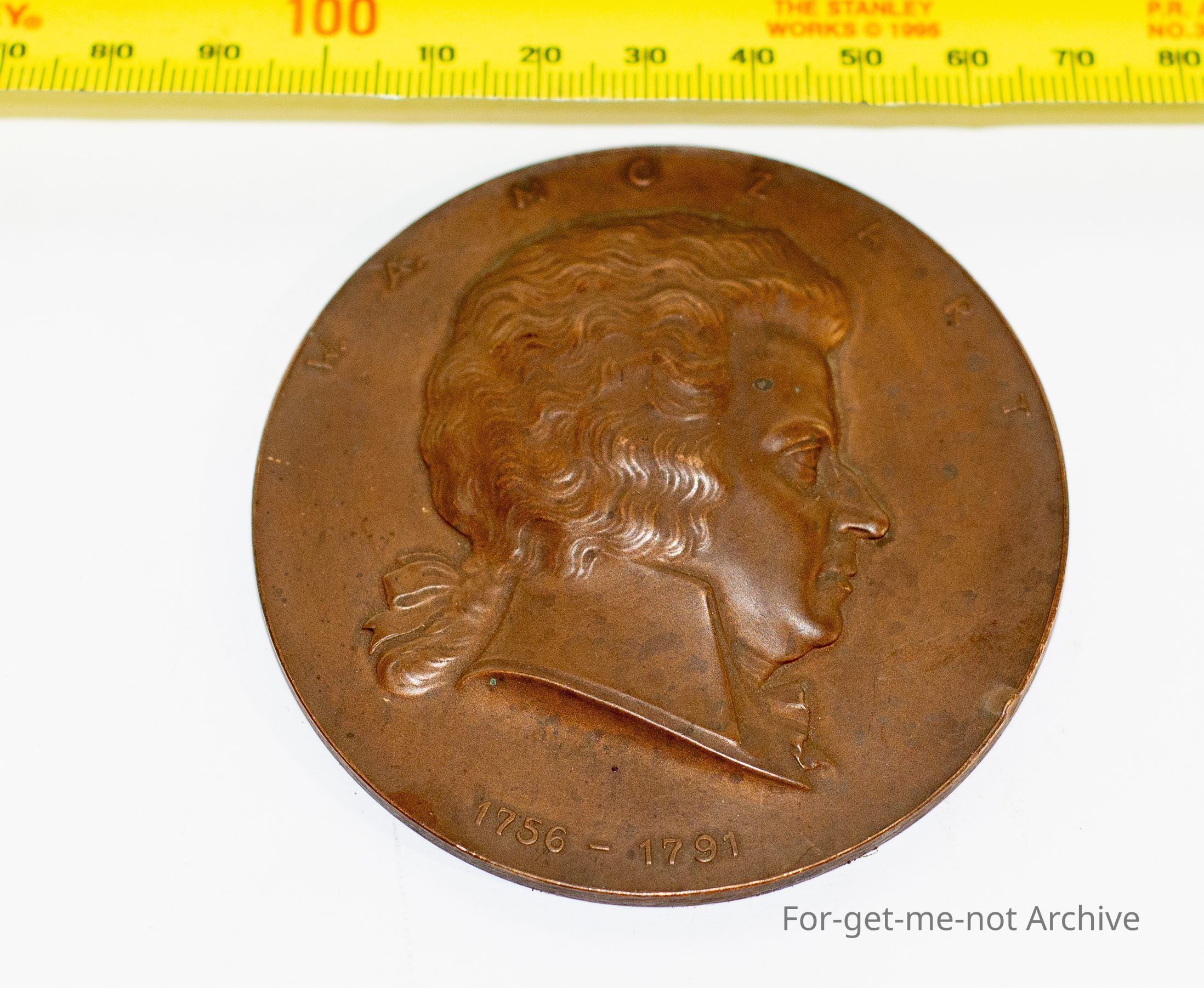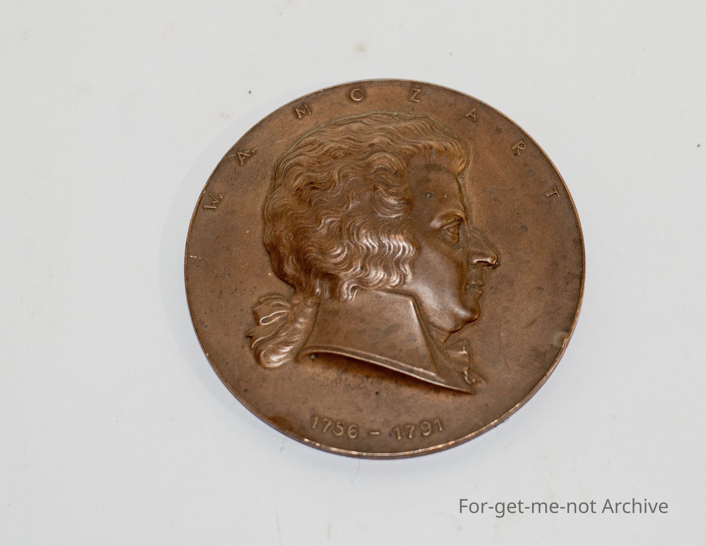 A 80mm wide medallion of Mozart head profile 1756-1791
