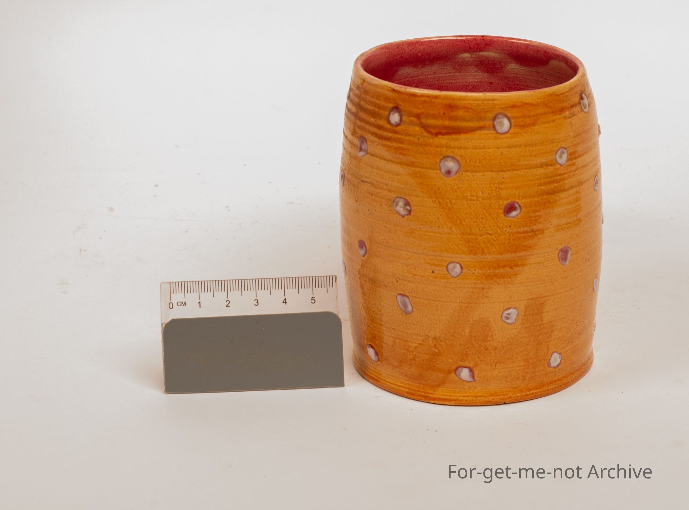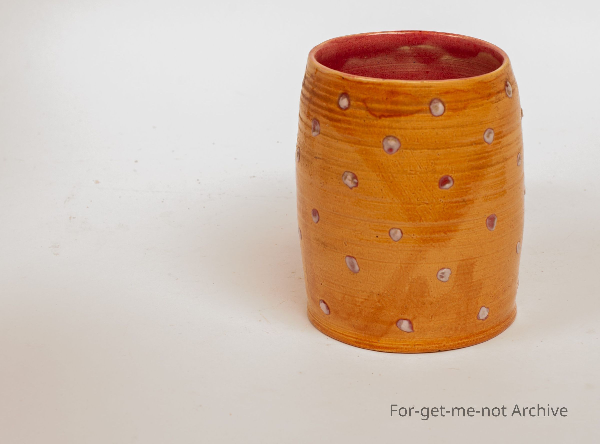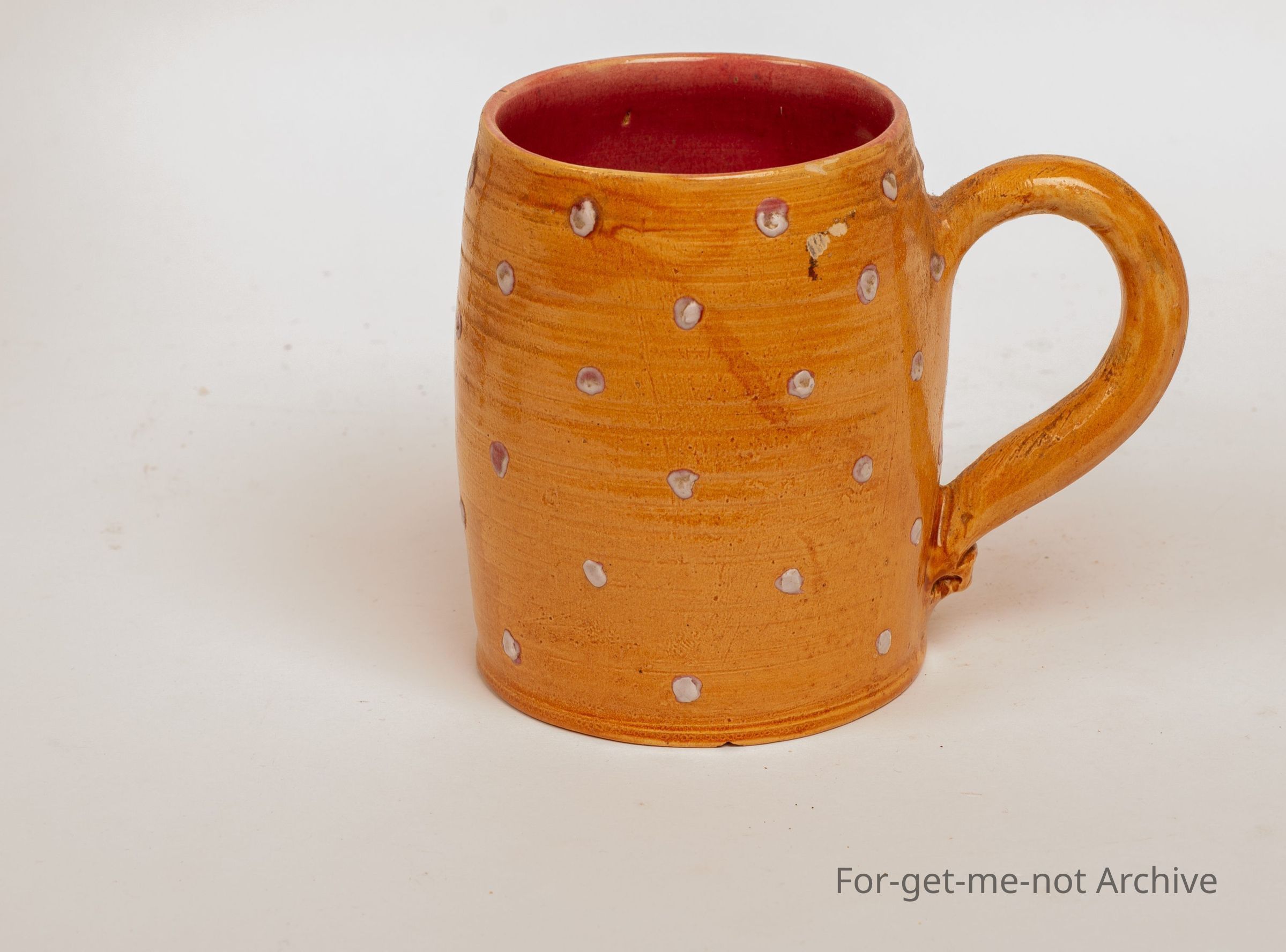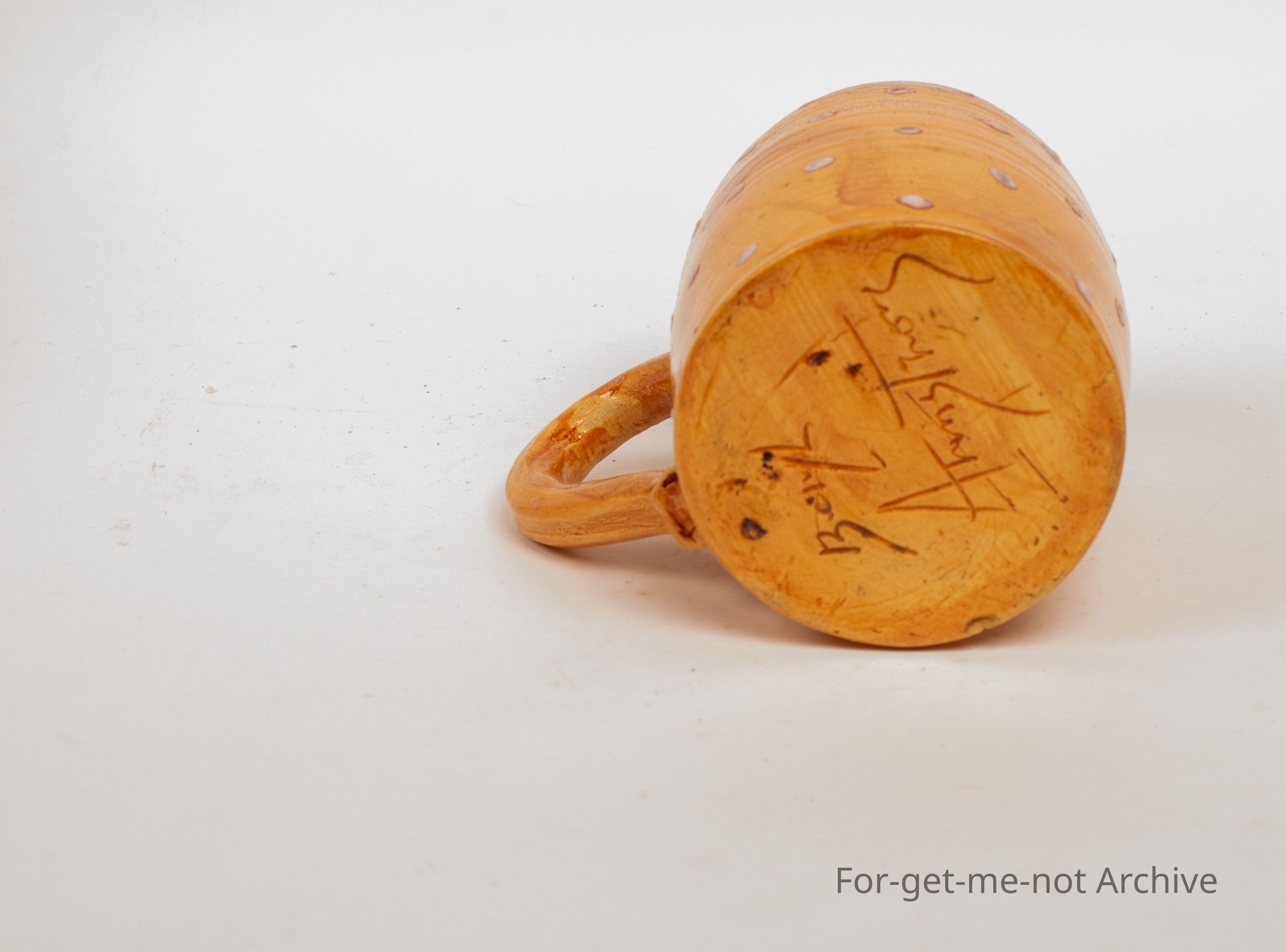 A Beryl Armstrong mug. She was staying at Harvey School, Brisbane. Had quite a long career. This is typical of a polka dot work.