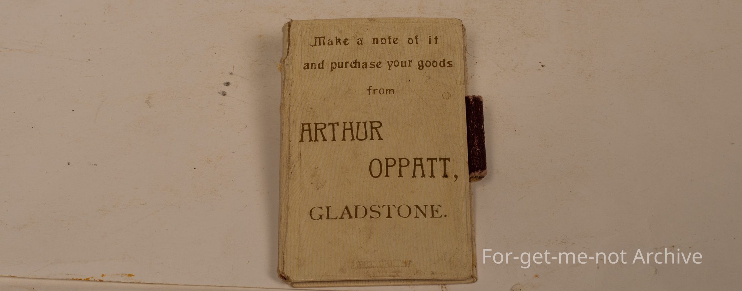 Is a small booklet, to make a note of all purchases from your from Arthur Oppatt Gladstone. Neat little booklet, probably very old, all intact,