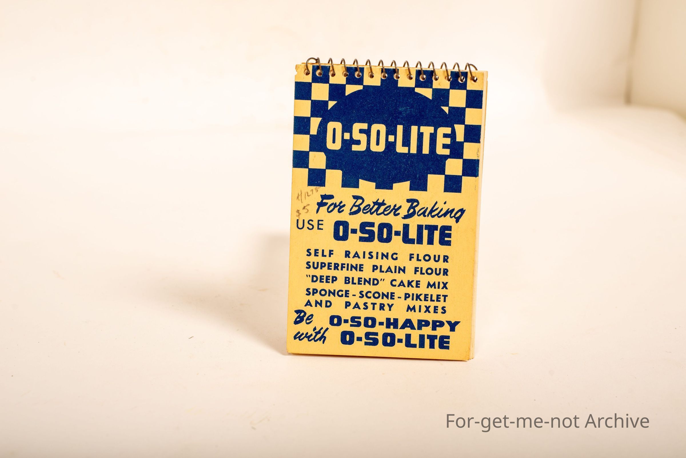 Small notepad advertising. Oh, so light. Better baking. Oh, so light. Safe phrase self raising flour. Lovely, Nick.