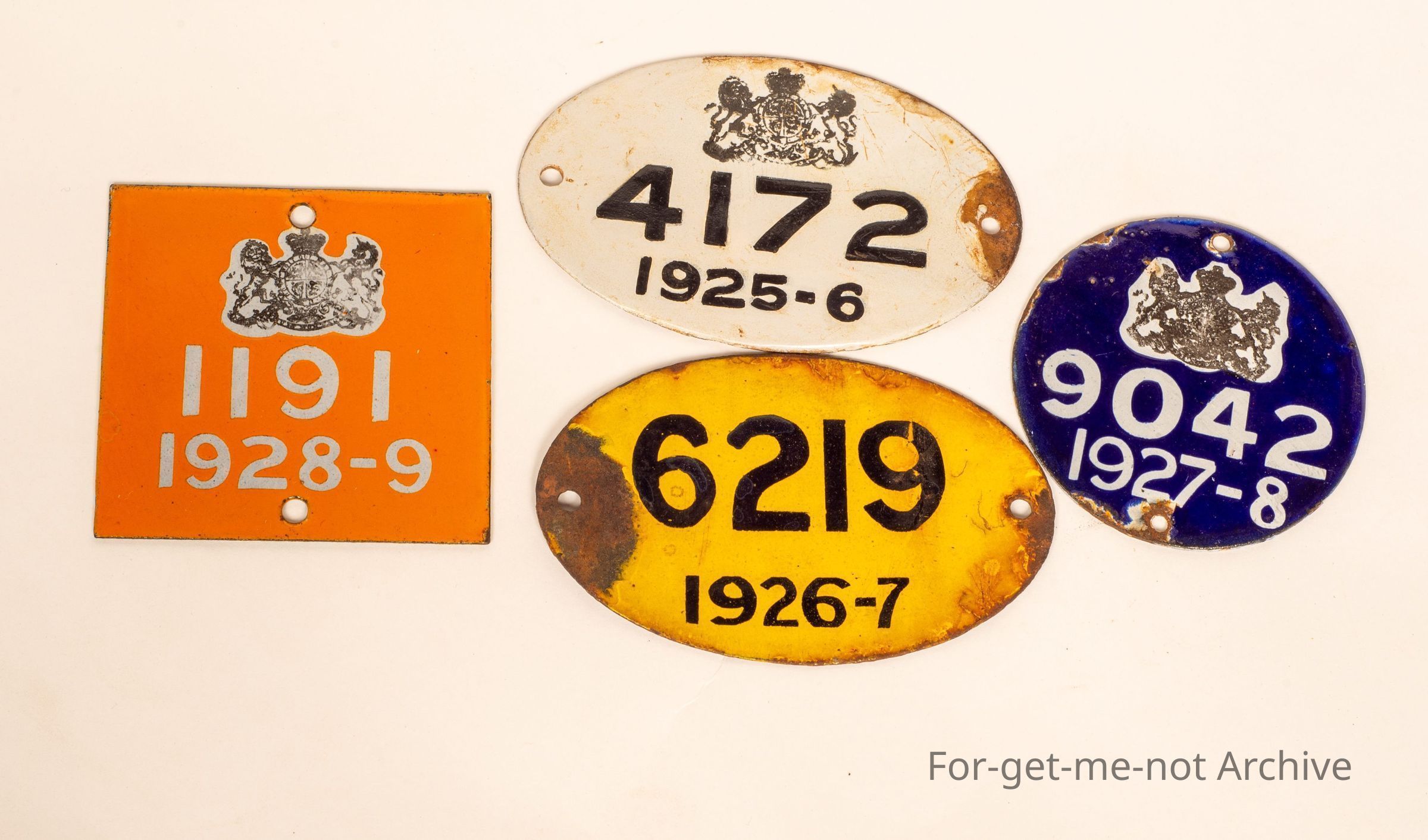 These are enamelled number plates from South Australia for horse drawn vehicles. Started off in 1921 Not certain when it finished after the second world war. This is a group of 4, 1925, 1926, 1927, 1928.Collection