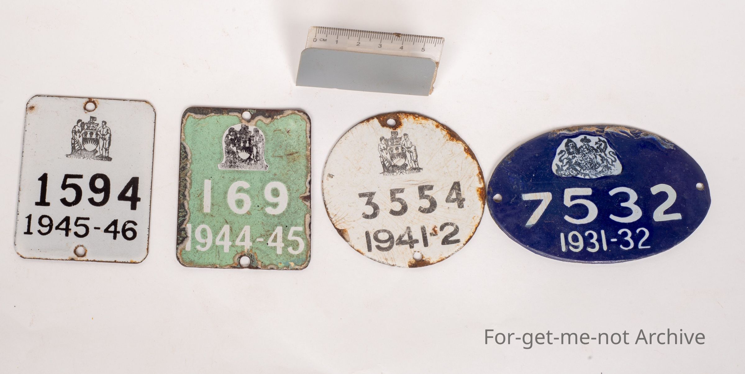 Group of 4 enamelled South Australian horse drawn vehicle number plates. The coat of arms changed to a more modern one in roughly, that's been towards 1940,