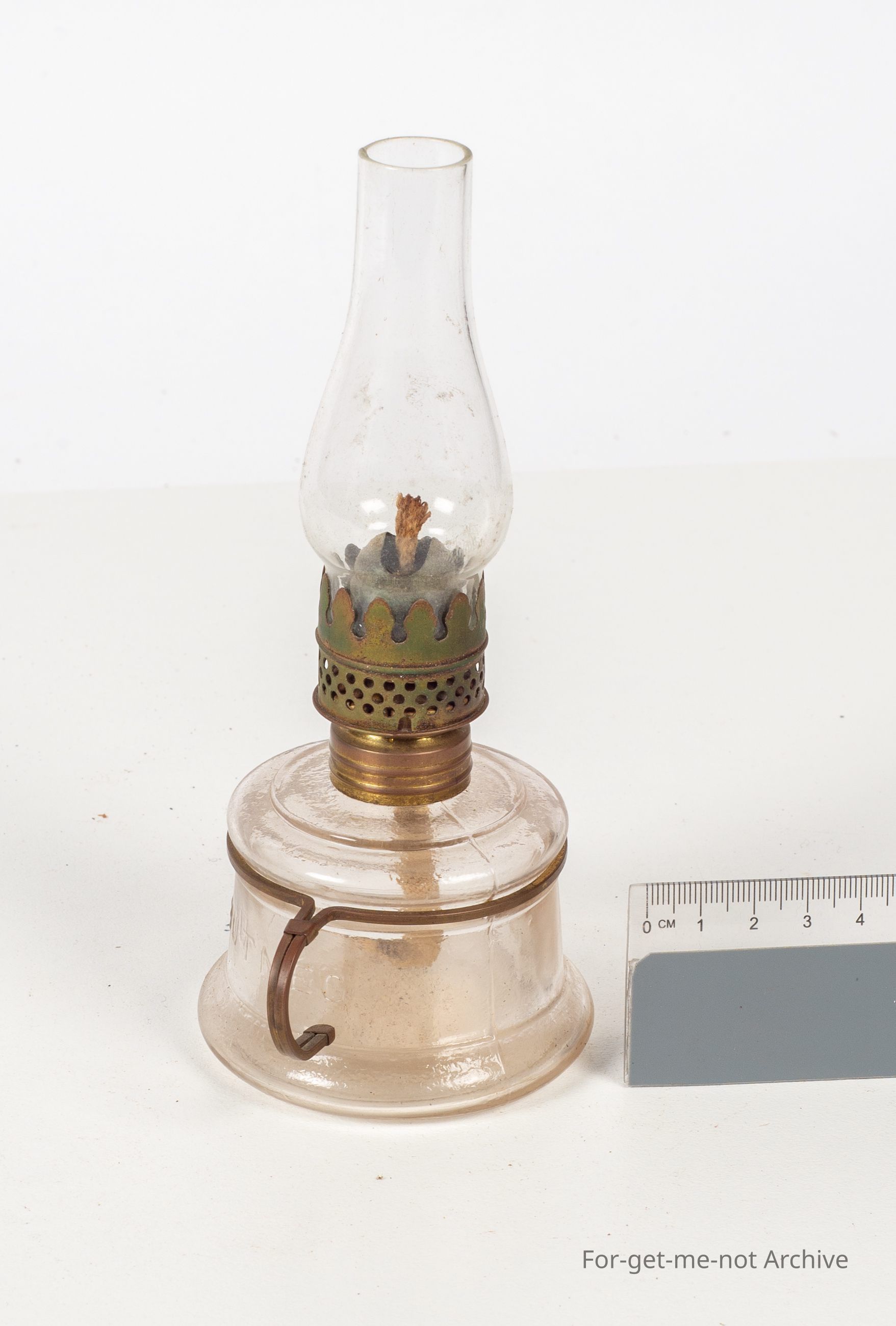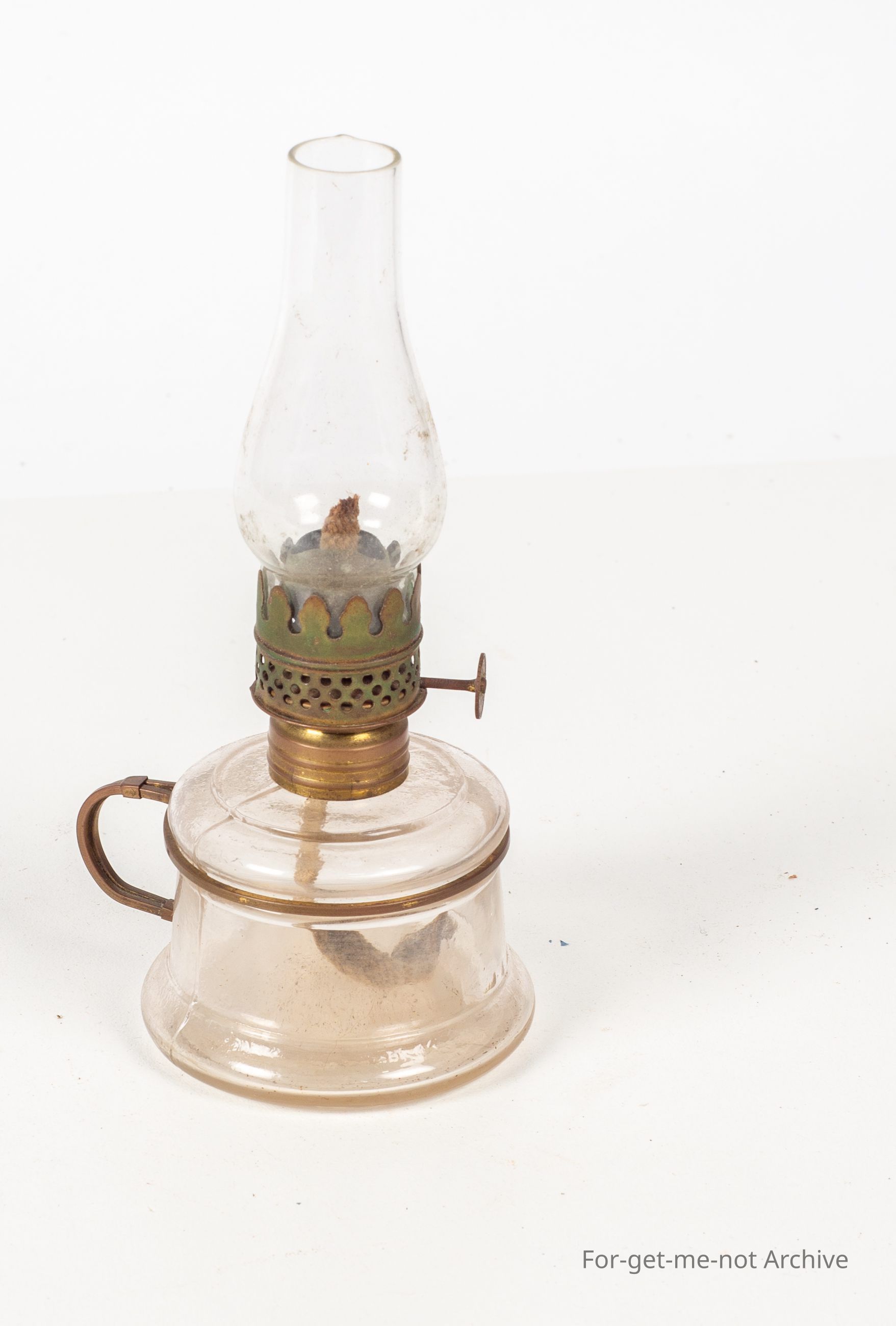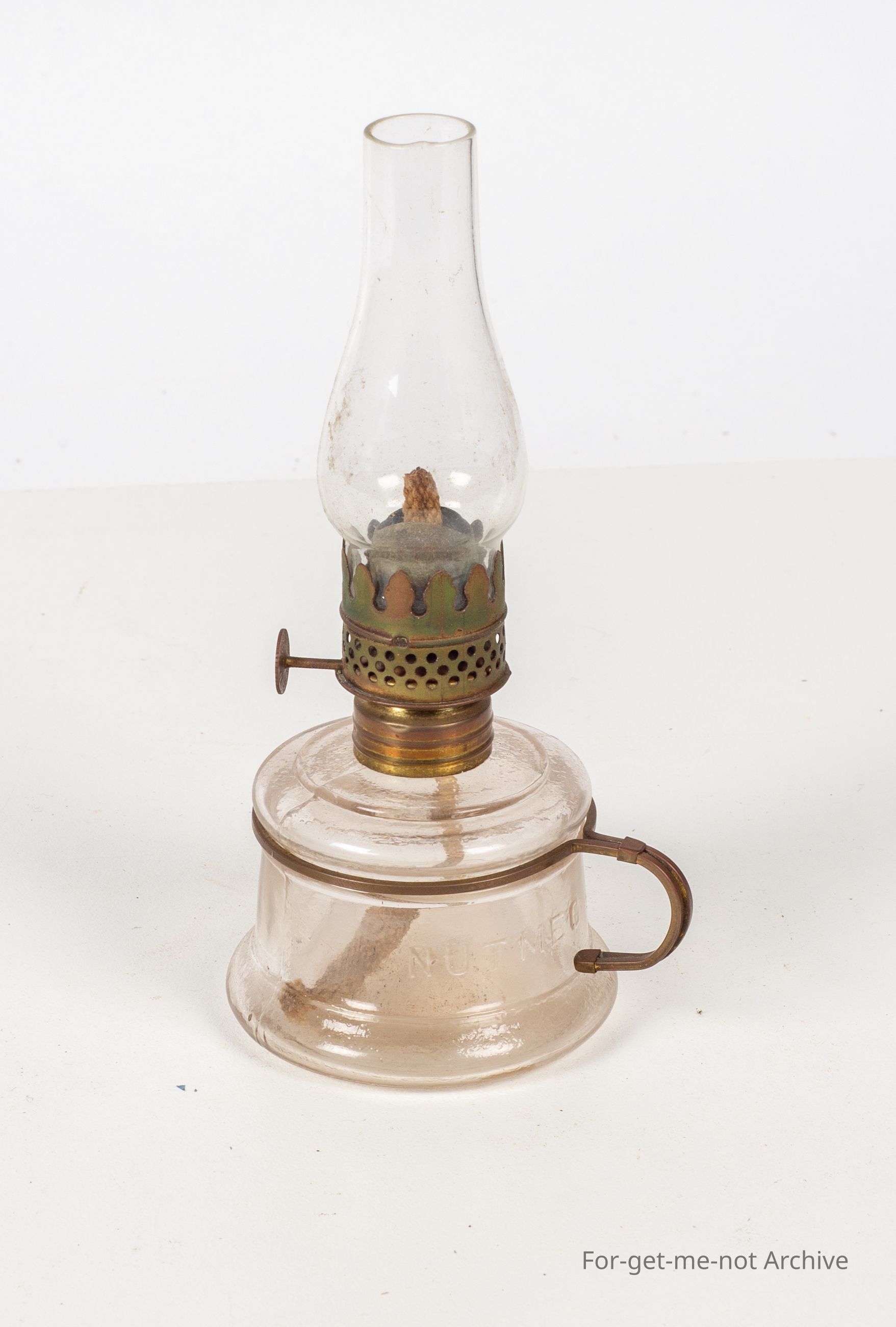 Nutmeg clear glass lamp with wire handle