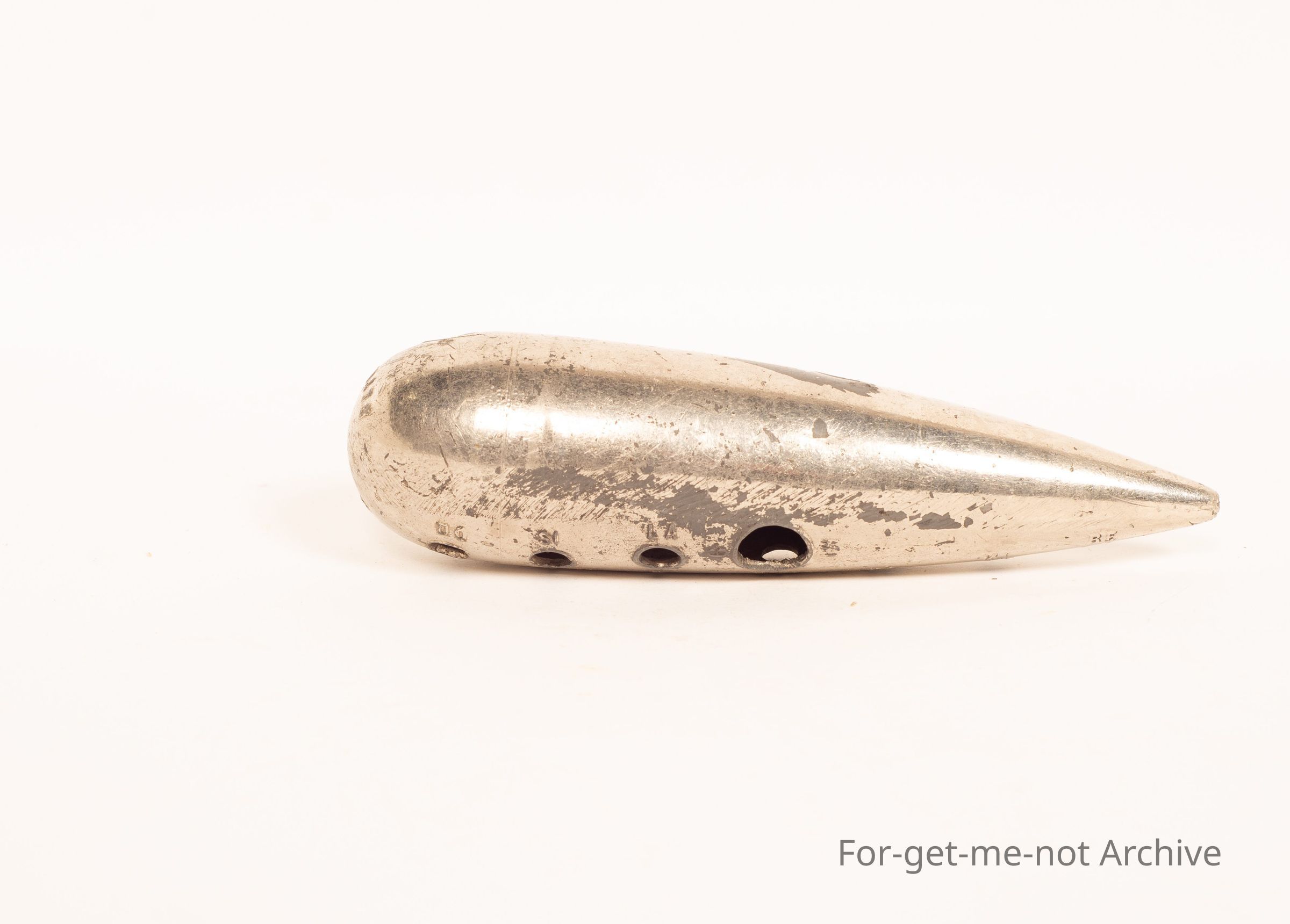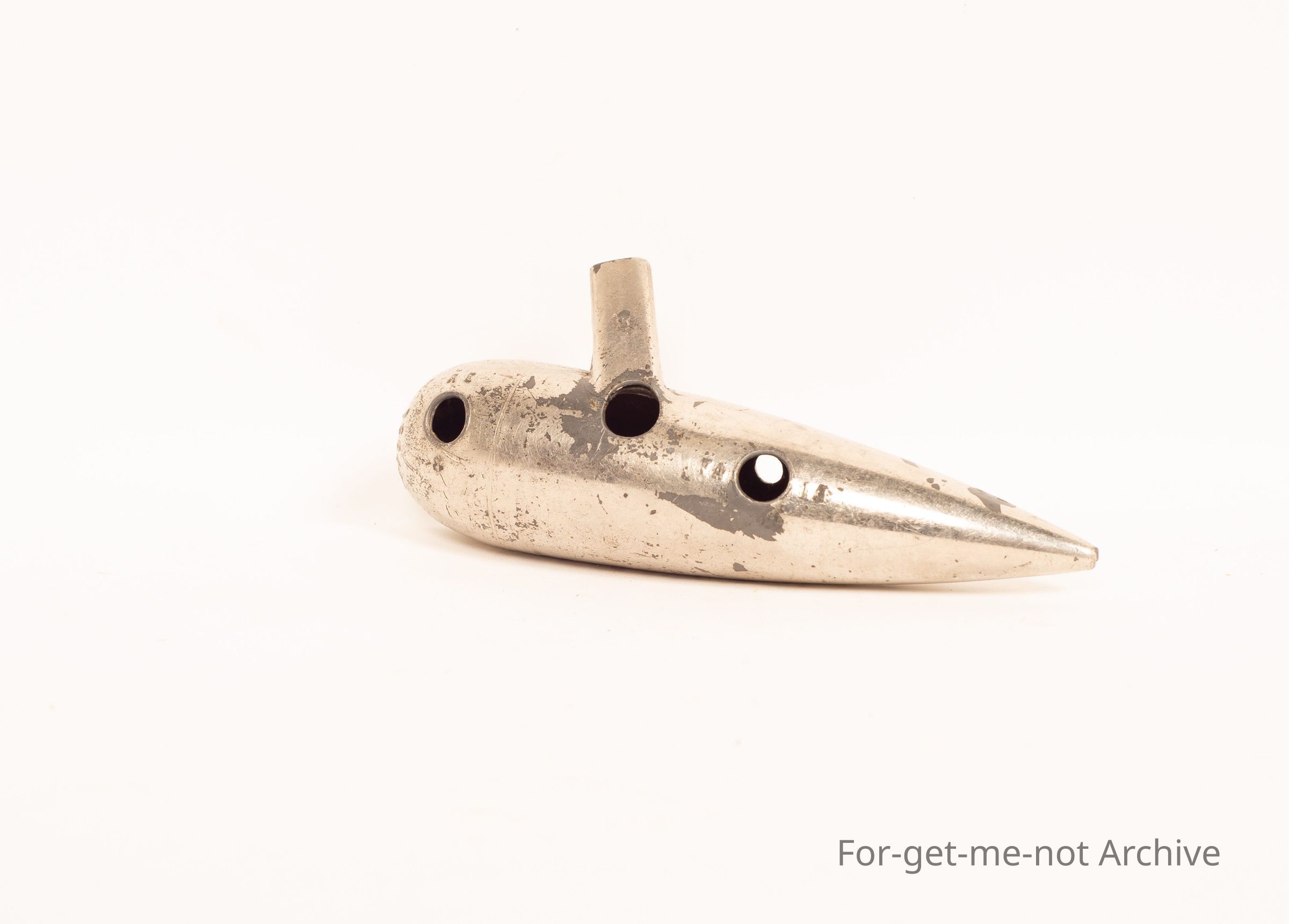 Another Ocarina, this time metalled, with the note range stamped into it. Made in Paris.