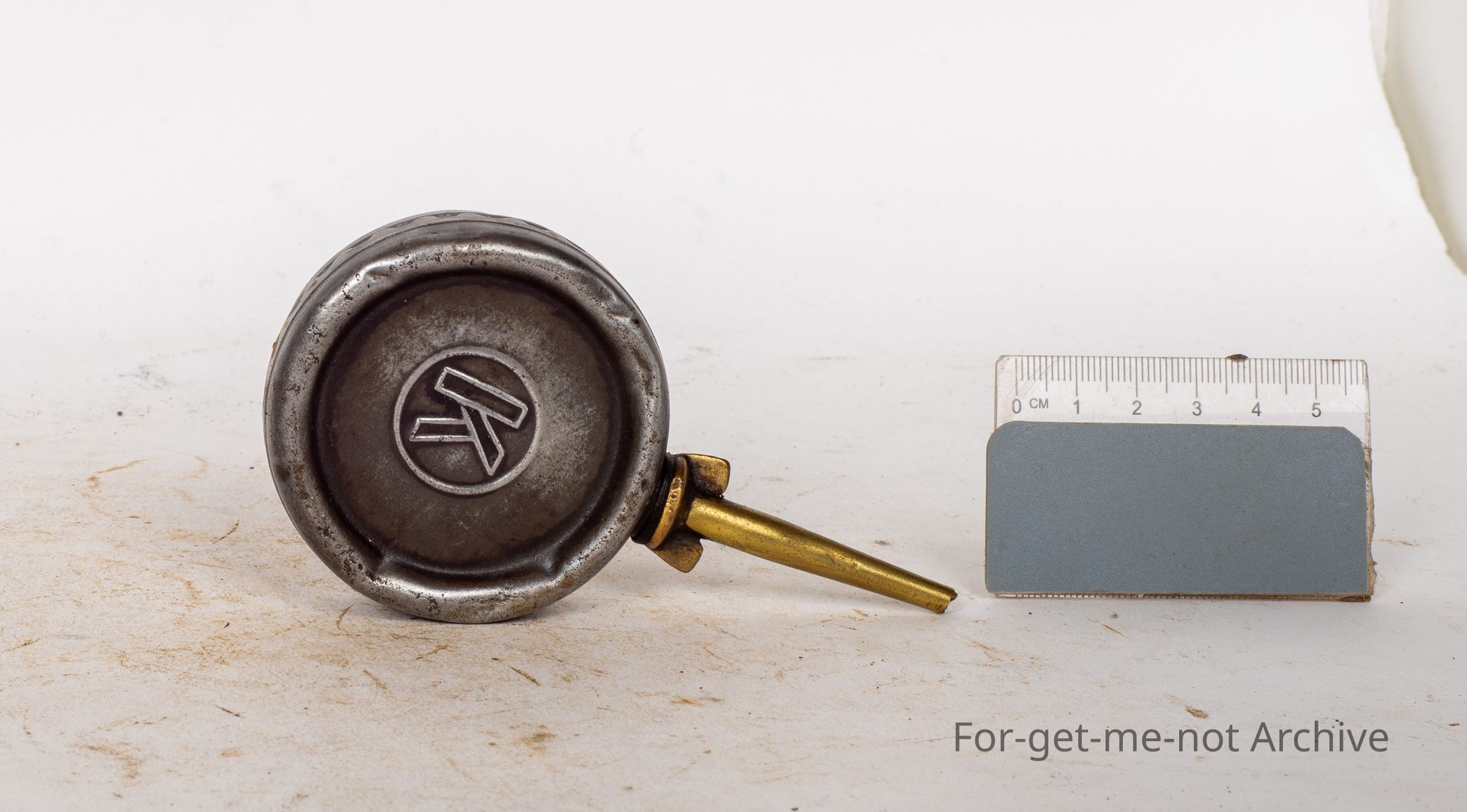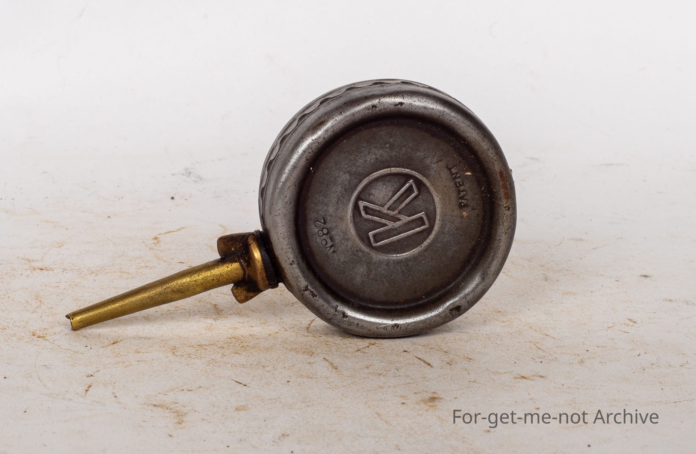 This is a delightful small size oil can from Kay's. Got the K motive on the centre of the small tank. Nice brass, pourer