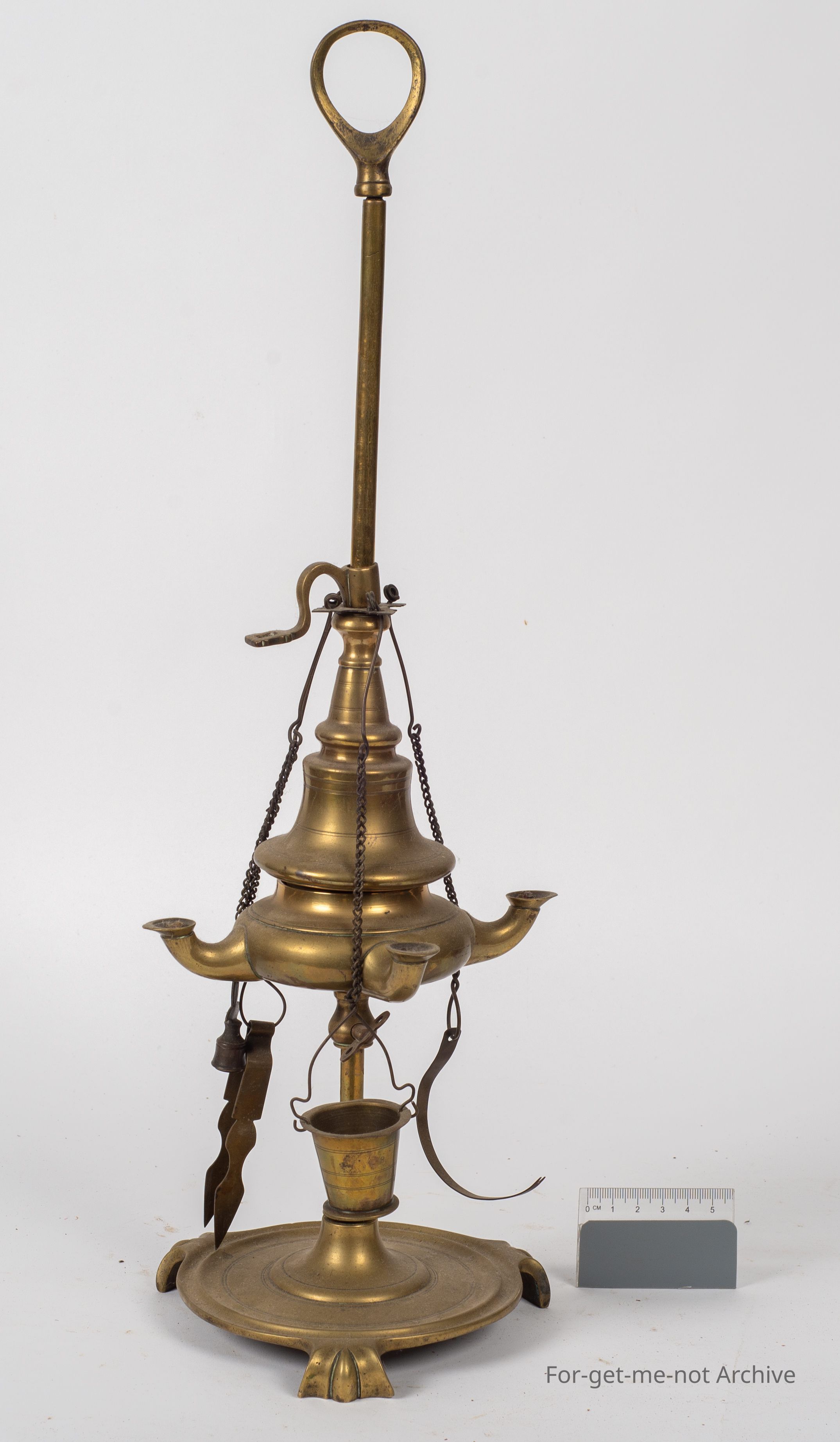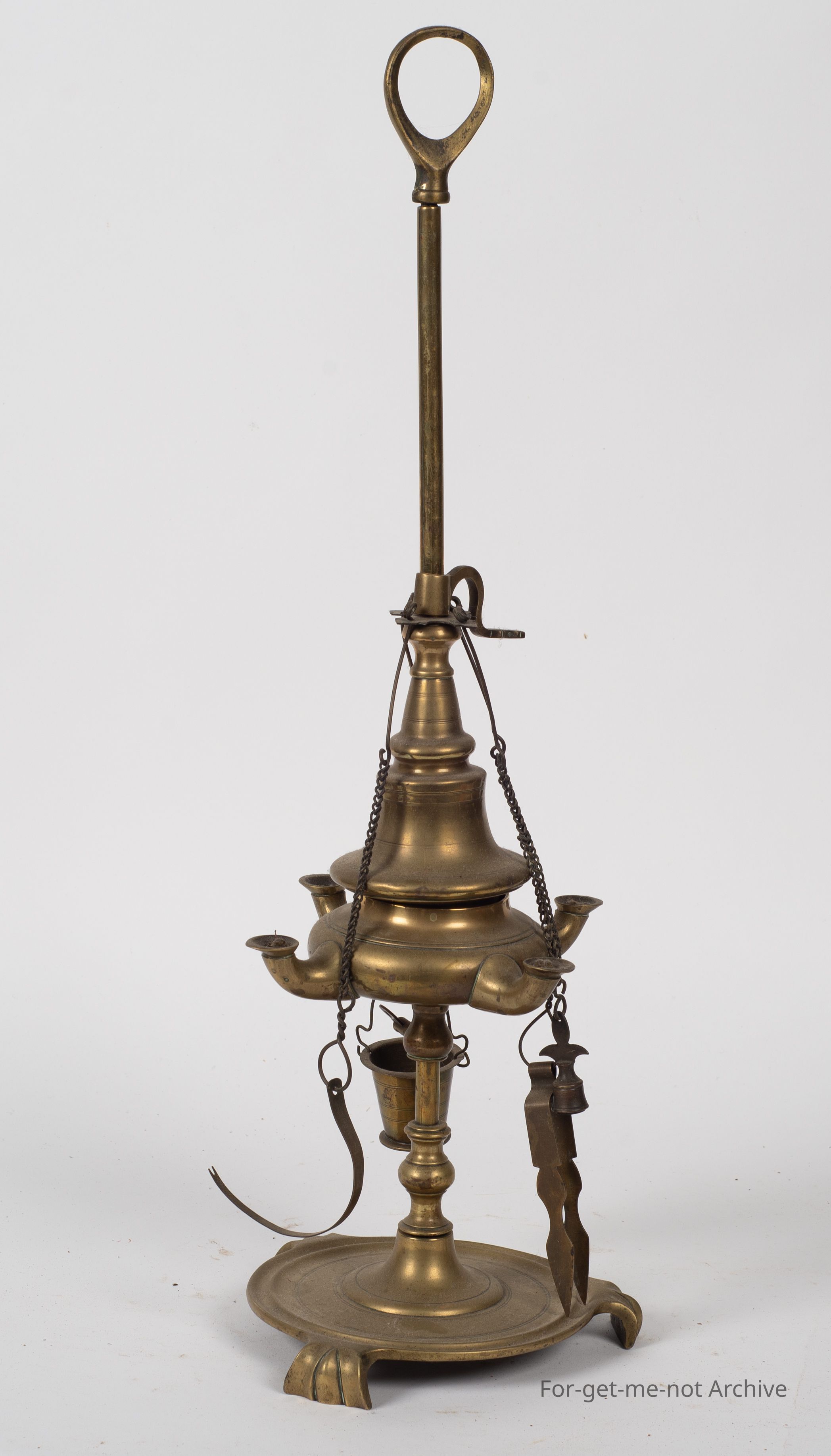 brass oriental oil lamp with numerous fittings