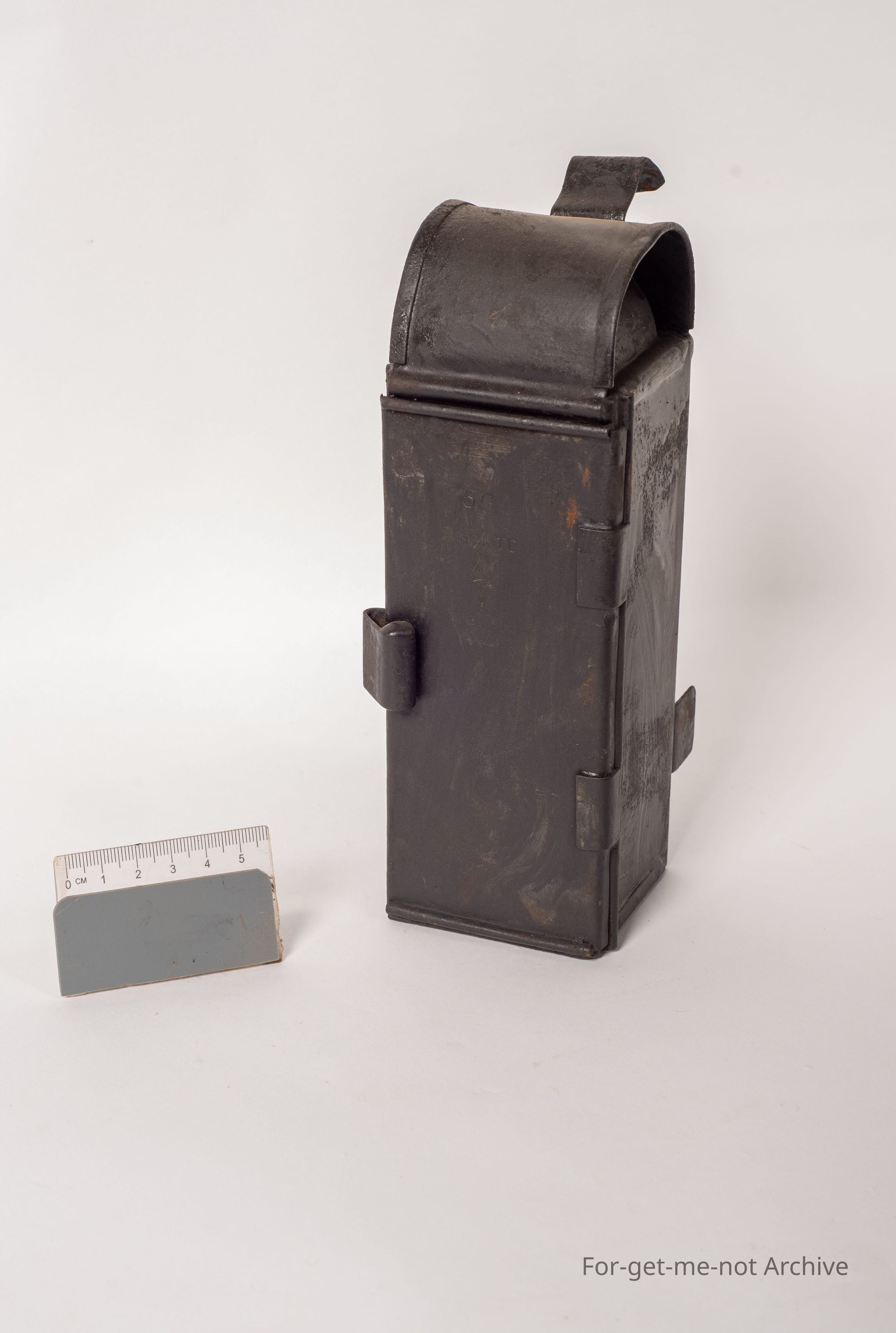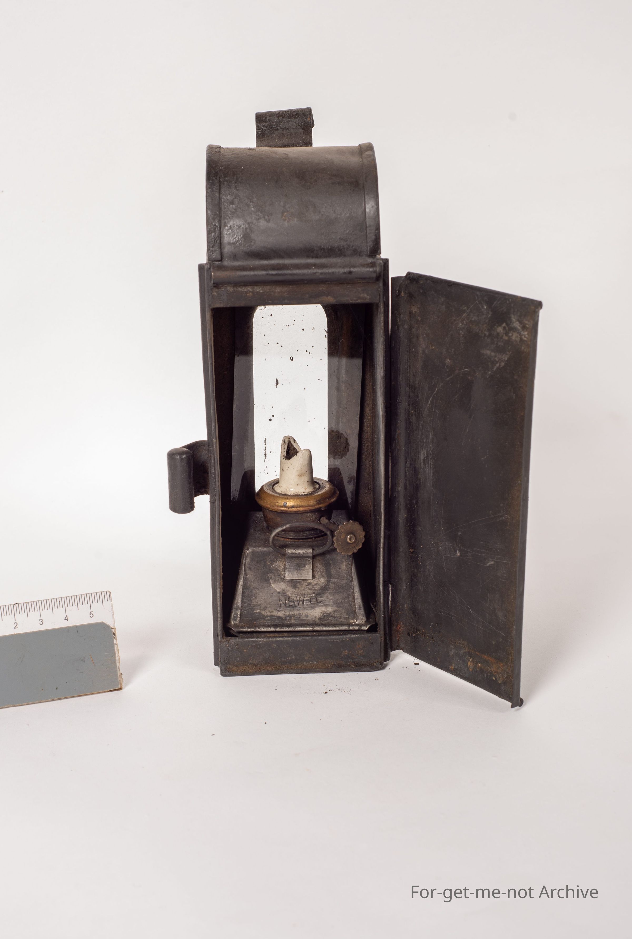 This is an unusual small lamp. Tall but thin, stamped, with number 56, New South Wales TC. I think this is something to do with early tramways. Quite an intriguing little piece. All ready to use, fuel tank, the whole lot in it.Collection
