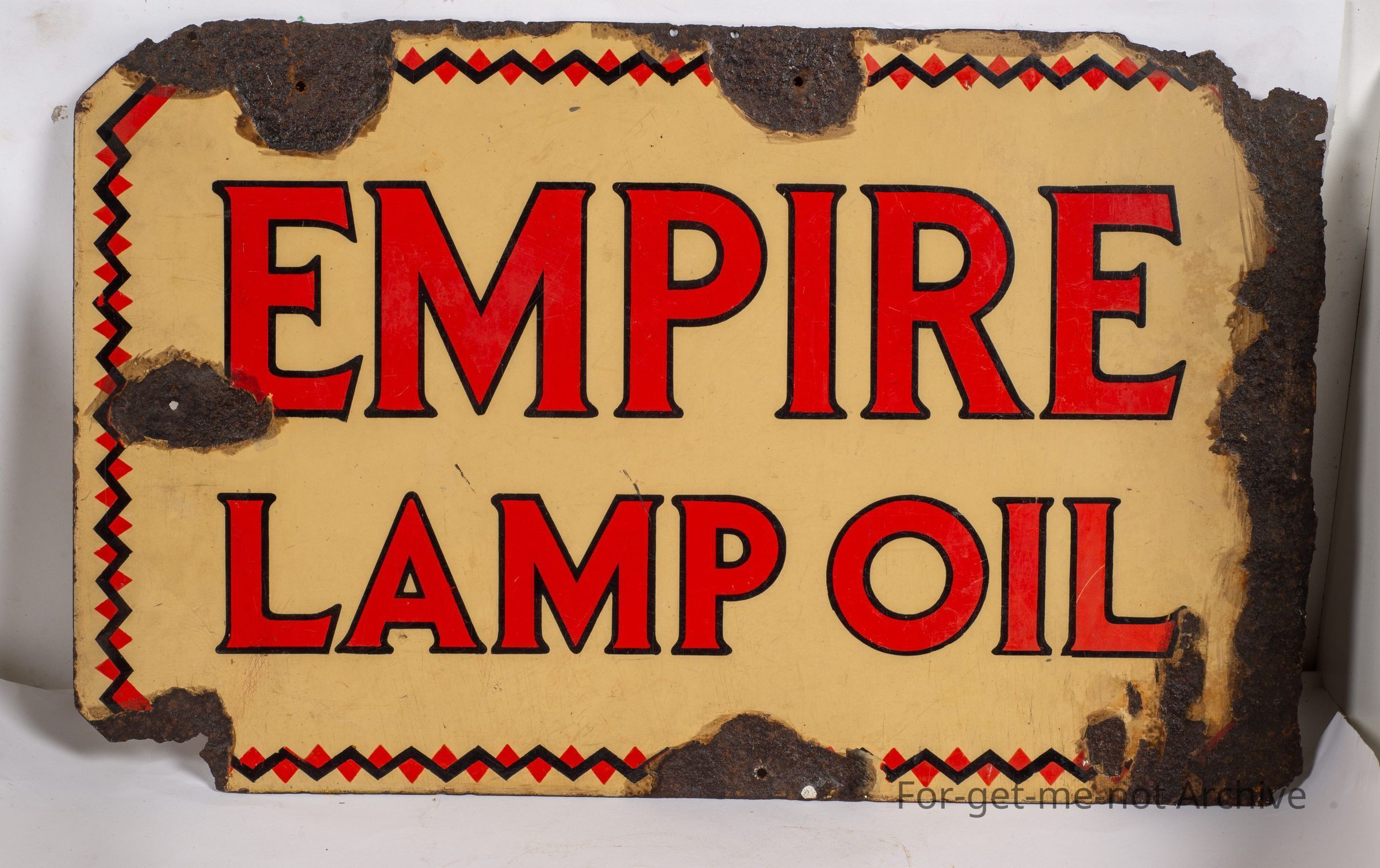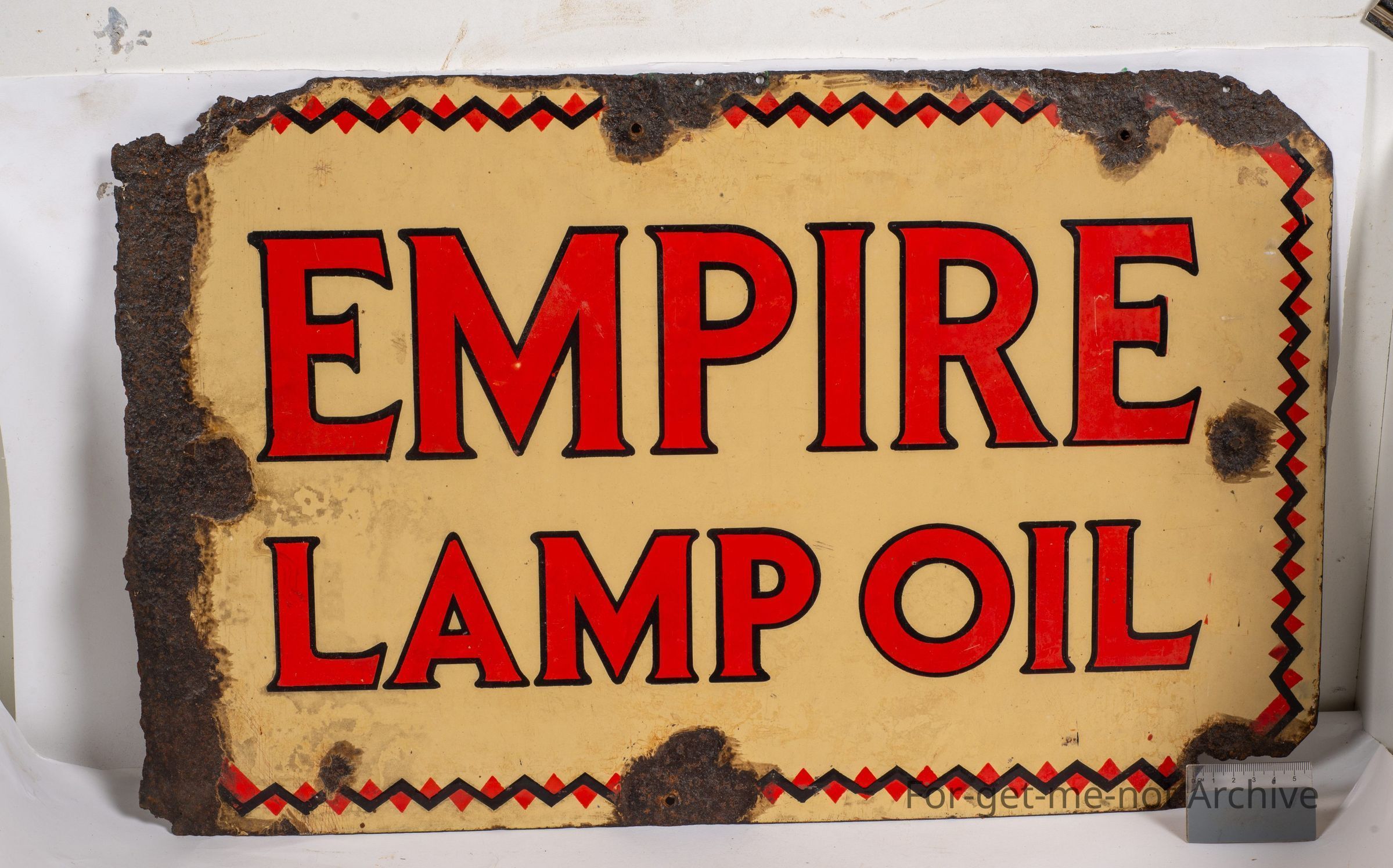 Sangeet Collection, This is Empire Lamp Oil, double sided sign. The end 90 degree bend is missing.