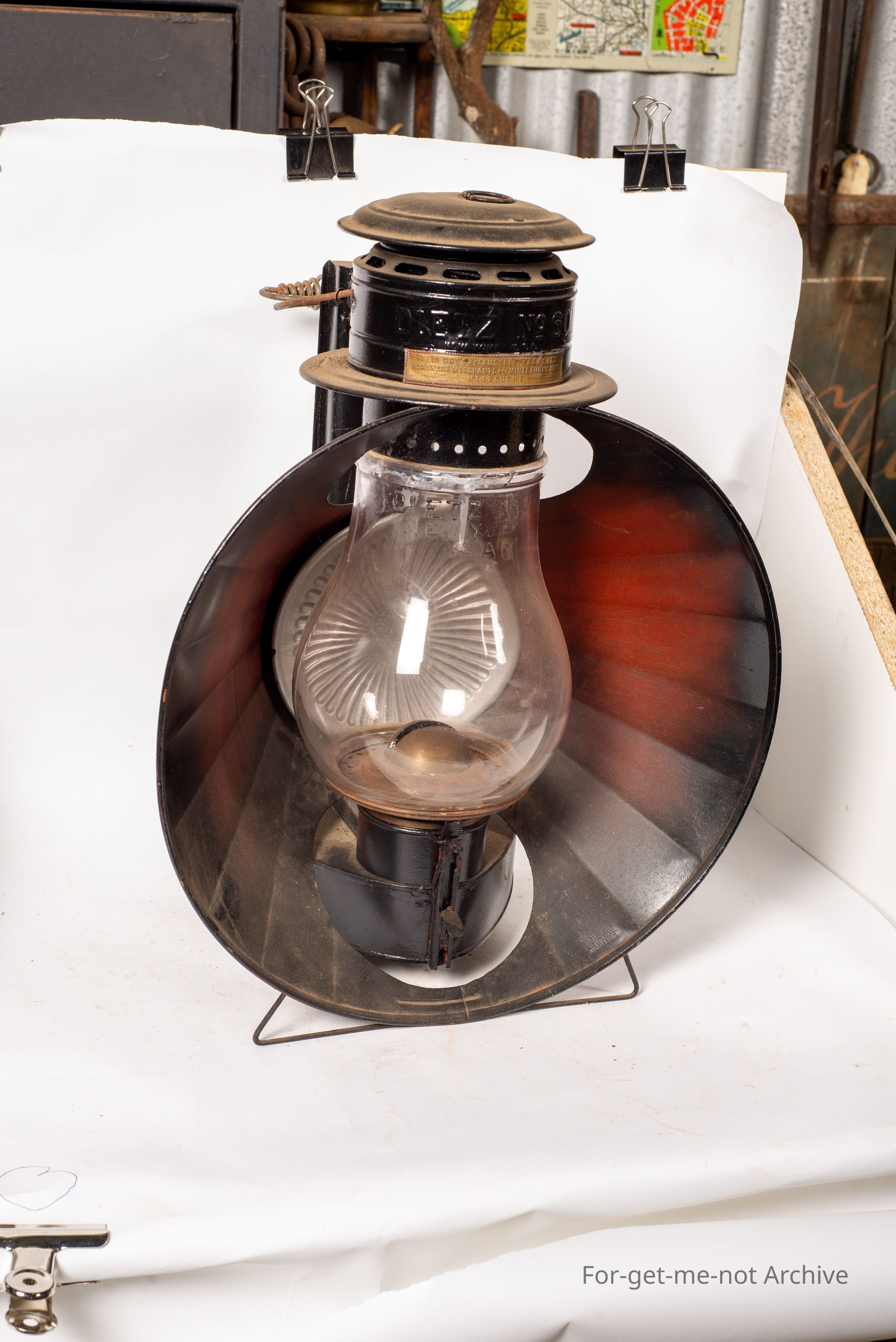 This is the large industrial, Deitz number 2 lamp. Very rare to see one of these with its original chimney. This is all in working order. A little vast plaque from the, retail outlet.
