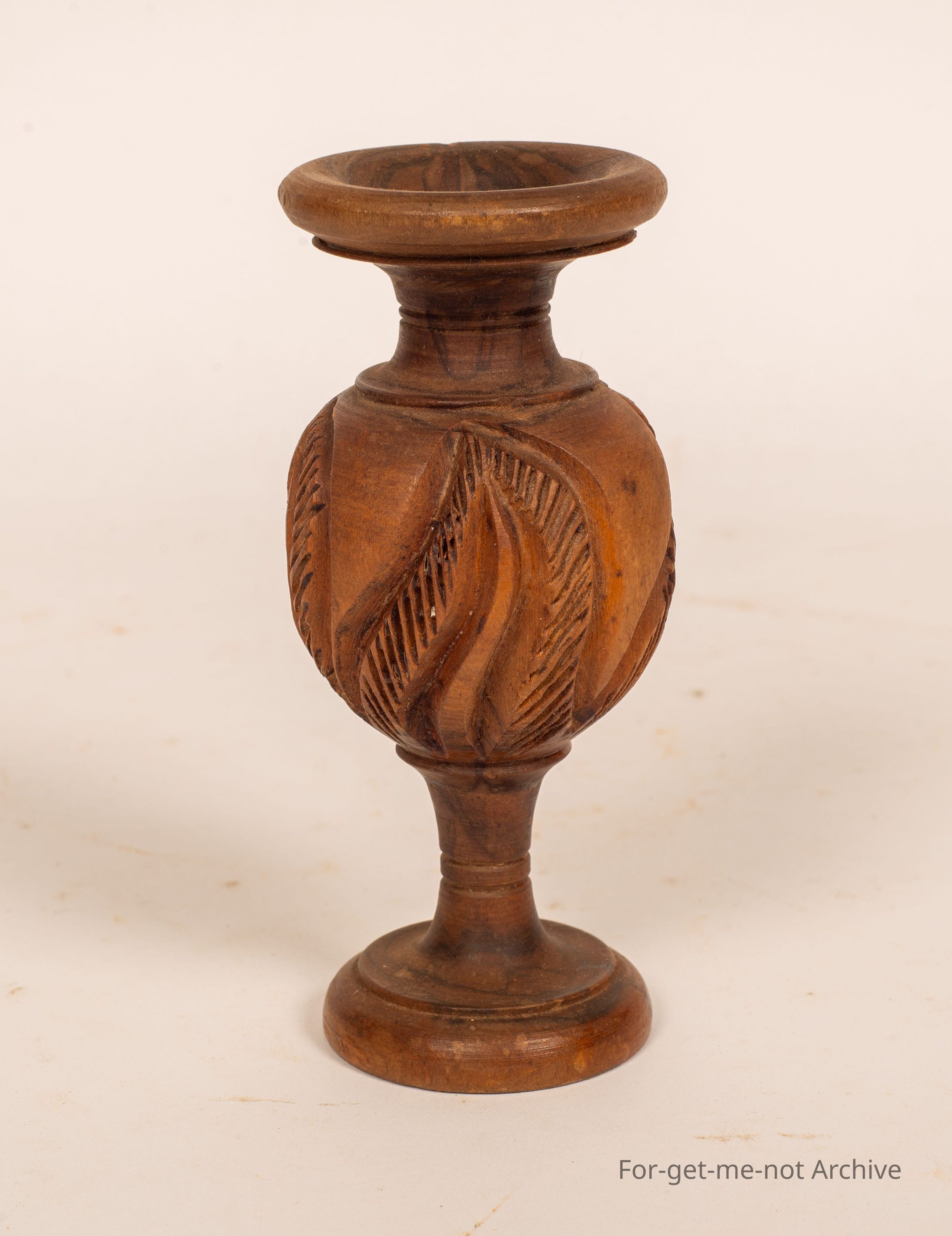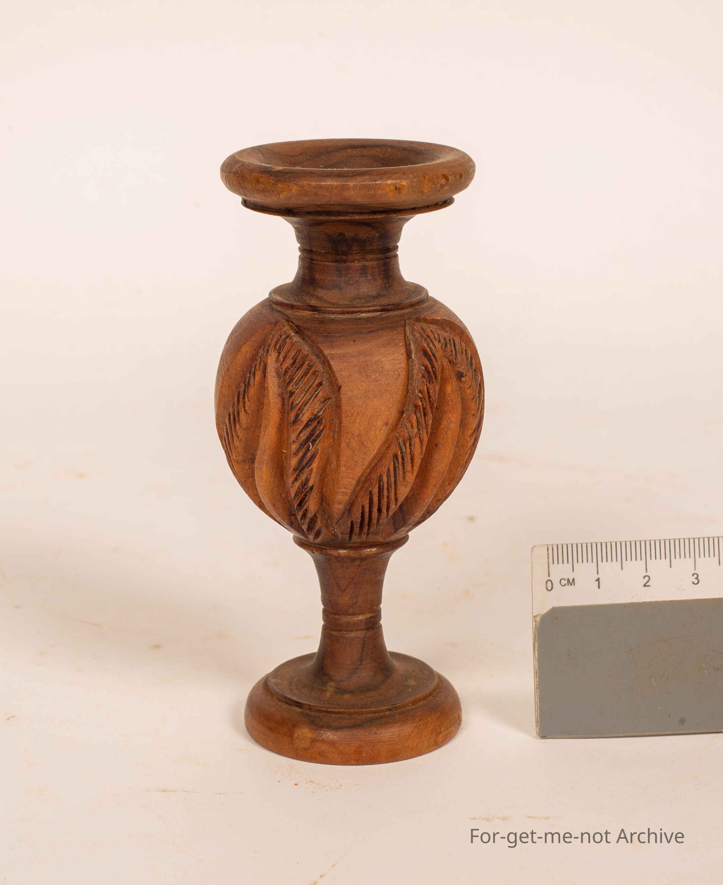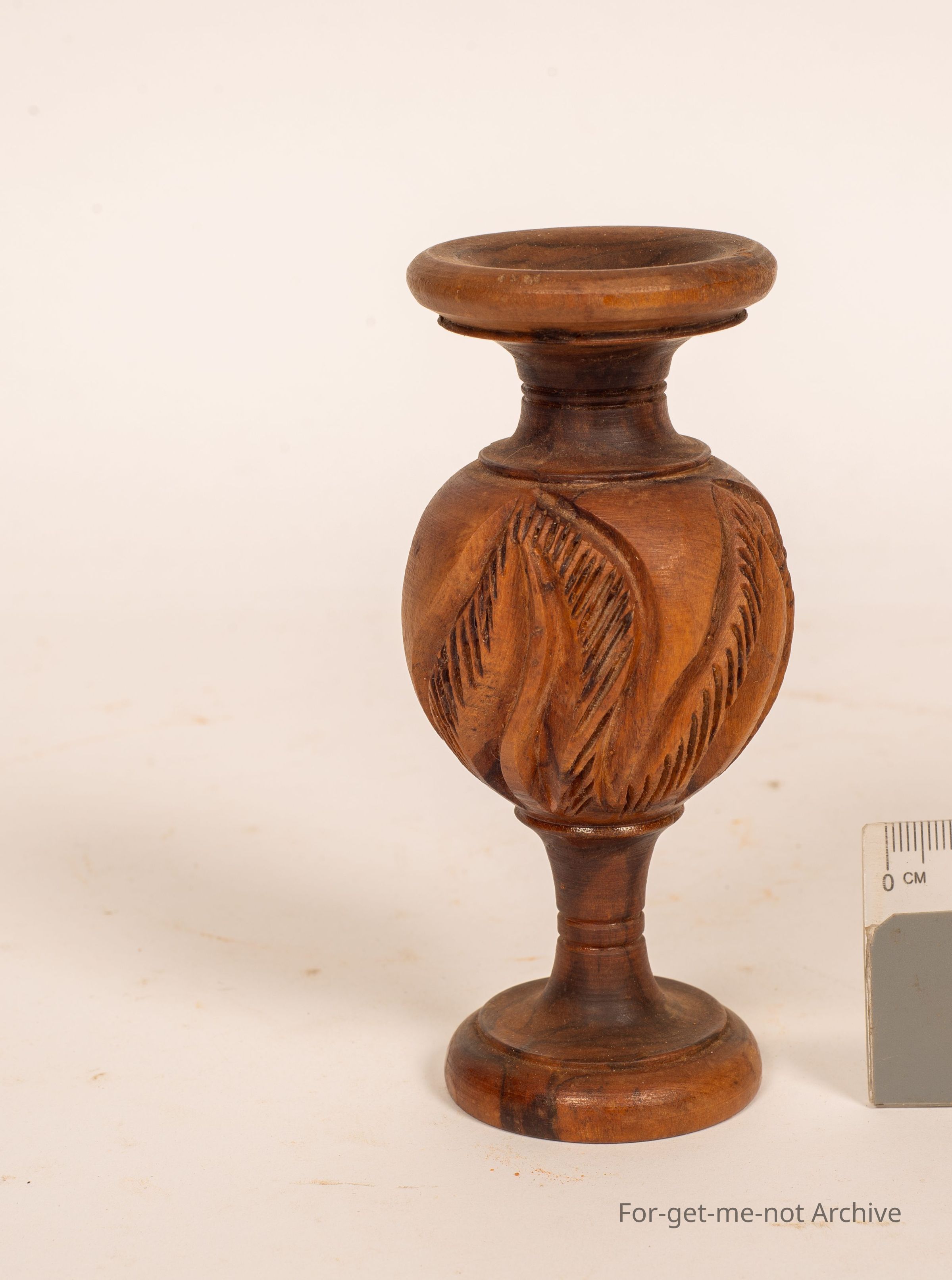 is a small wooden vase made from olive wood. Quite tastefully done with the classic motley coloured wood from olive.