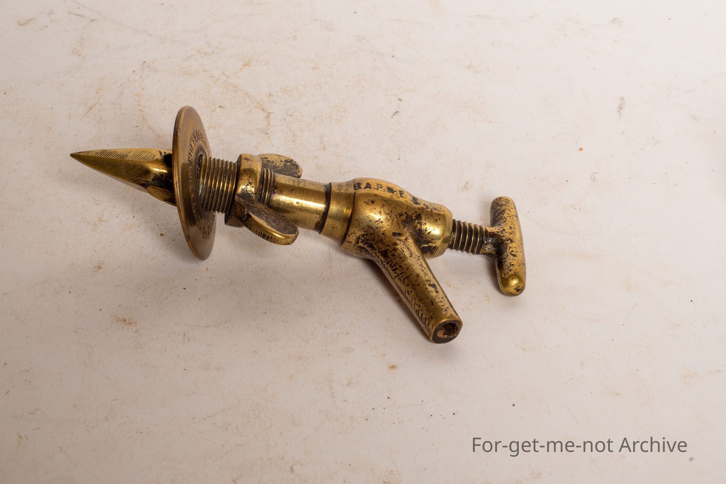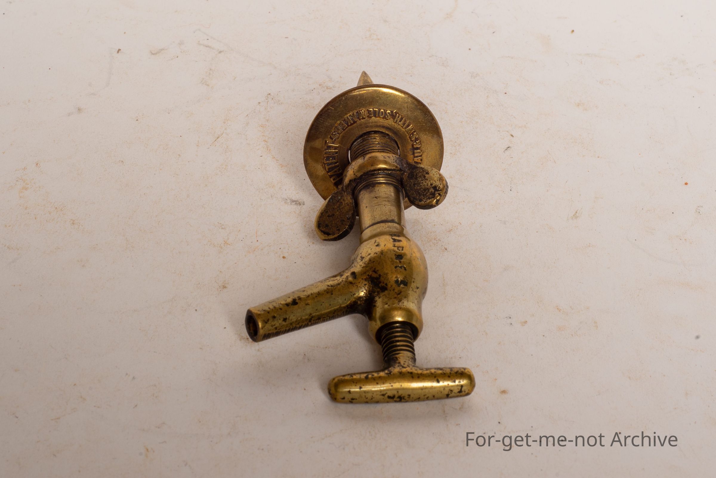 This is a beautifully ornate little, tap g. It says, Martino and Smith Soul Makers Barnes Patent. Looks very old, possibly for, an olive oil tap,