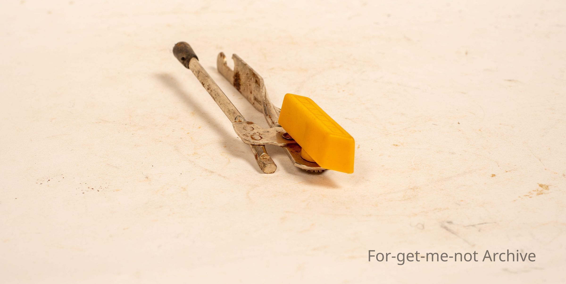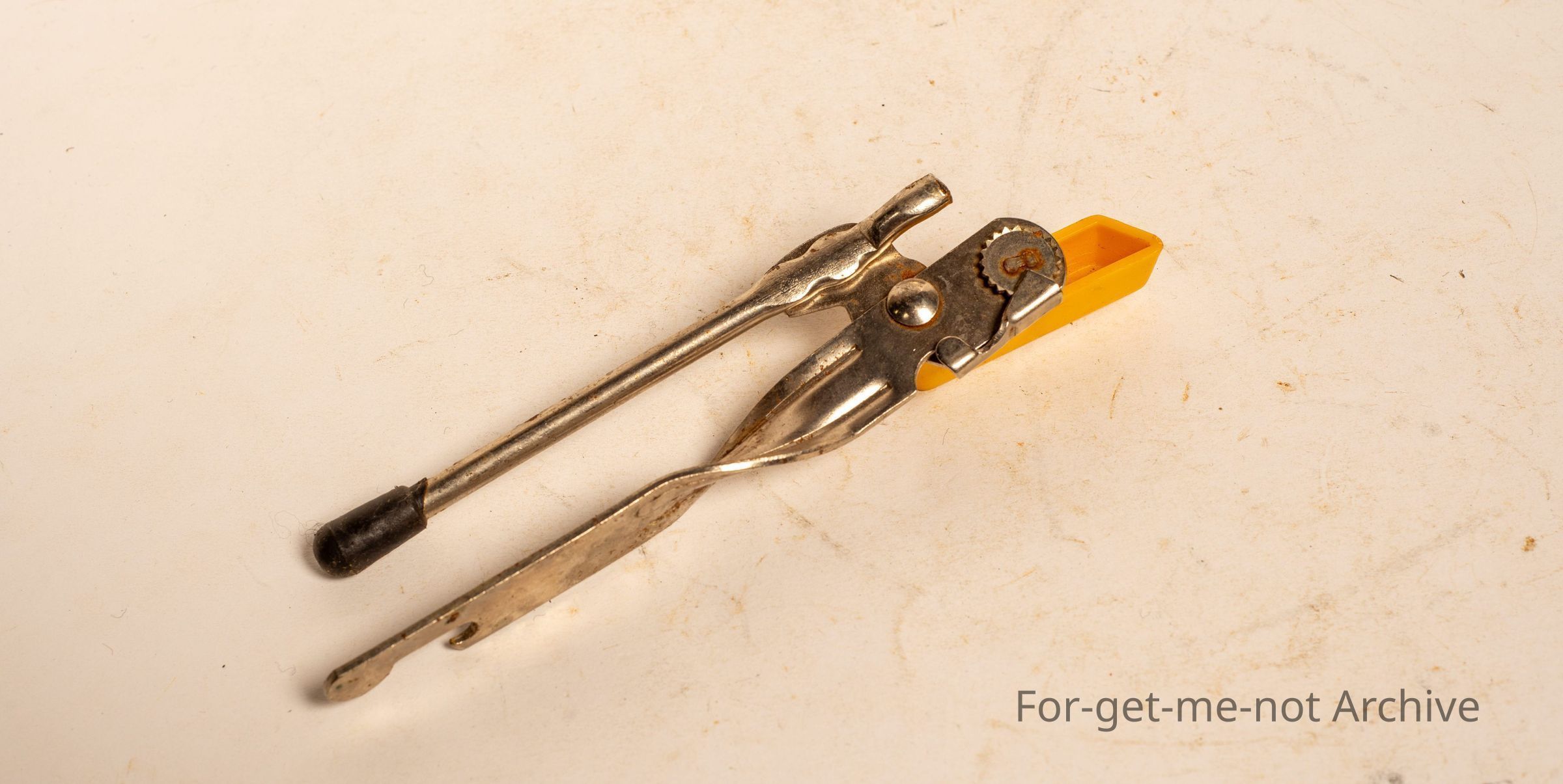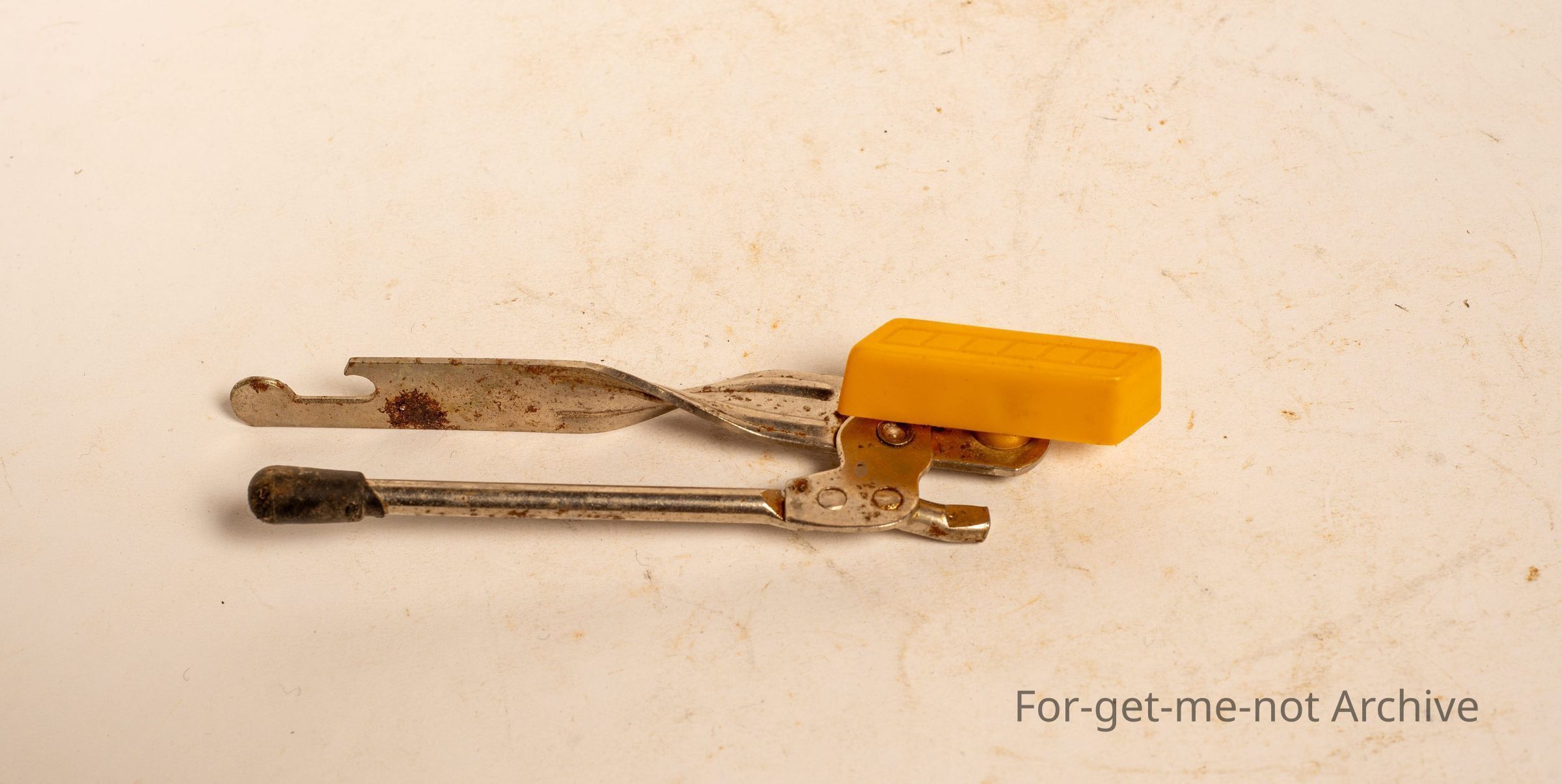 Very lightly built set of can openers, plastic churning piece, No maker's name