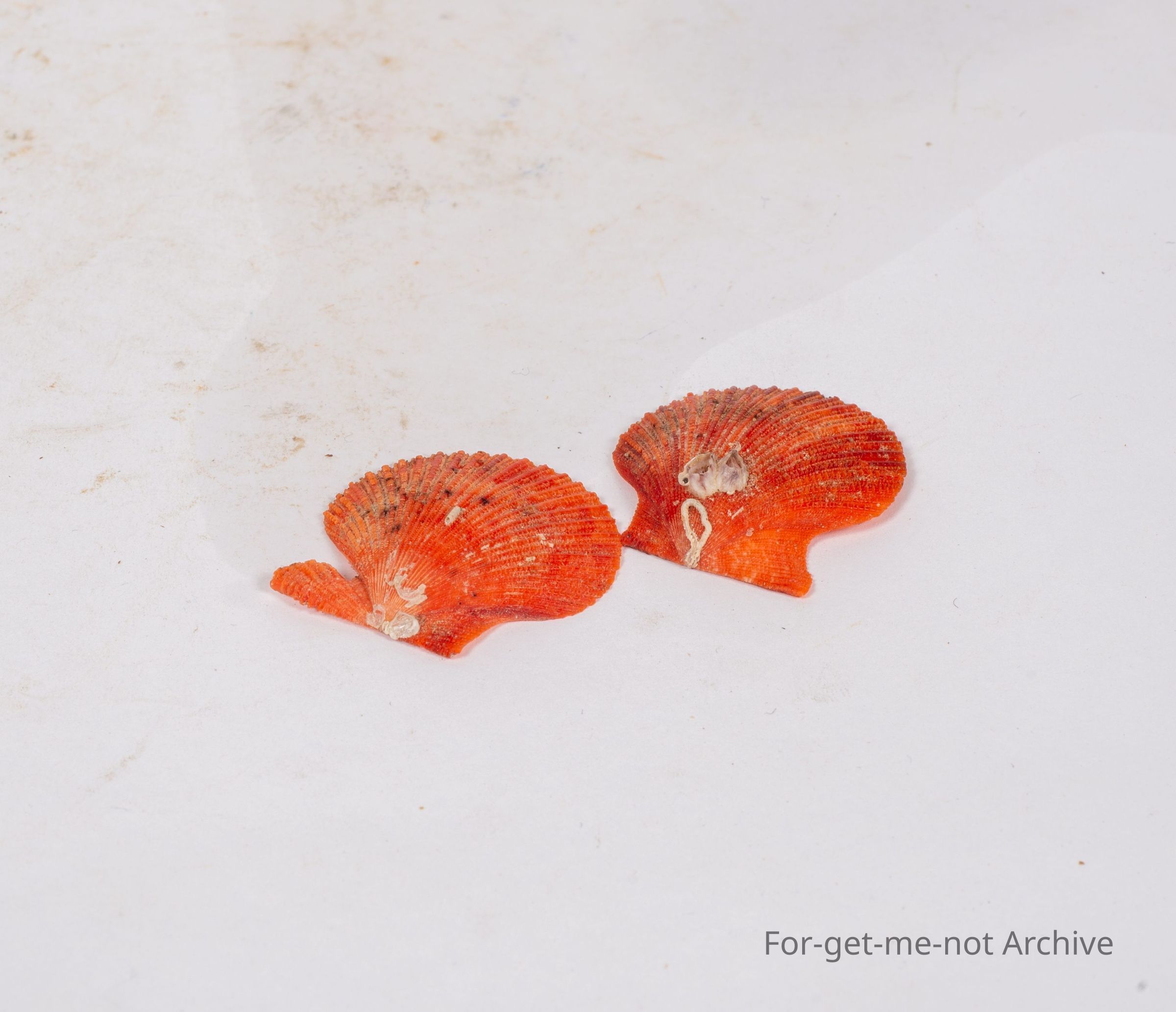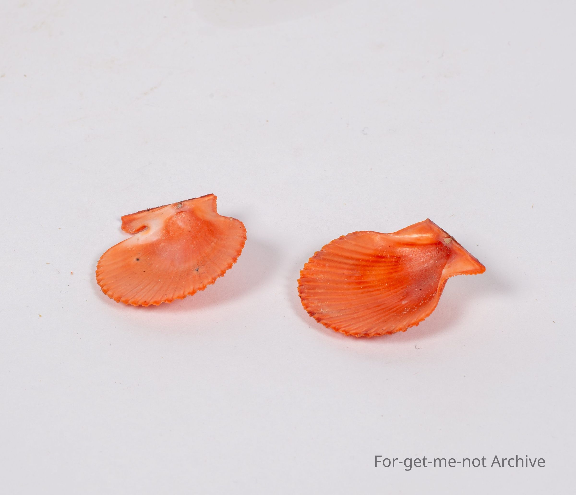 These are 2 beautiful brilliant orange shells in the shape of scallop shells. I picked these up on the beach somewhere in Queensland quite a few years ago. They're still nice little objects.Collection