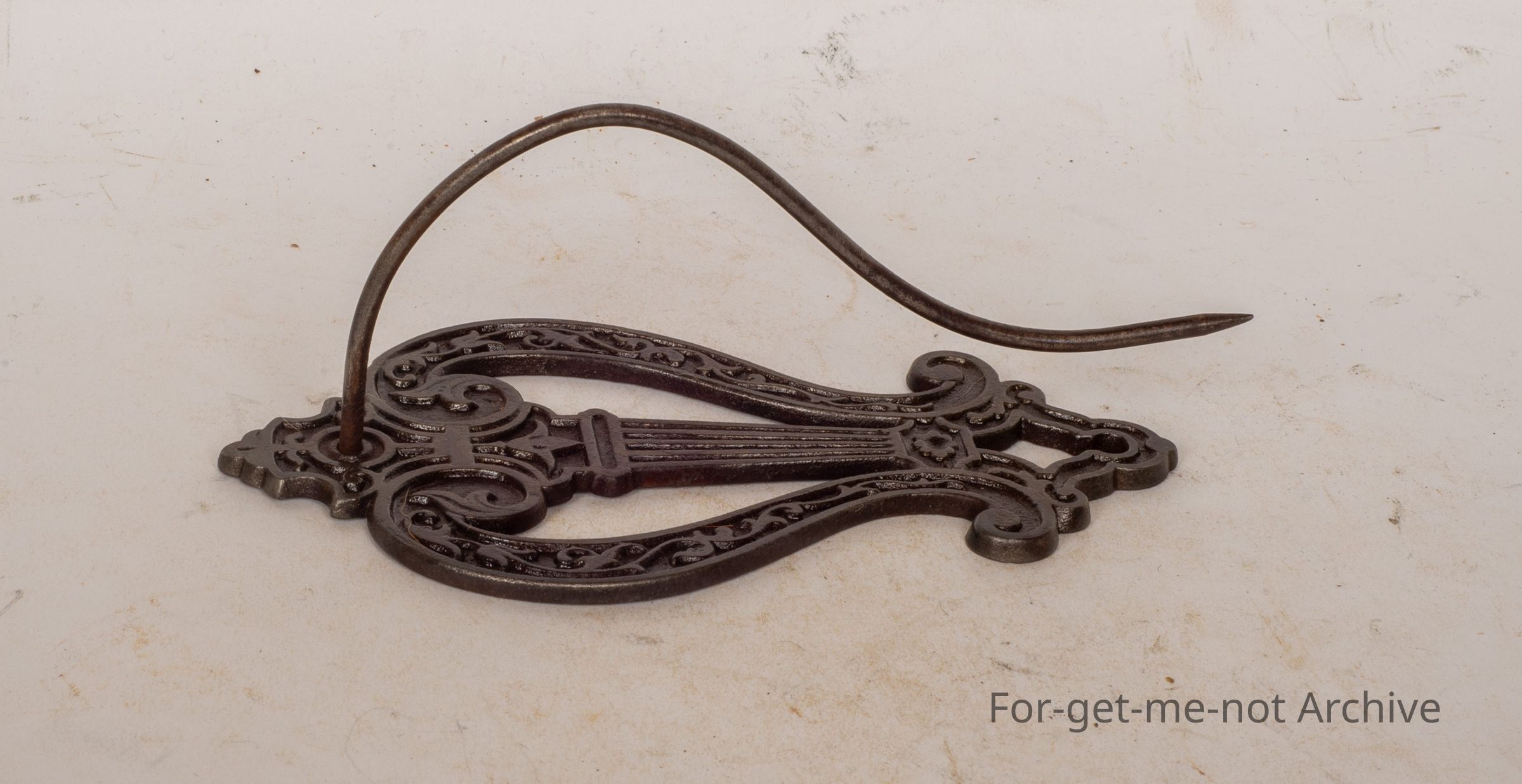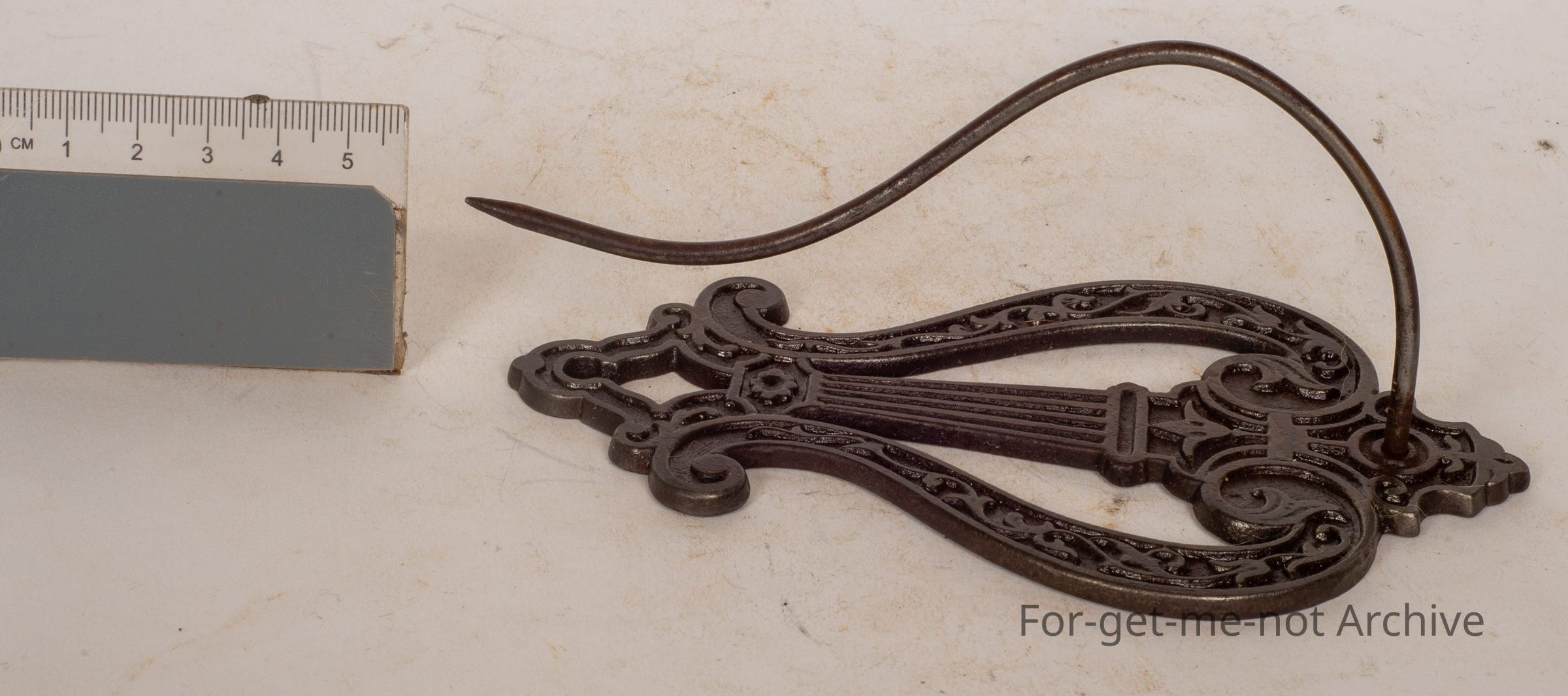 This is a beautiful description, a beautiful little ornate bill or receipt spike that would have been wall mounted. Lovely condition.