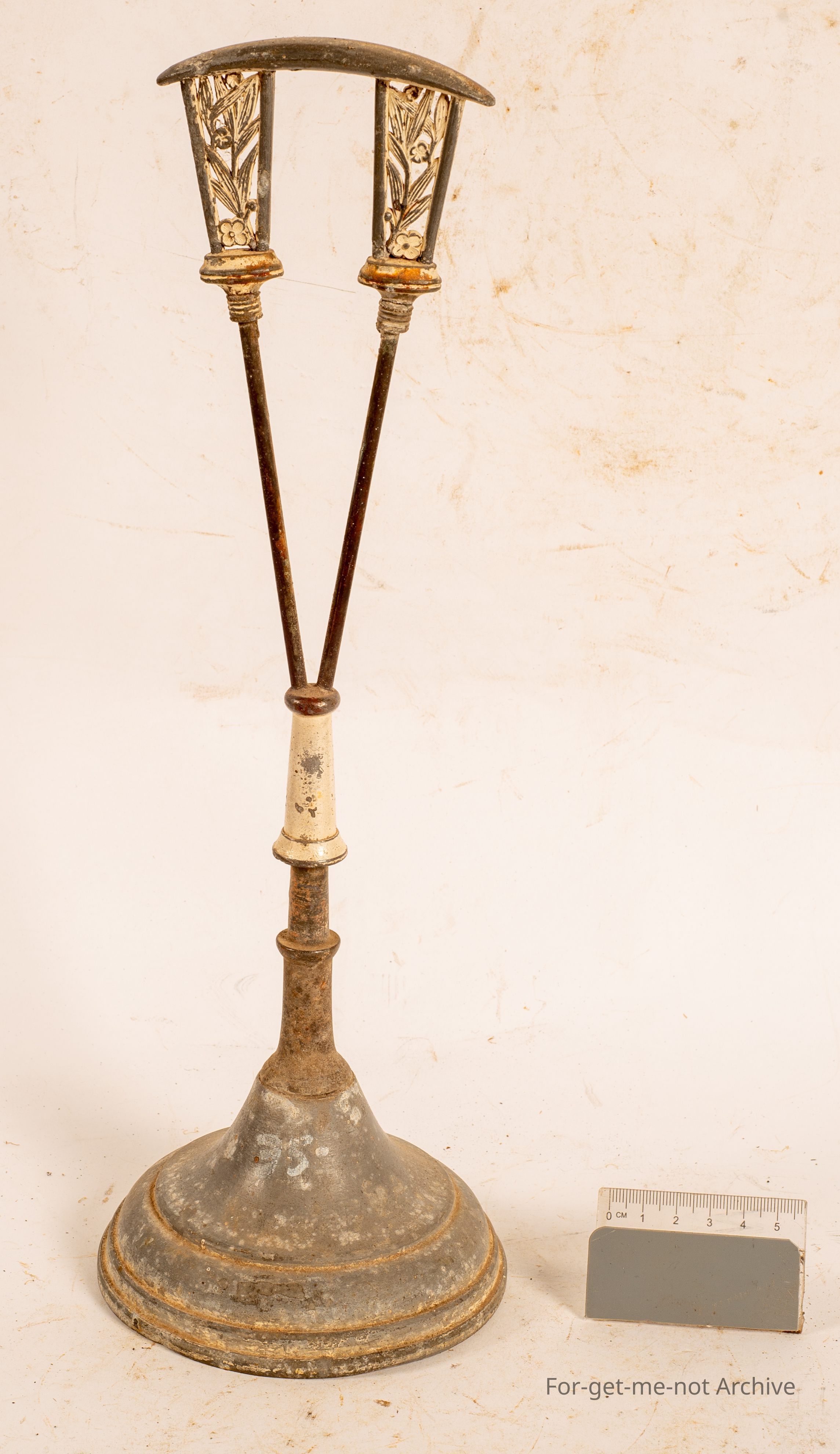 This is quite an ornate shop display, curved top, beautiful decorative little fittings on it. May have been for like a woman's hatch stand or something like that. This would be pretty old.Collection