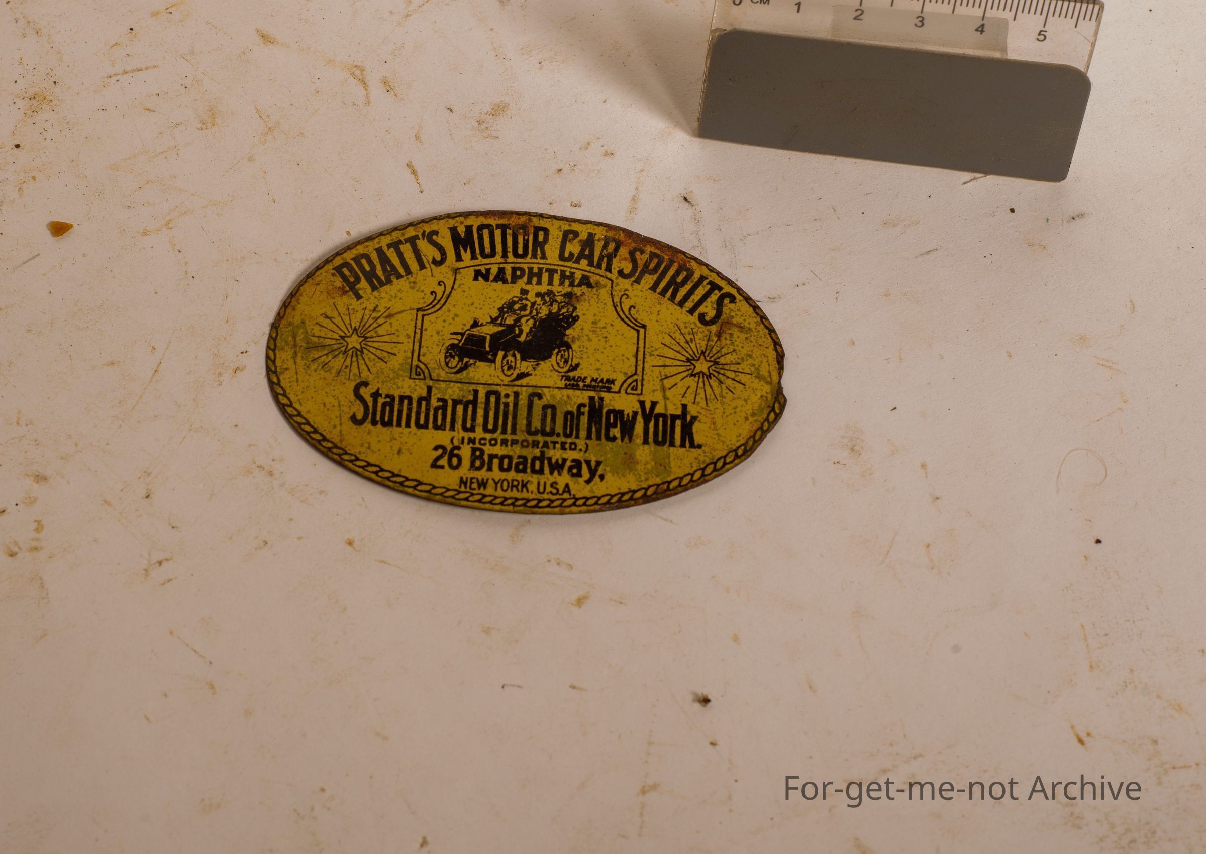 This is an oval advertising plate for Pratt's Motorcar Spirits, Standard Oil Company, New York. This is a very early plate with a vintage car image.