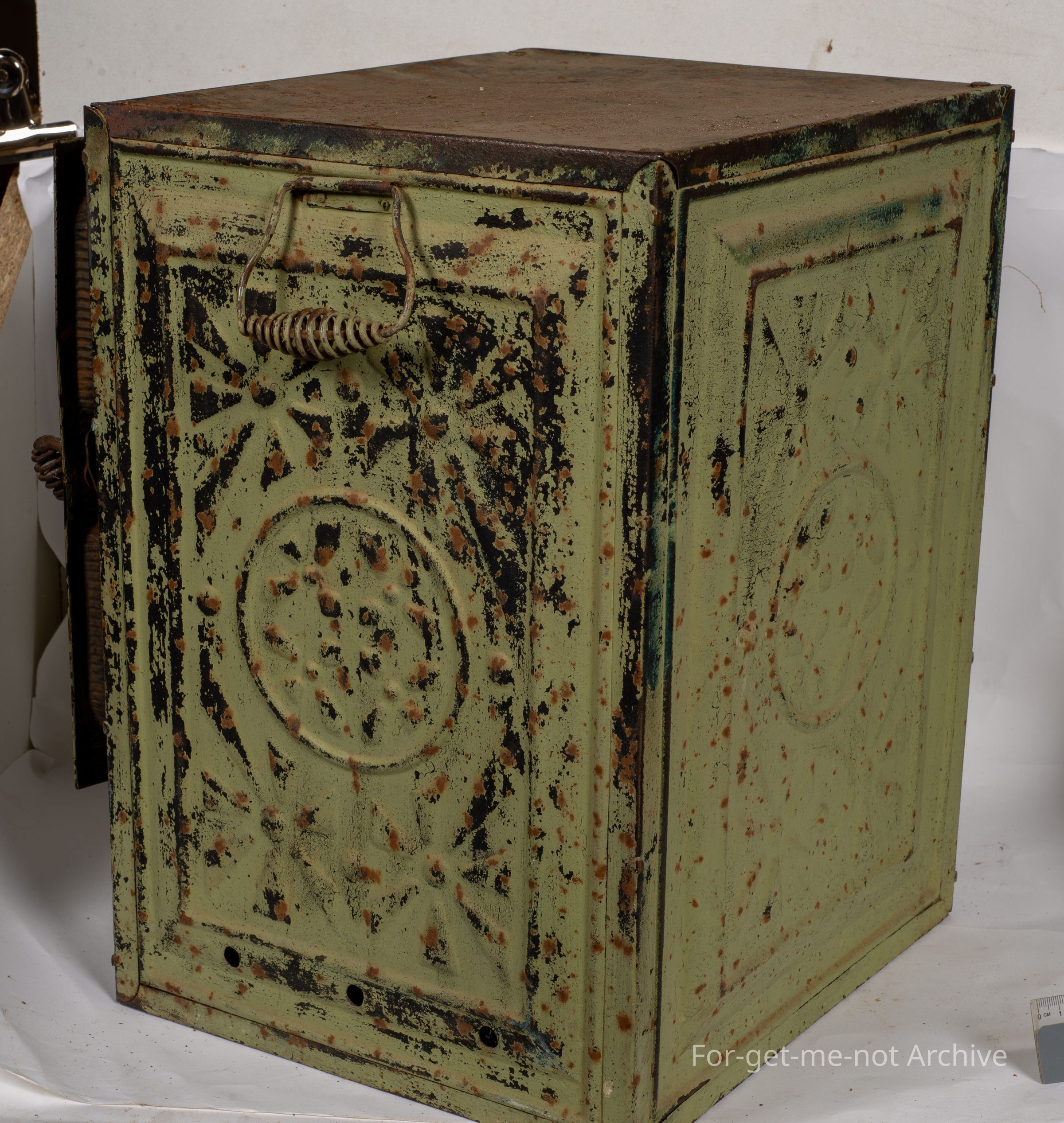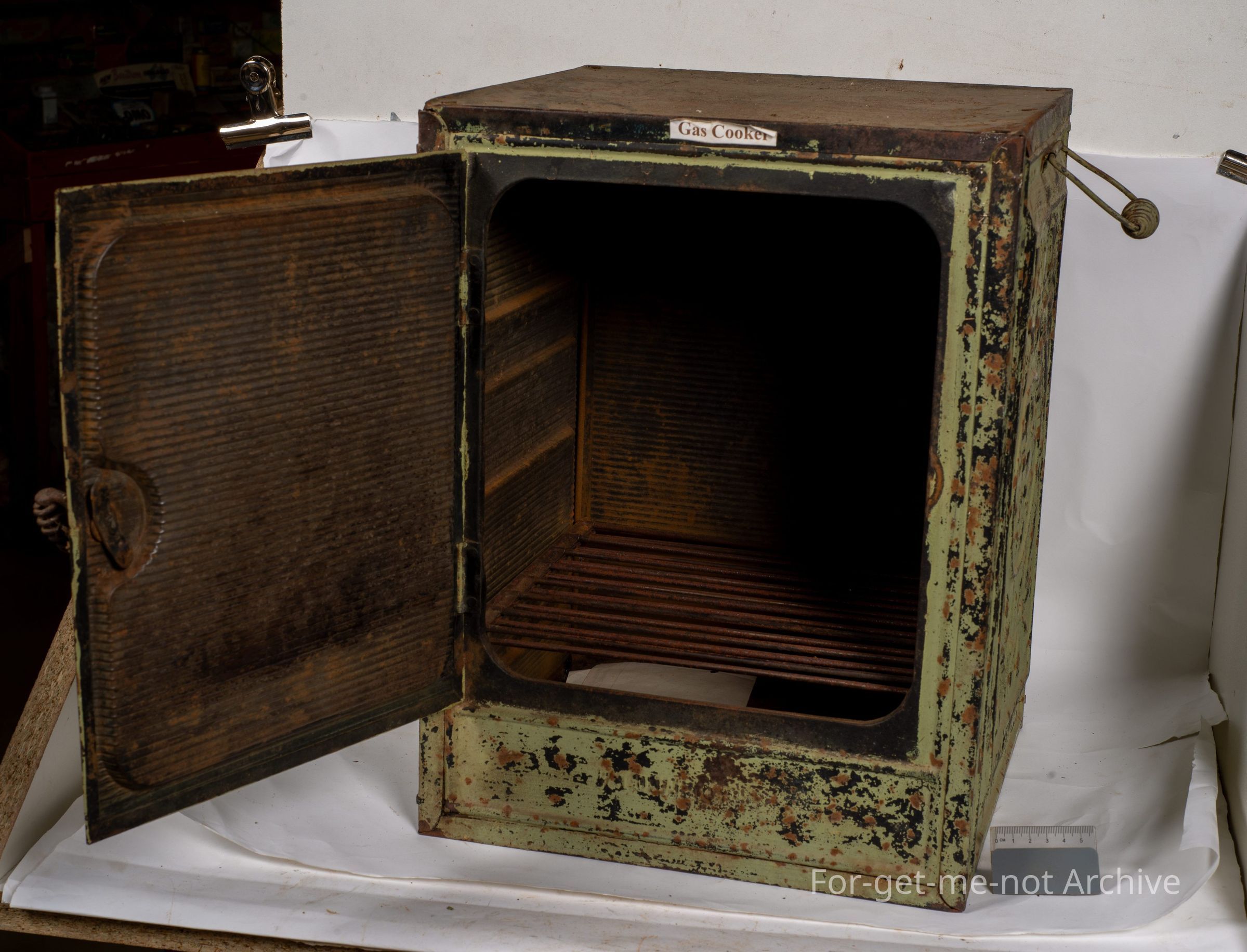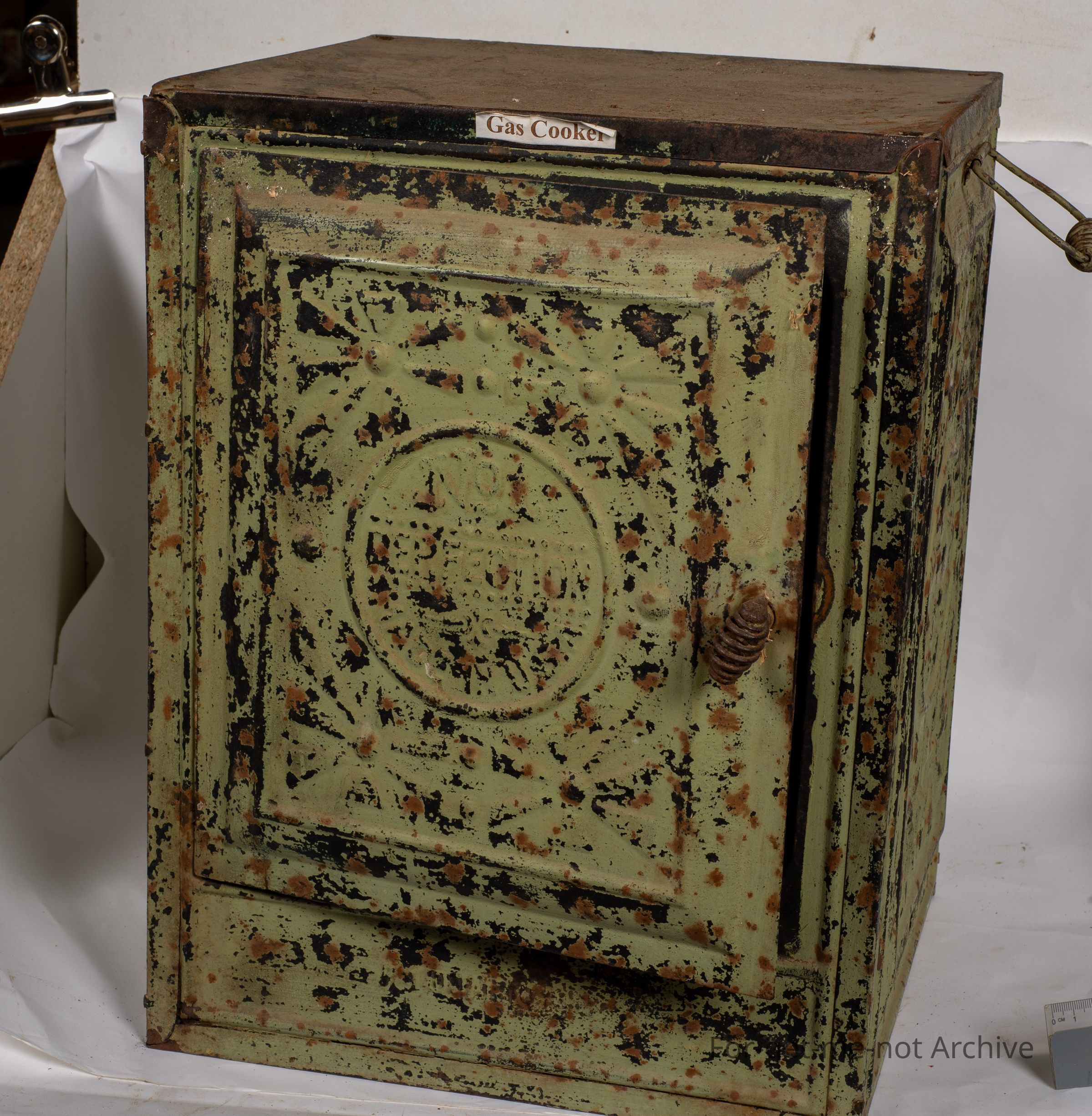 Tin oven called Stamped Perfection. Number 1, made in USA. Number 1, made in USA. This is a tin oven that sat on top of a wood stove or a gas stove. Quite a rare item. So use the heat from the burner to radiates into the oven, with the racks. A nice decorative pressed metal surround, The patent number on this chin oven is 1899.Collection