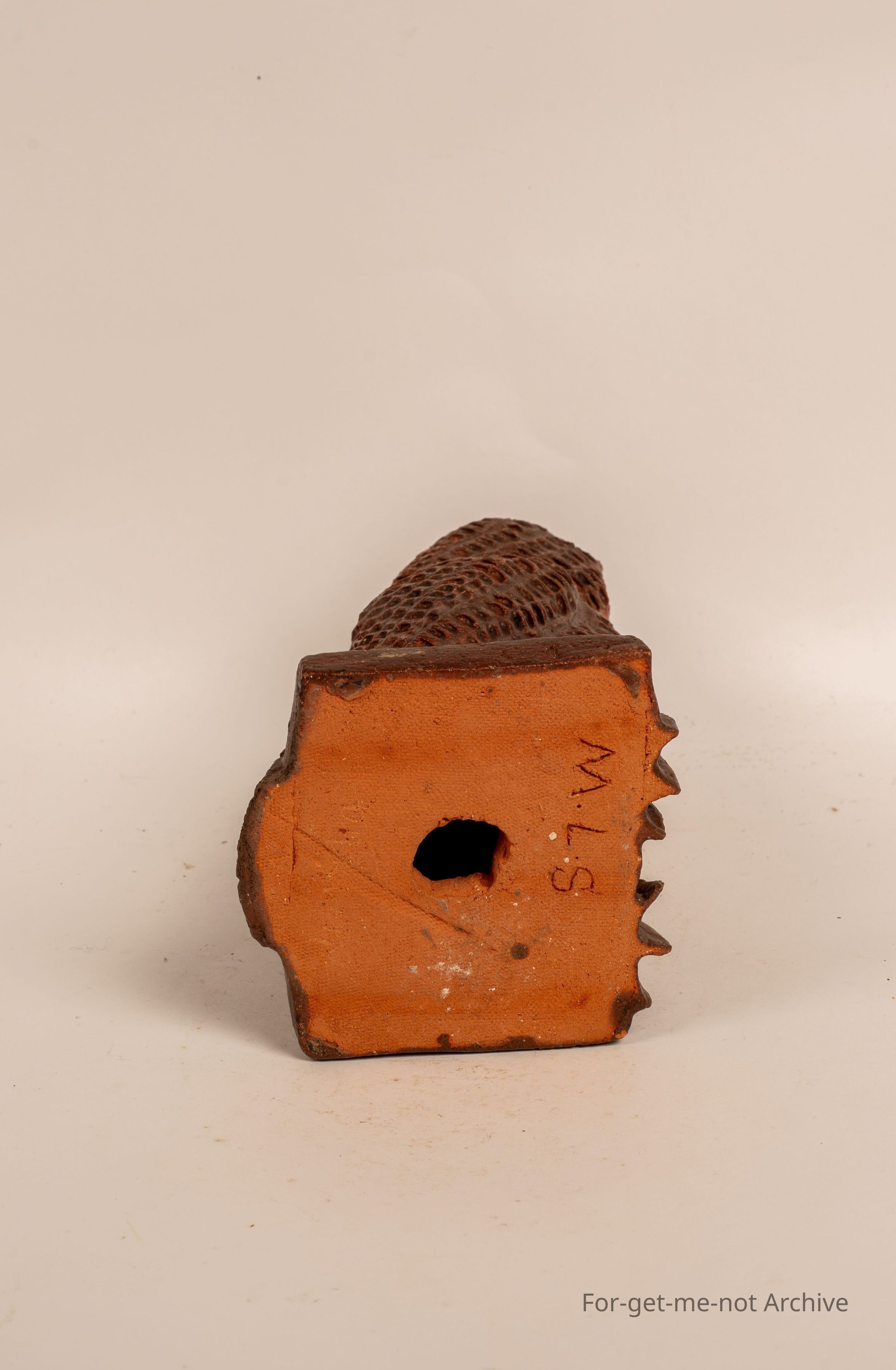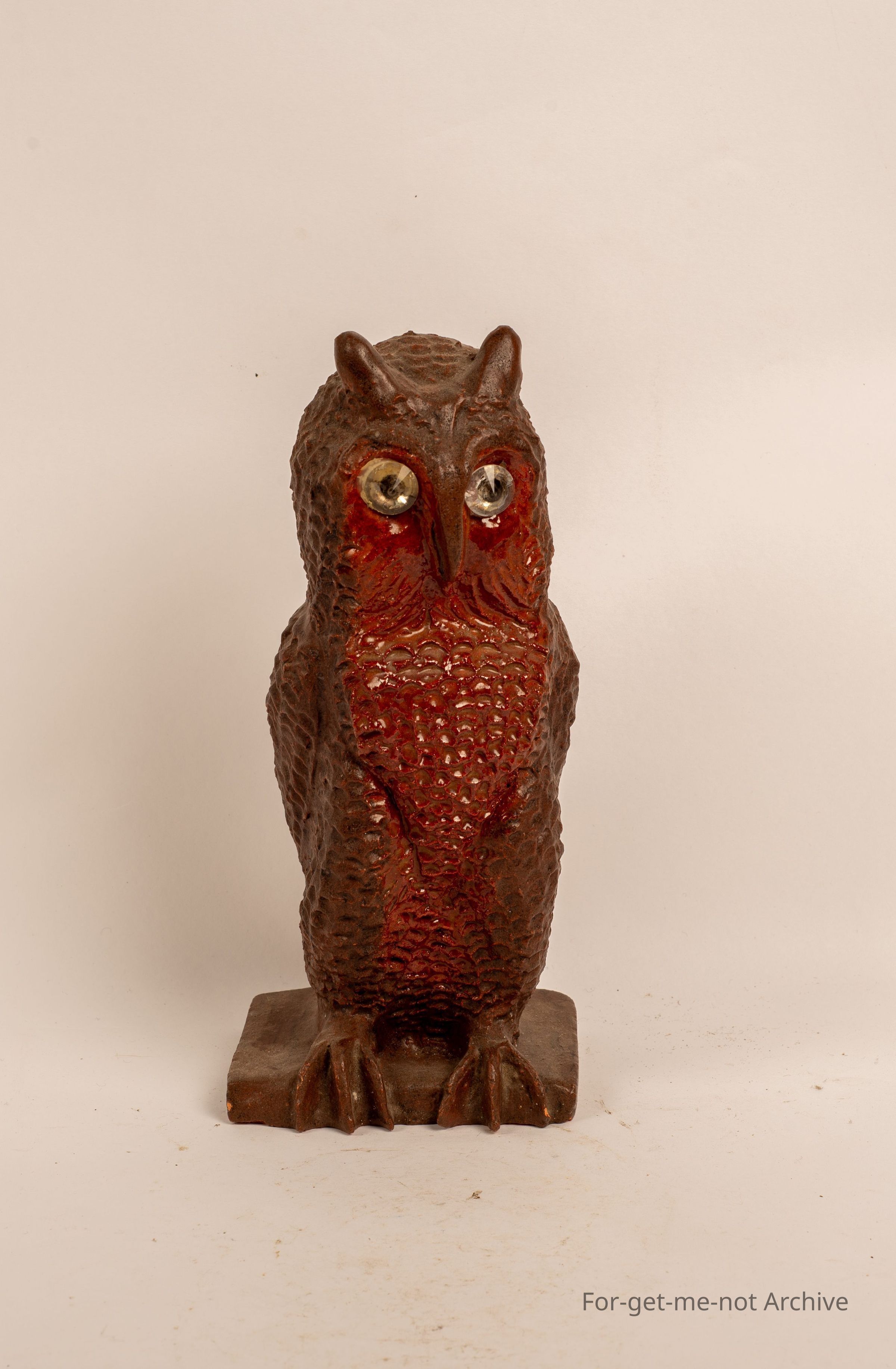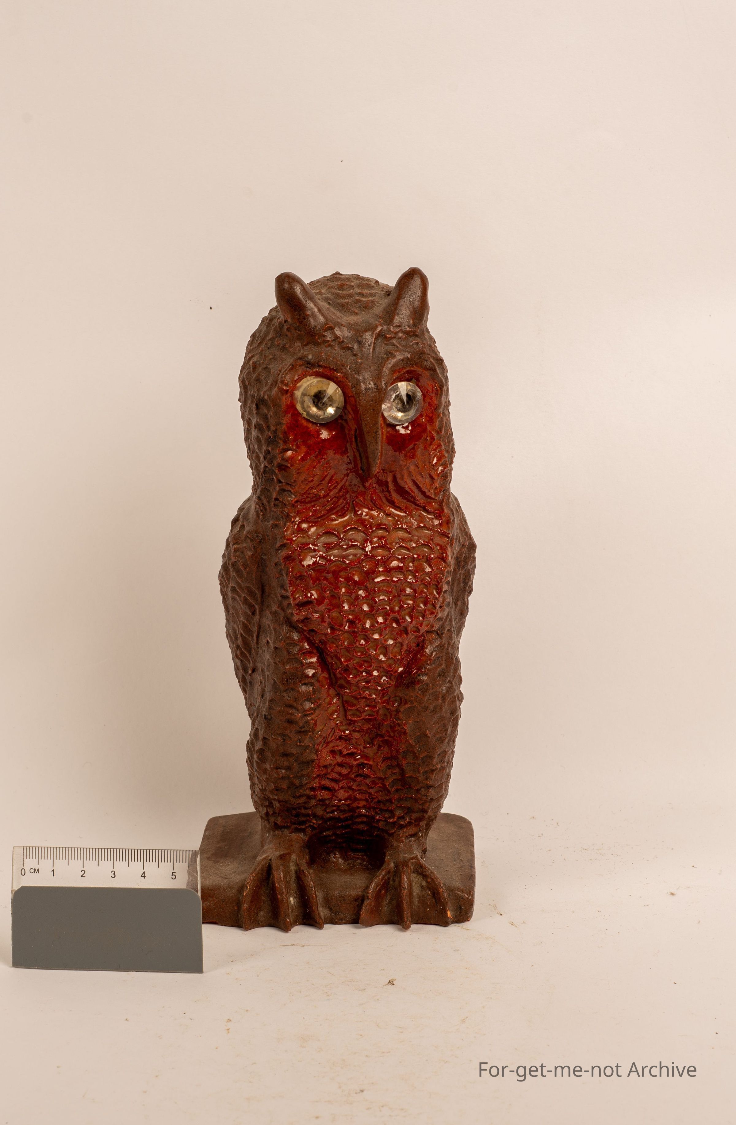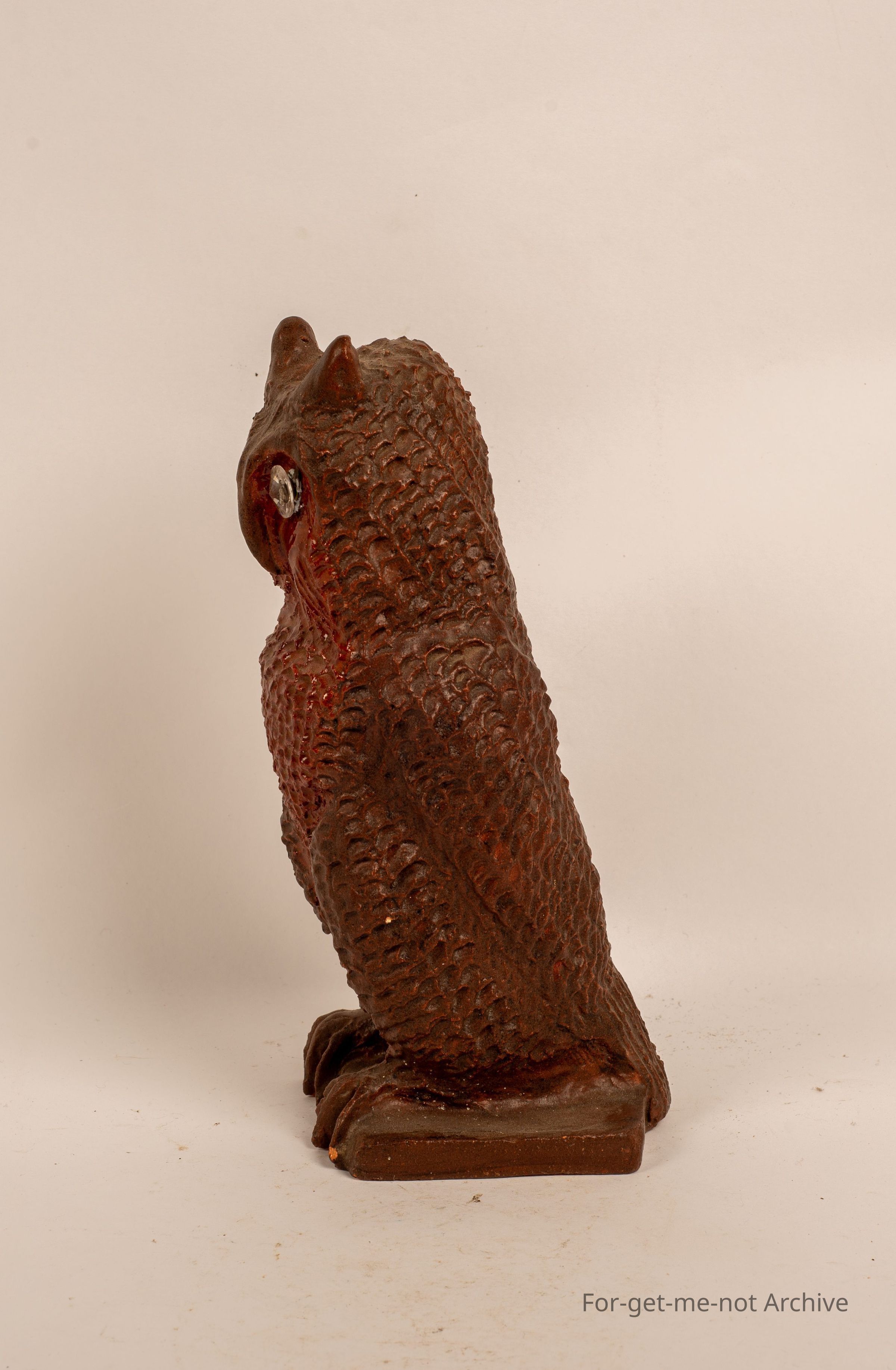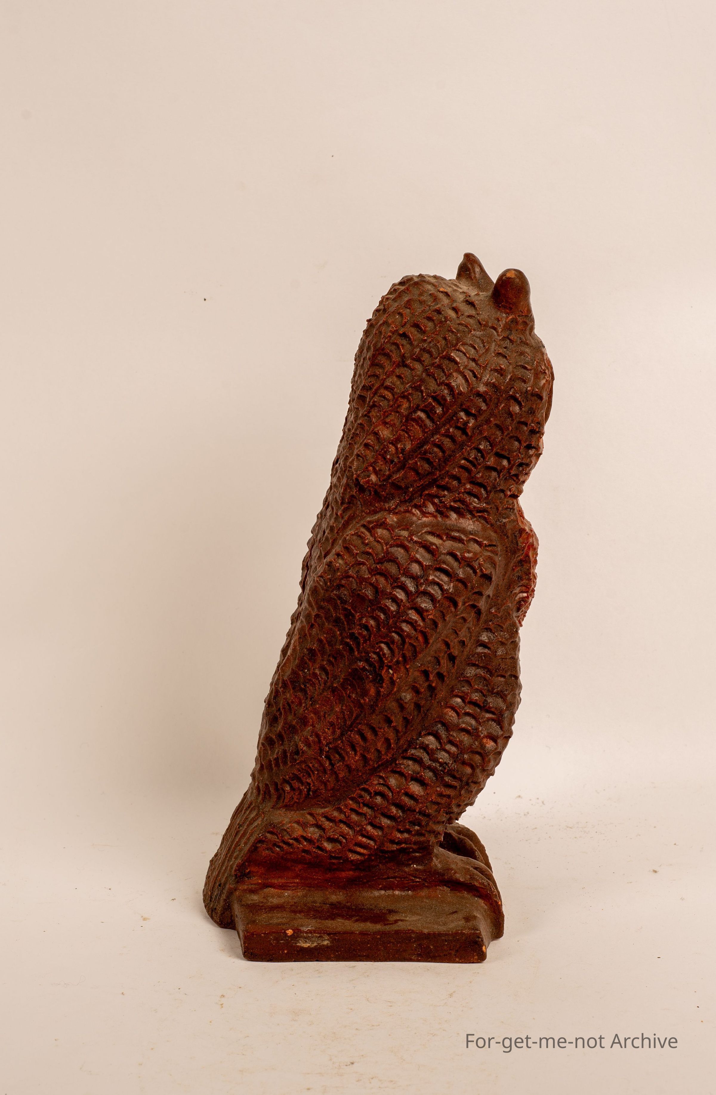 Working man's piece of an owl, feather pattern all over, signed on the base, MLS