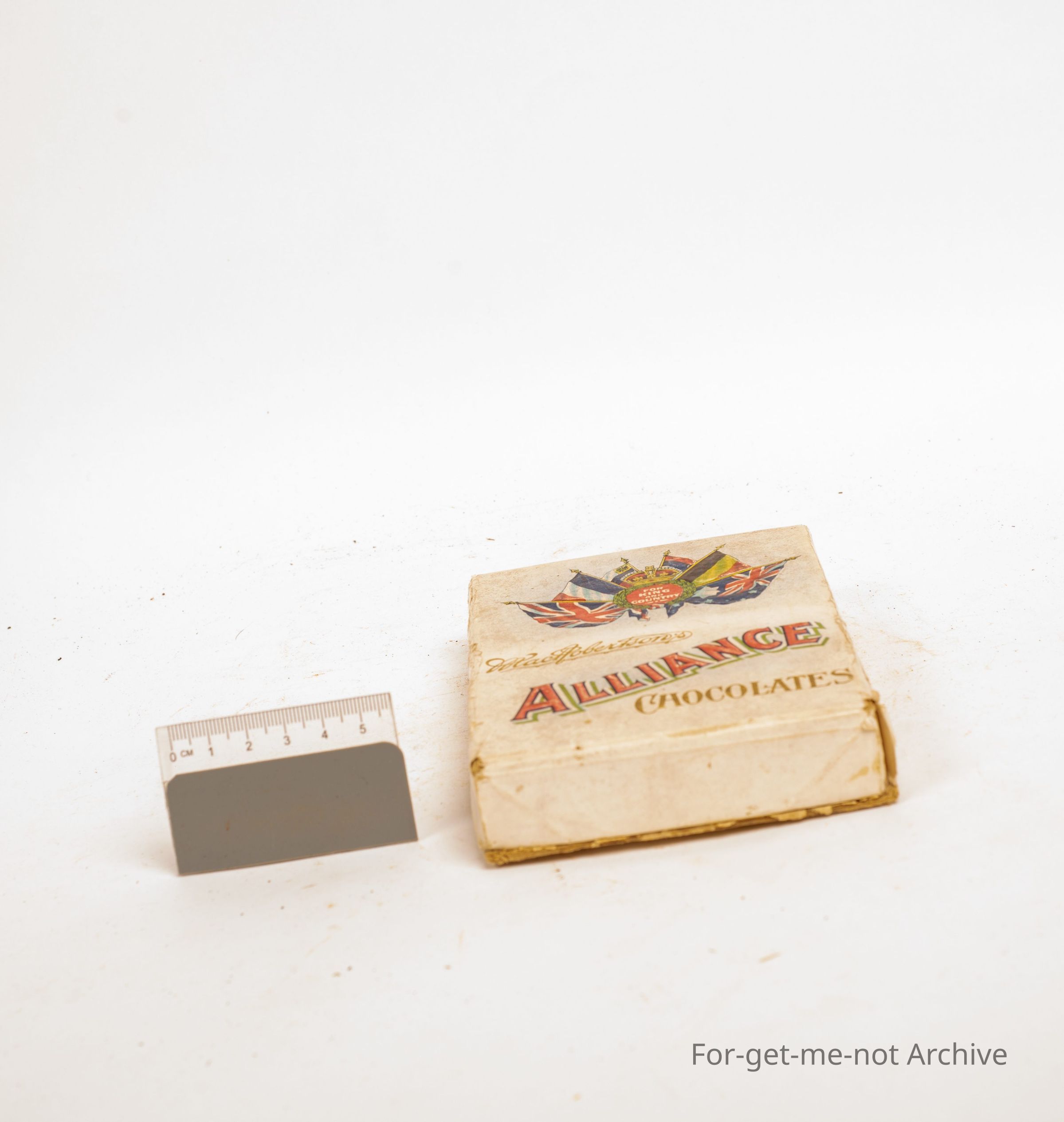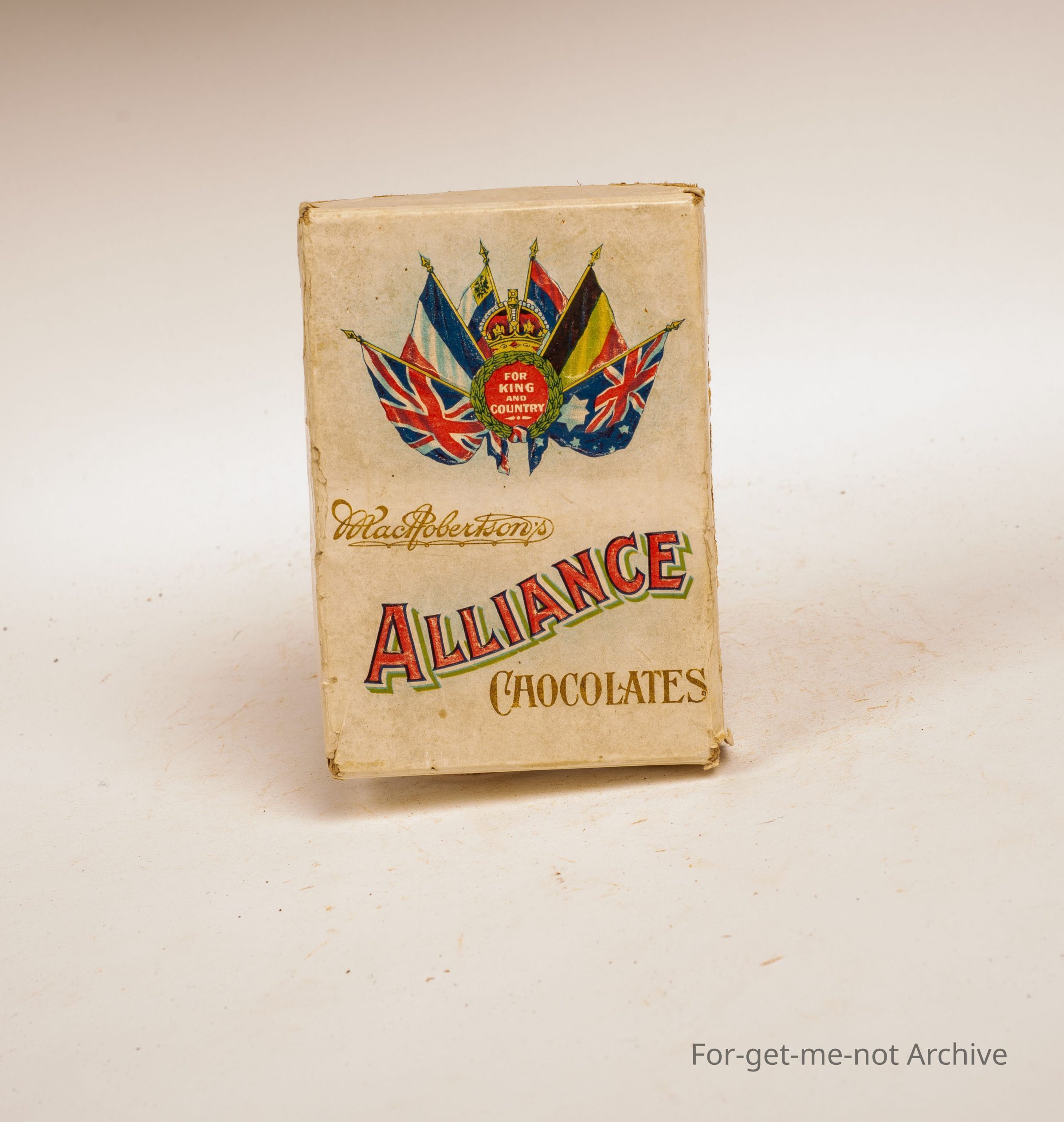 Cardboard box for advertising " Alliance Chocolates" made by Mac Robinson.