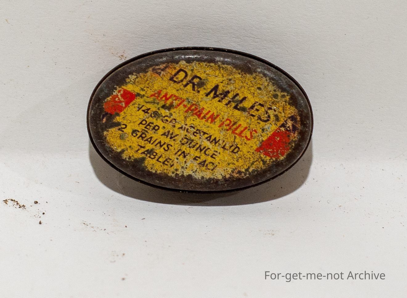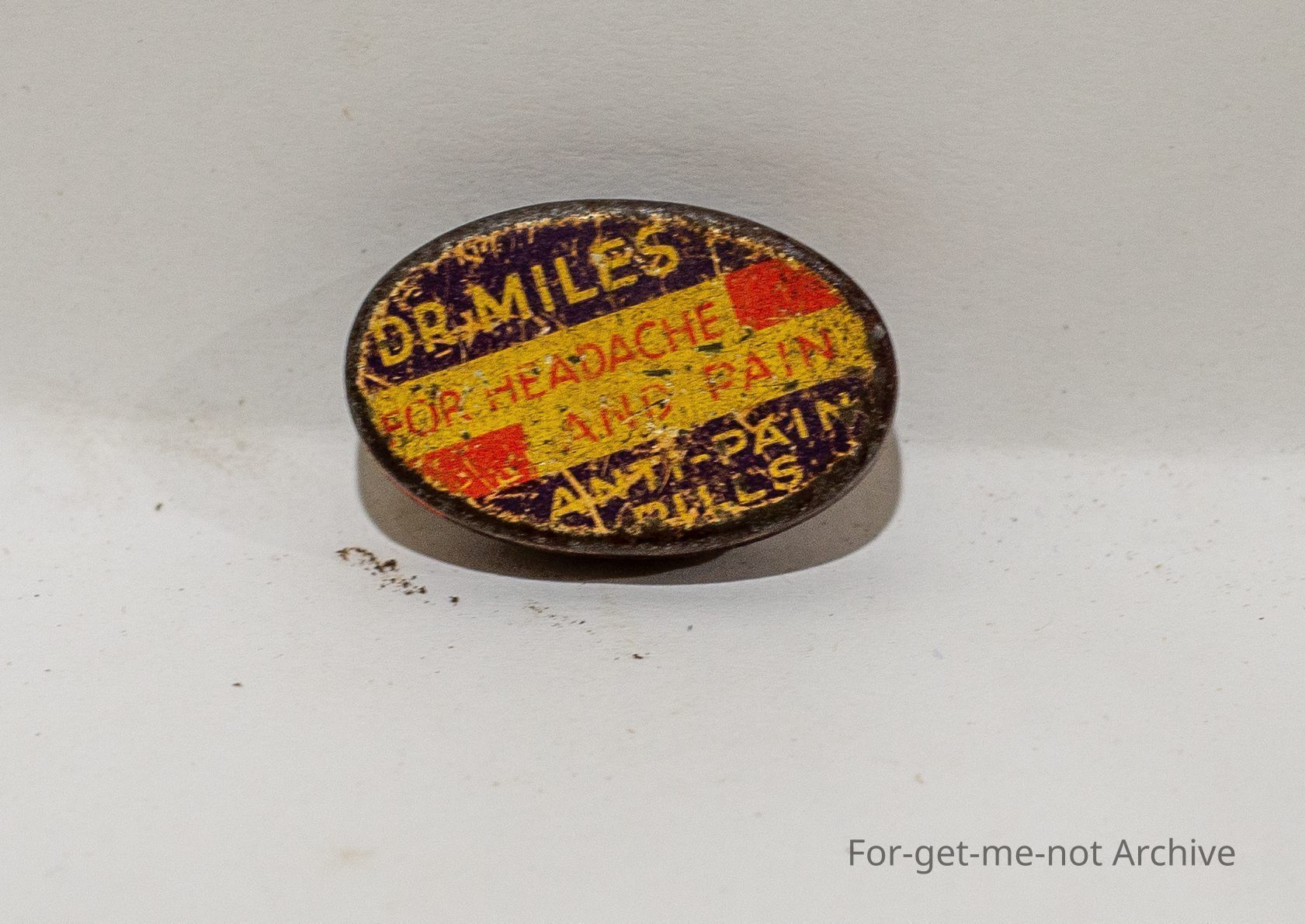 Sample tin, Dr Miles for headache and pain, Anti pain pills, Tin size 30mm