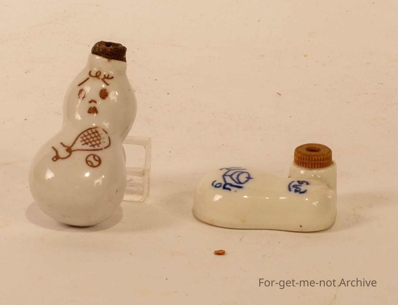 One with Brown decorations on white, the other blue decorations on white ceramic. For pouring on food