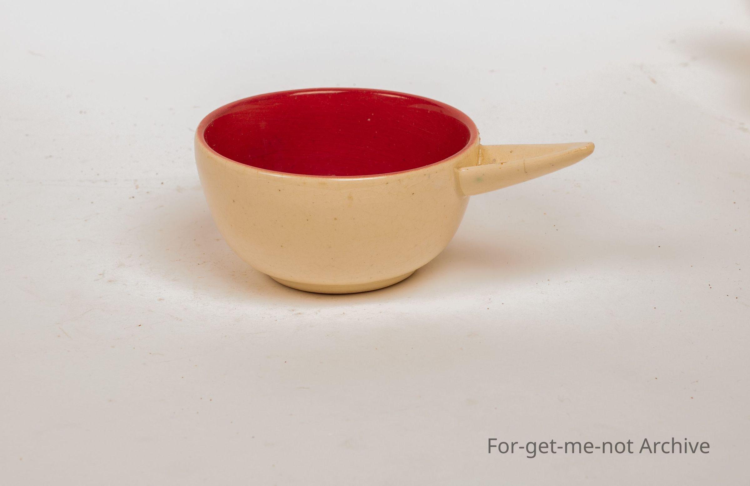 Signed Seeton Grant, Pannikin. Red interior, white glaze on the outside, and good nick.